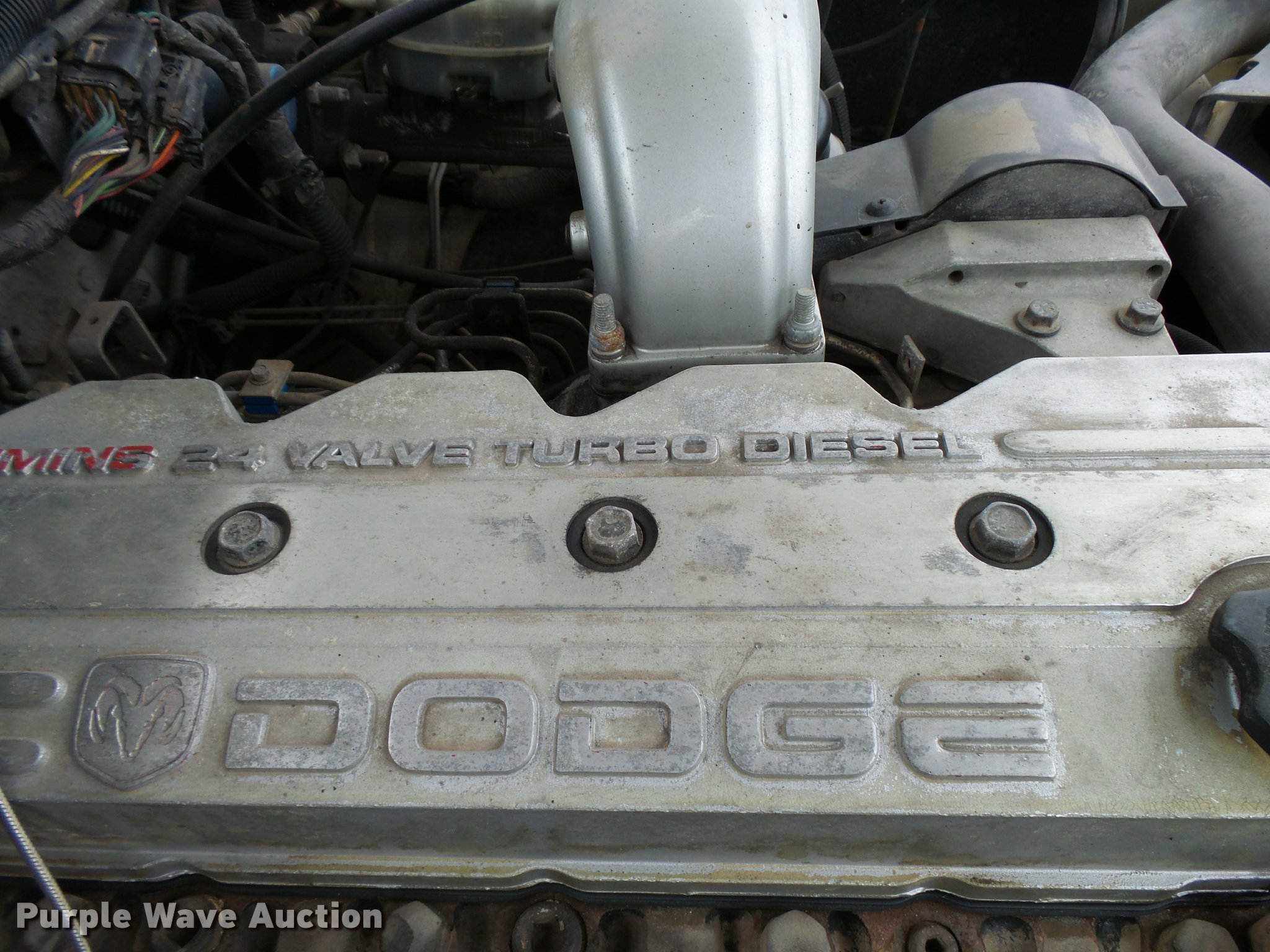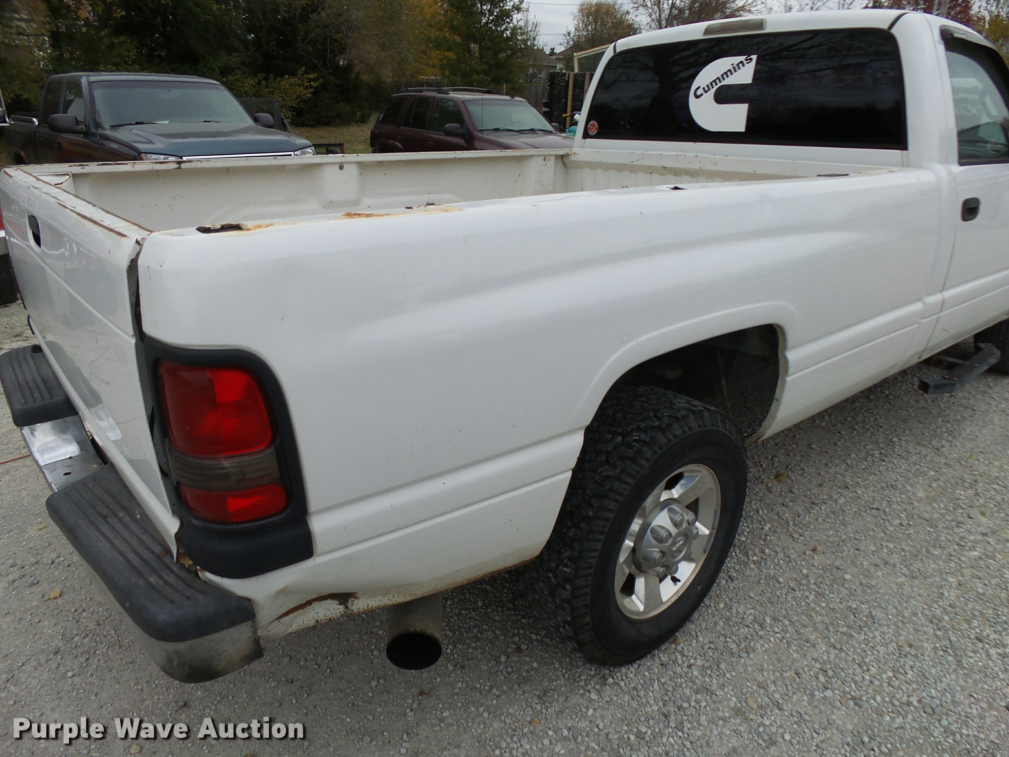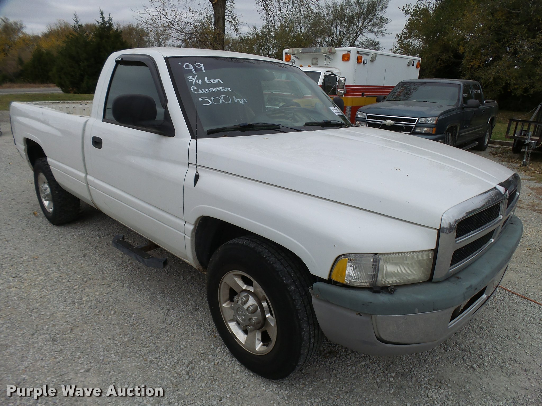 Purple Wave is selling a used 3/4 or 1 Ton Pickup or Van in Kansas. This item is a 1999 Dodge Ram 2500 pickup truck with the following: 218,752 miles on odometer, 5.9L L6 OHV 24V turbo diesel engine, Five speed manual transmission, AC and heat, Tilt, Cruise, Manual windows and locks, Cloth interior, Block heater, Receiver hitch, 245/75R17 tires, 265/70R17 tires, Dash cracked, Windshield cracked