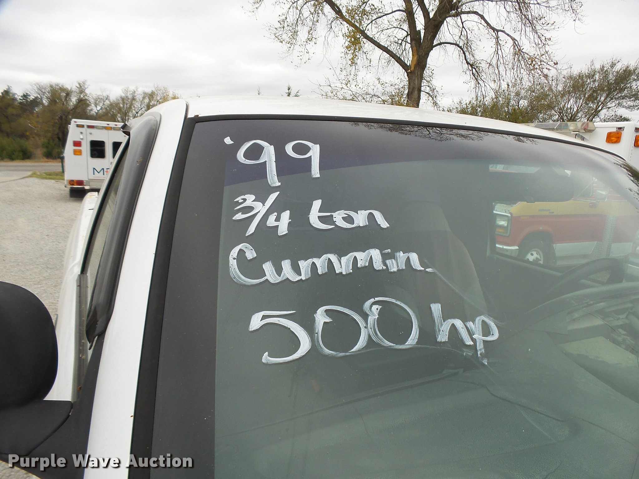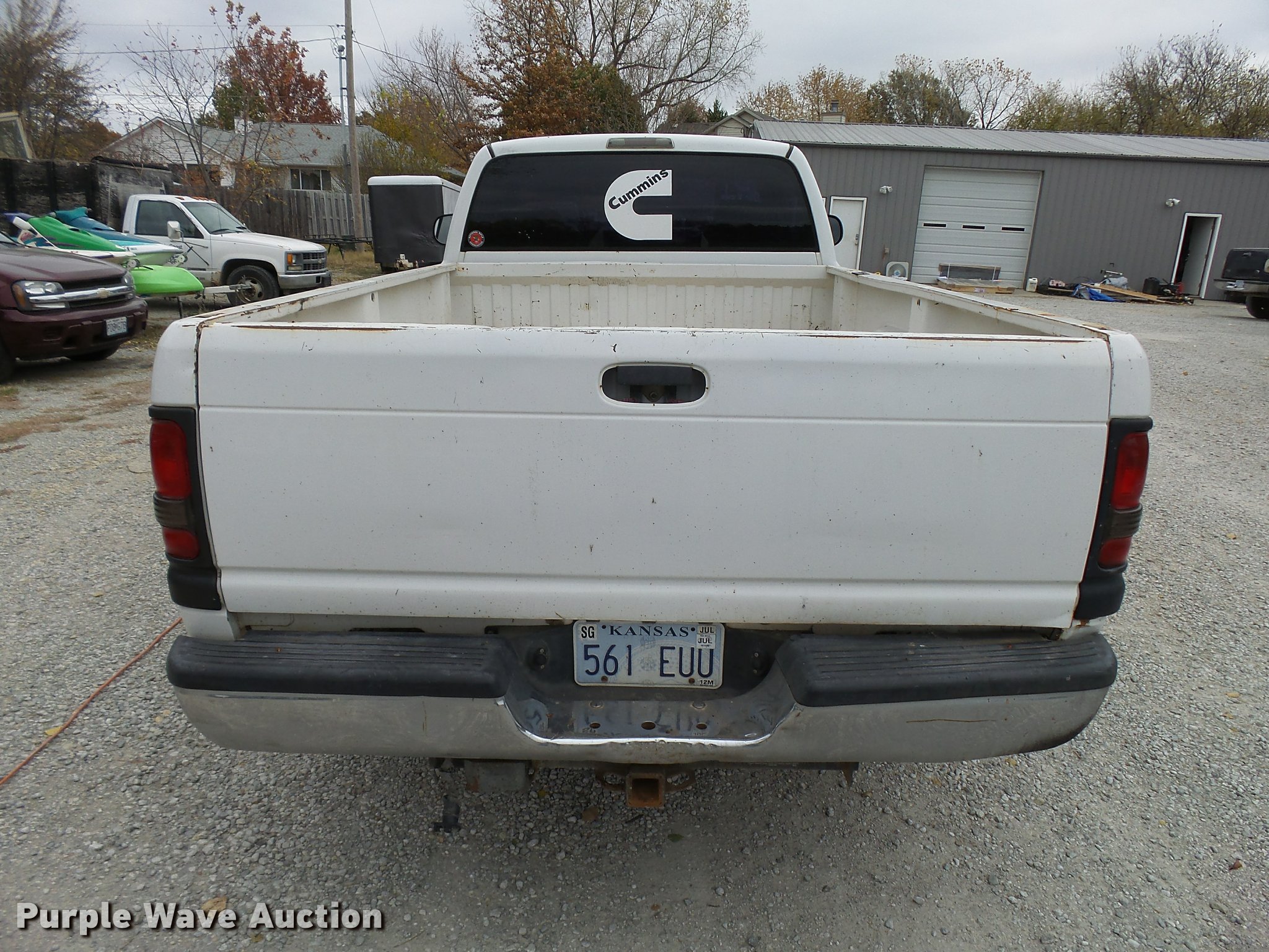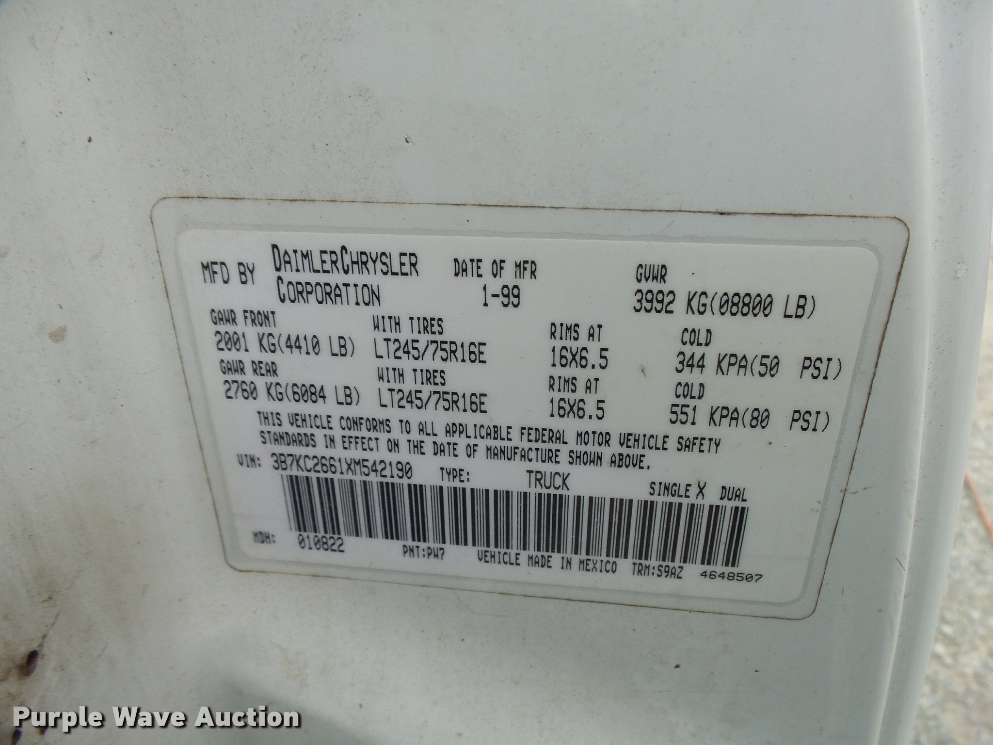Purple Wave is selling a used 3/4 or 1 Ton Pickup or Van in Kansas. This item is a 1999 Dodge Ram 2500 pickup truck with the following: 218,752 miles on odometer, 5.9L L6 OHV 24V turbo diesel engine, Five speed manual transmission, AC and heat, Tilt, Cruise, Manual windows and locks, Cloth interior, Block heater, Receiver hitch, 245/75R17 tires, 265/70R17 tires, Dash cracked, Windshield cracked