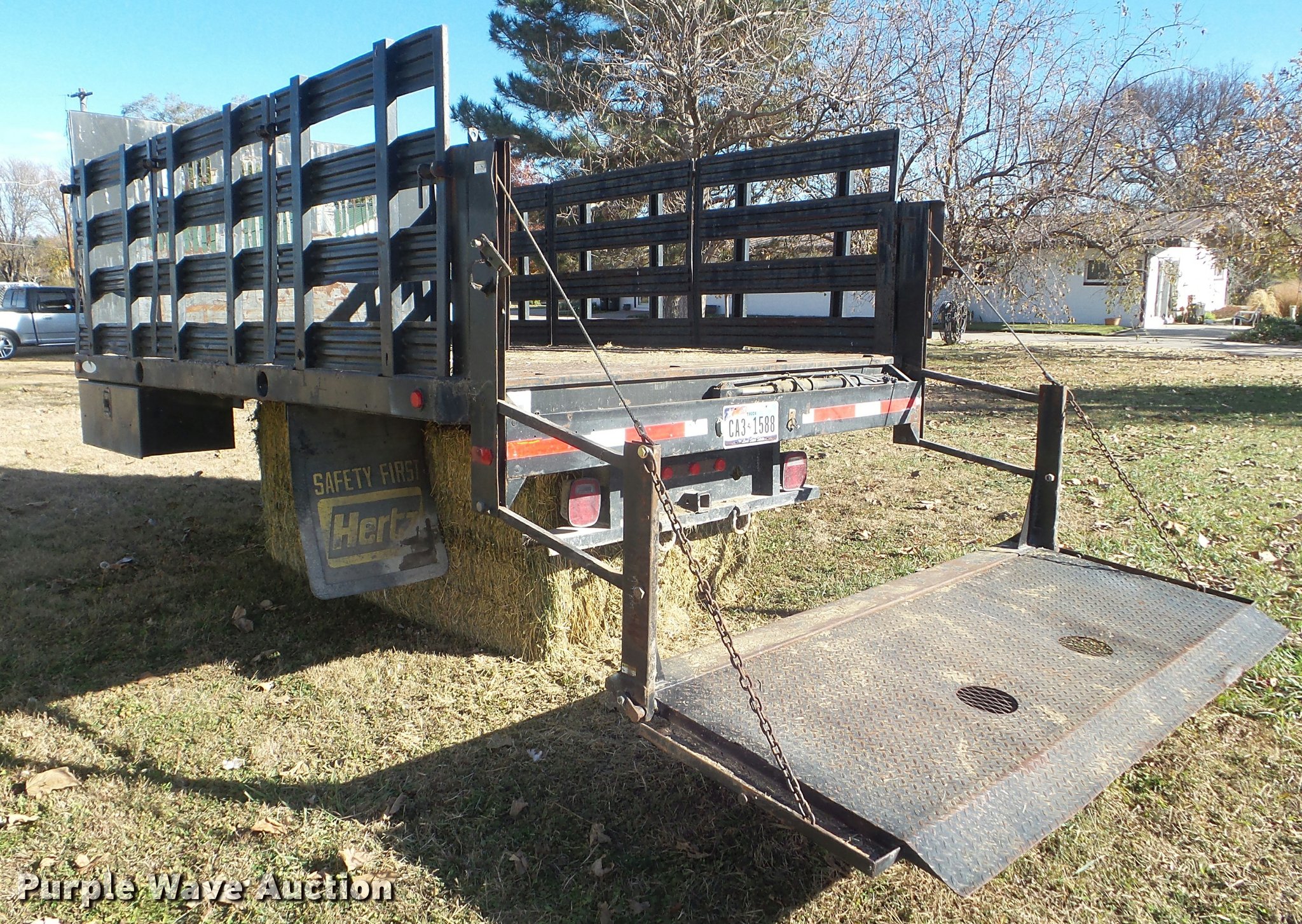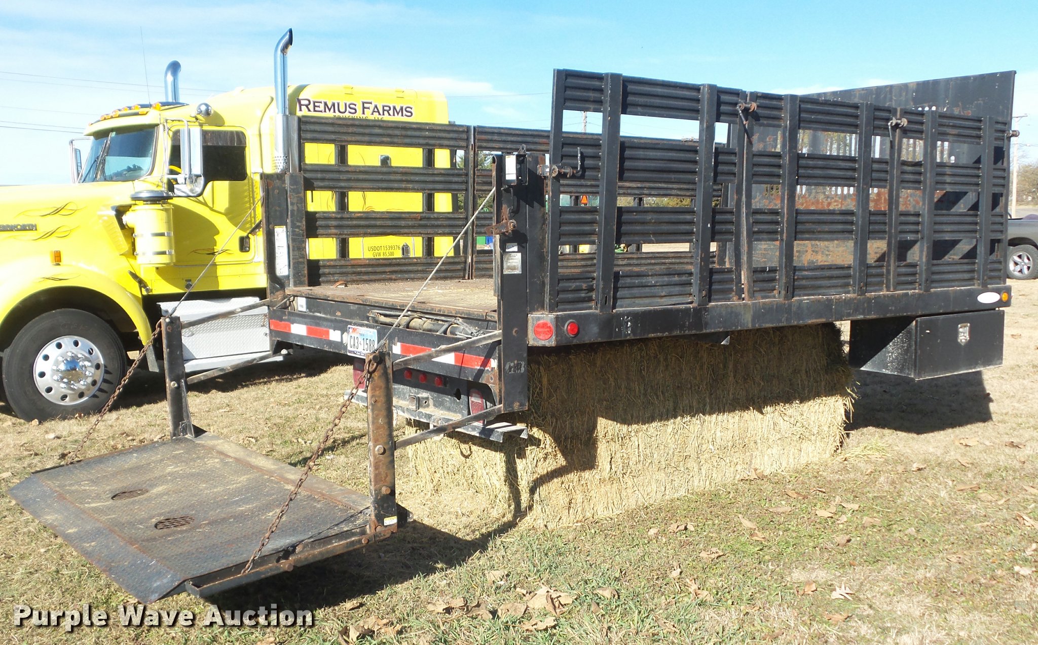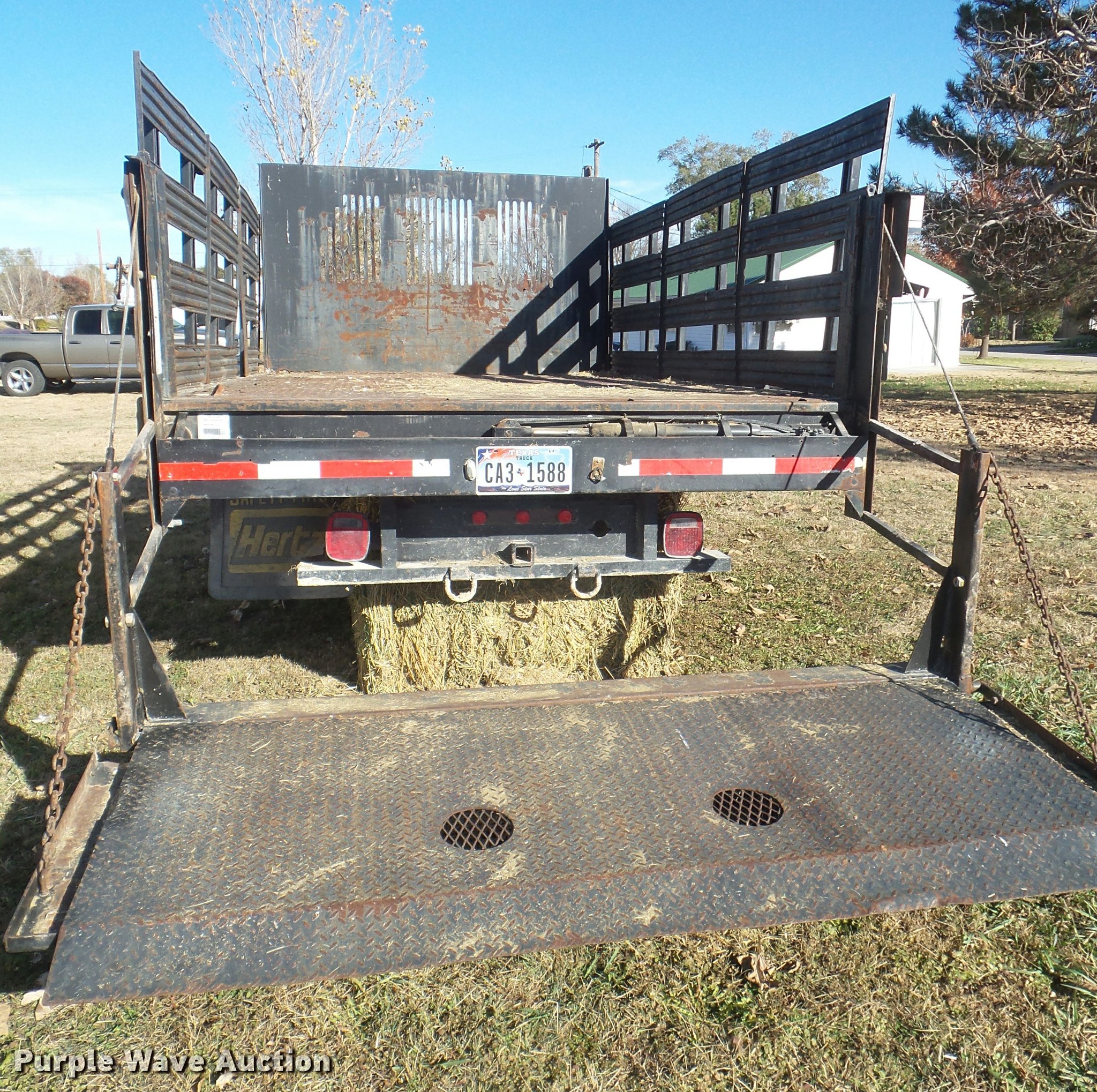 Purple Wave is selling a used Truck Part and Attach. in Kansas. This item is a Ledwell platform bed with the following: 12'L x 8'W, 40" side height, Removable, Stake side pockets, Toolbox, Tommy Lift end gate lift, Electric over hydraulic operation, Receiver hitch, Serial 110503950-4