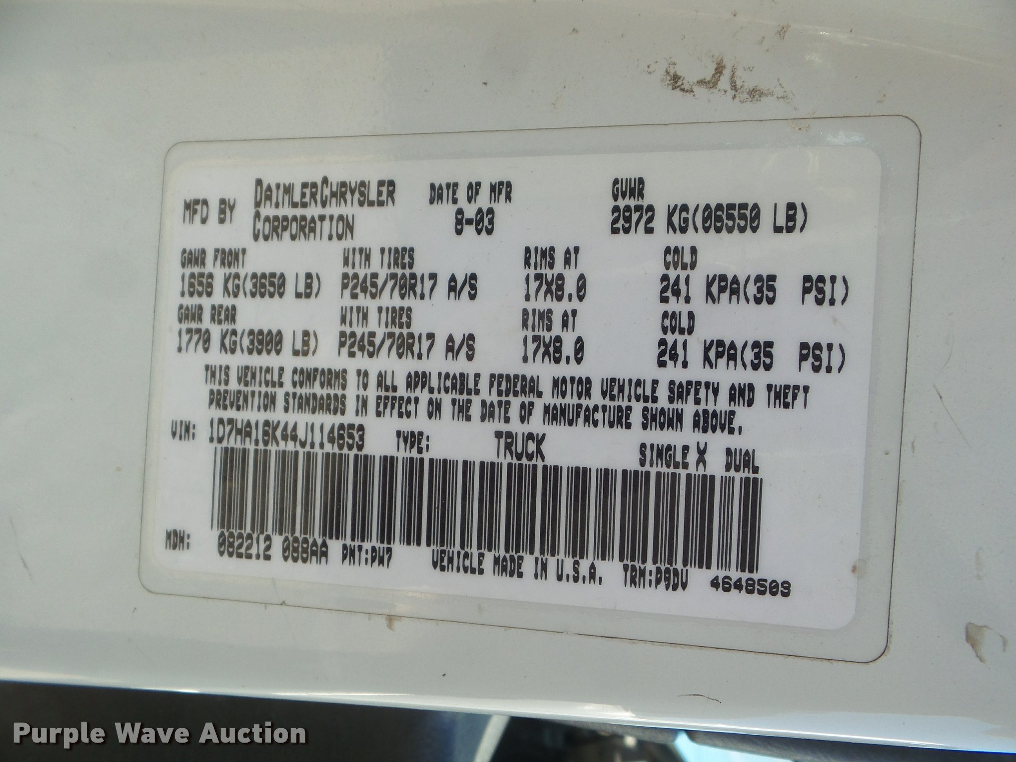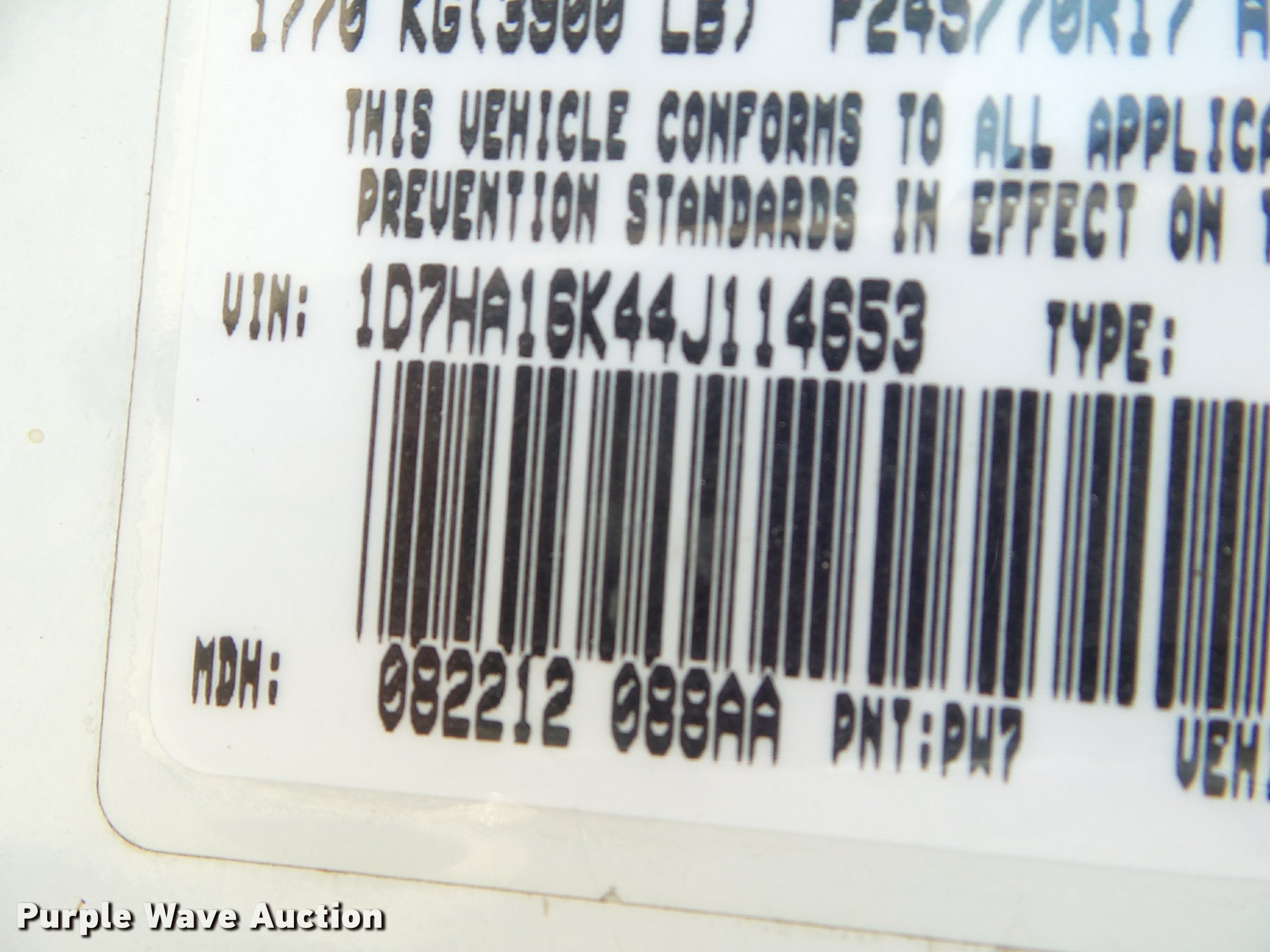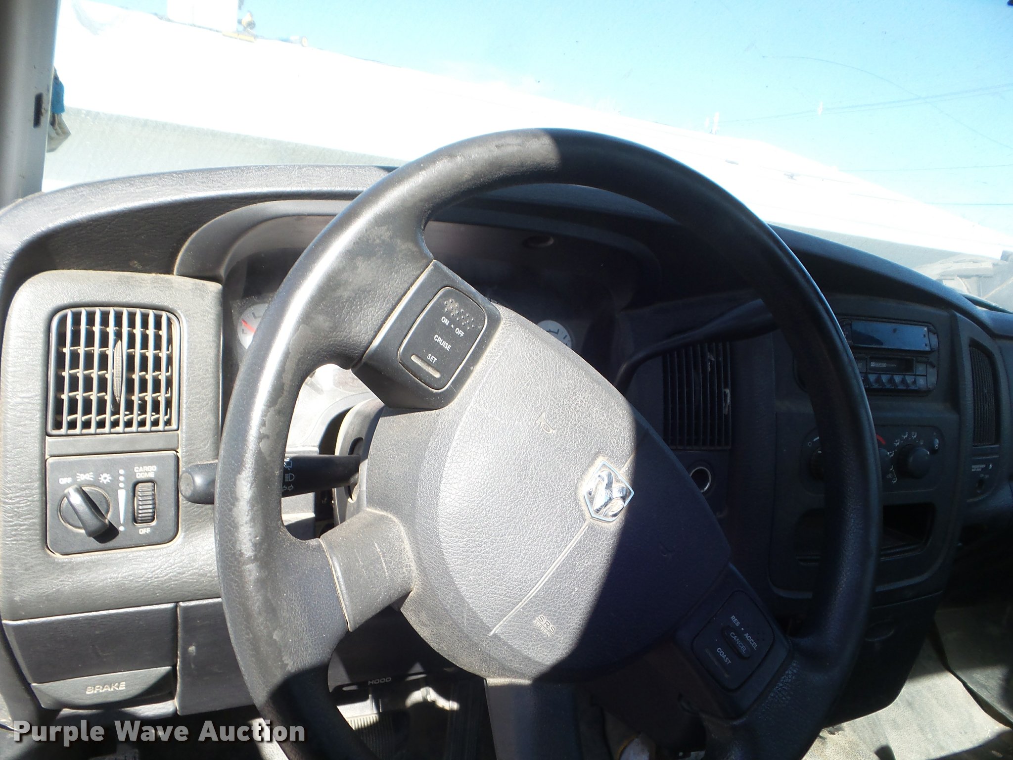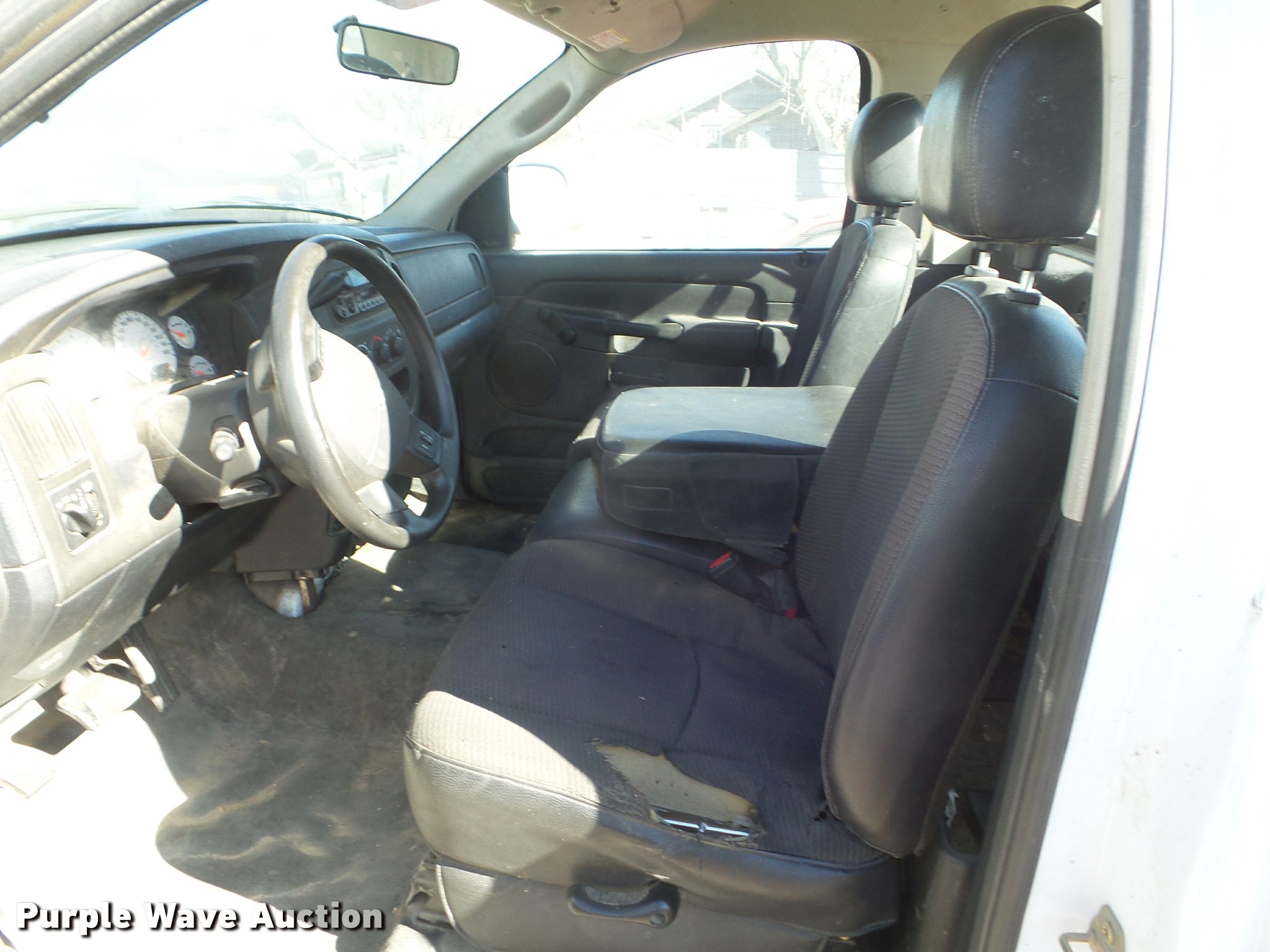 Purple Wave is selling a used 1/2 Ton Pickup or Van in Kansas. This item is a 2004 Dodge Ram 1500 pickup truck with the following: 160,217 miles on odometer, 3.7L V6 SOHC 12V gas engine, Automatic transmission, AC and heat, Tilt, Cruise, AM/FM/cassette, Manual windows and locks, Receiver hitch, 265/70R17 tires, Cracked windshield, Unknown operating condition