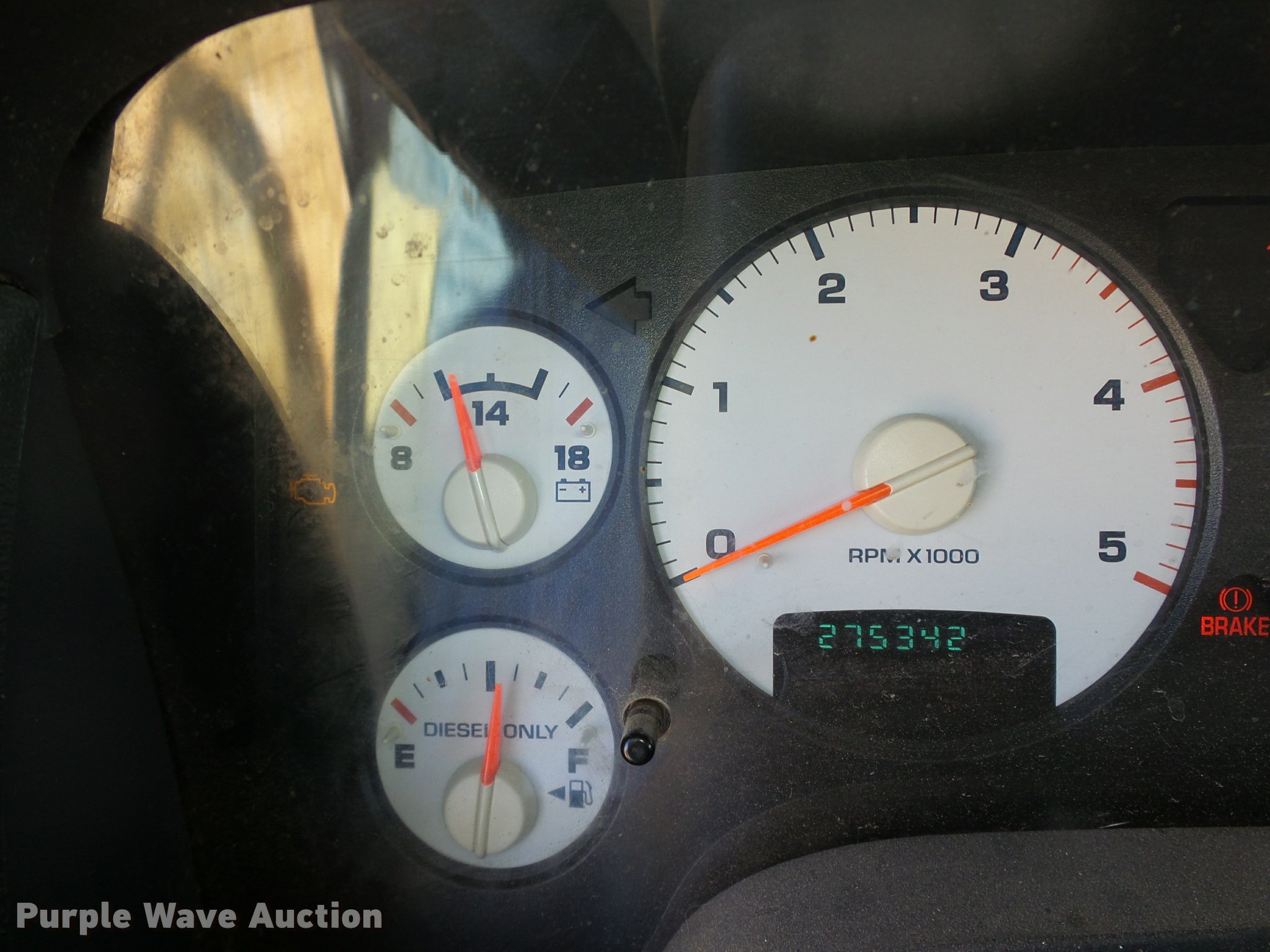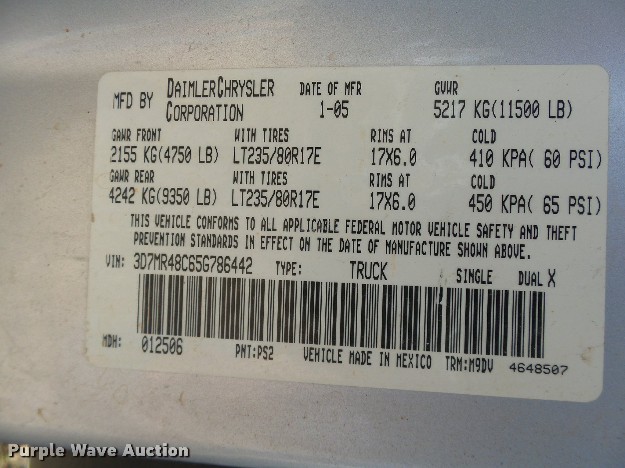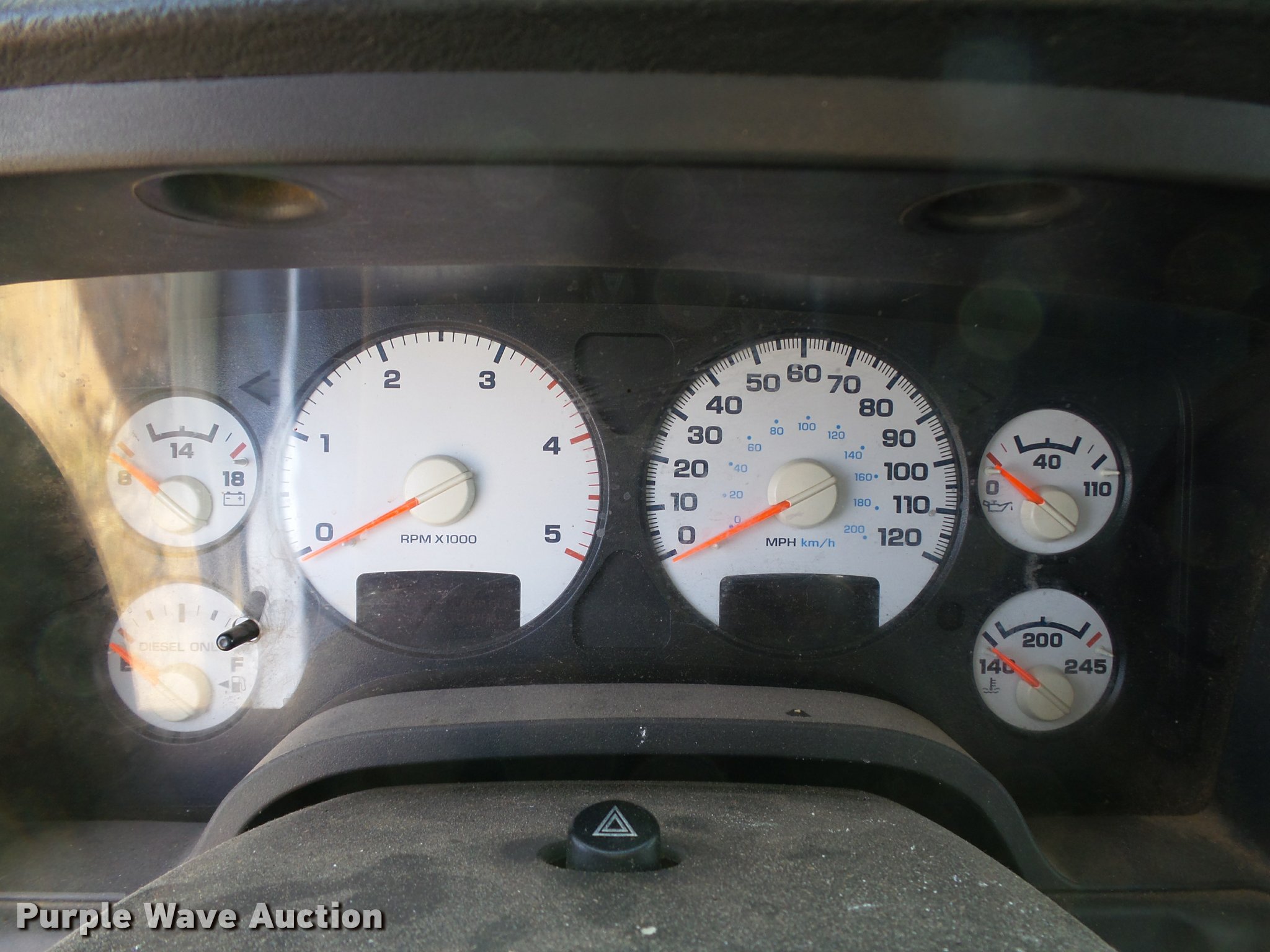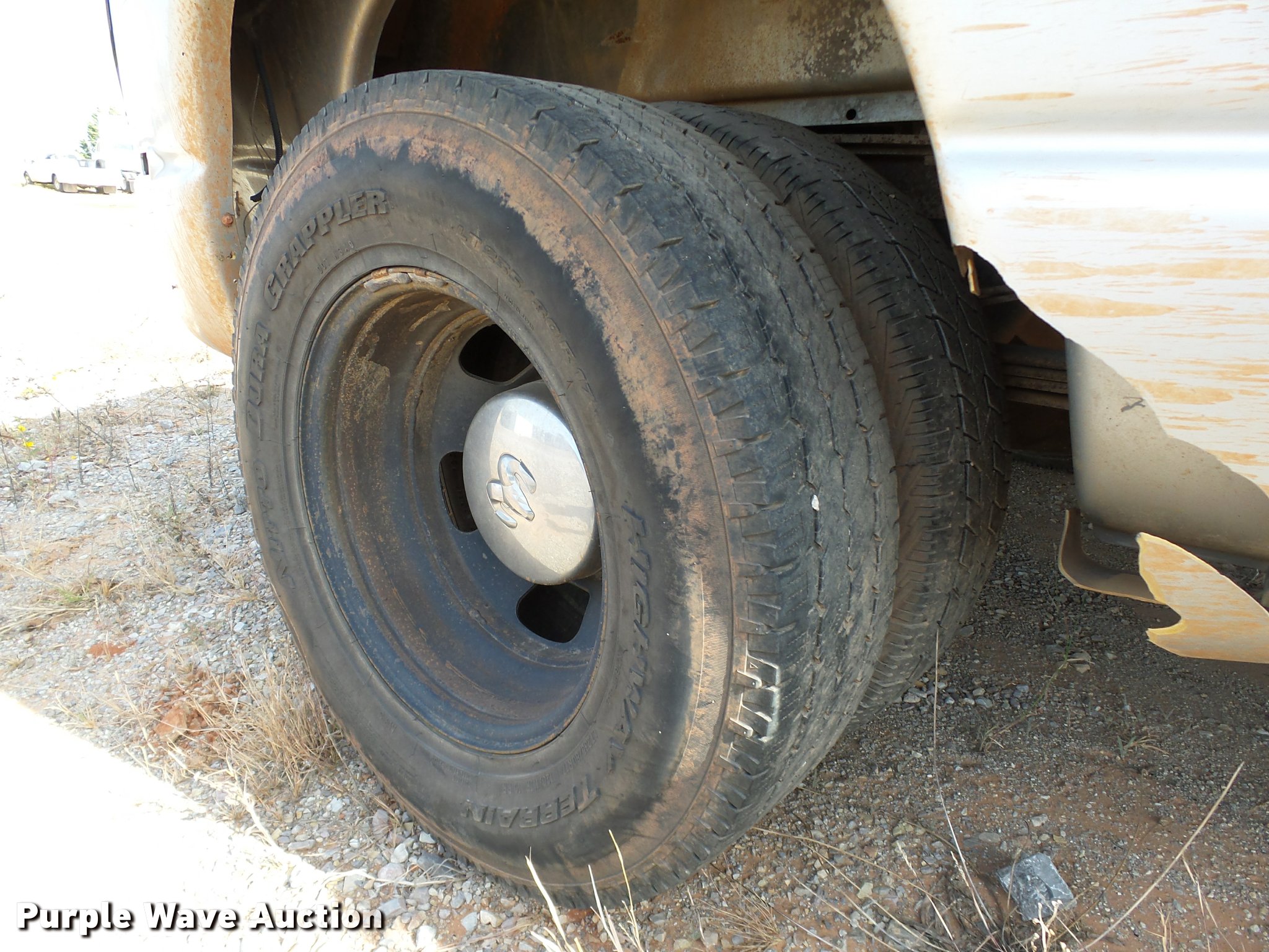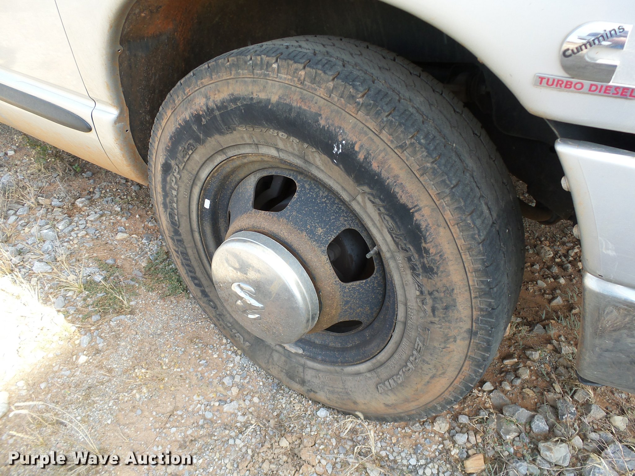 Purple Wave is selling a used 3/4 or 1 Ton Pickup or Van in Oklahoma. This item is a 2005 Dodge Ram 3500 Quad Cab pickup truck with the following: 275,342 miles on odometer, 5.9L L6 OHV 24V turbo diesel engine, 325 HP, Serial 57314704, Six speed manual transmission, AC and heat, Tilt, Cruise, AM/FM/CD, Power windows, locks, and mirrors, Cloth interior, Brake controller, Fog lights, Front tow hooks, Auxiliary fuel tank, 100 gallon capacity, Receiver hitch, Trailer wiring, LT235/80R17 tires, Check engine light on, Non-operational unit