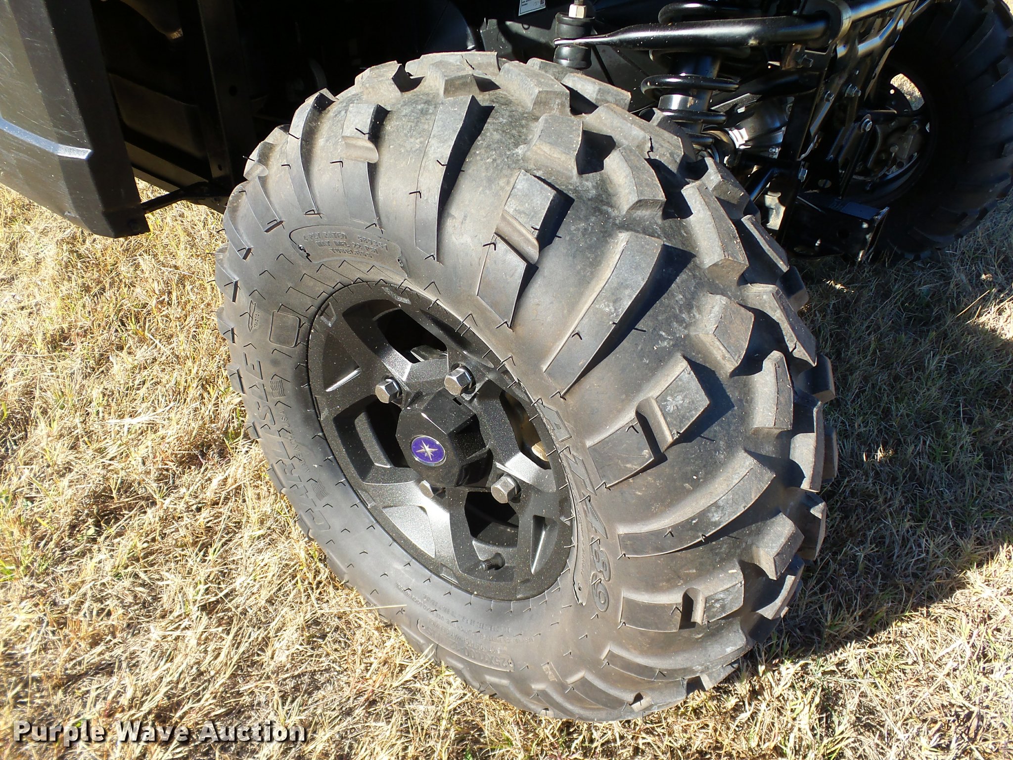 Purple Wave is selling a used Utility Vehicle in Oklahoma. This item is a 2014 Polaris Ranger XP900 utility vehicle with the following: 1,141 miles on odometer, 196 hours on meter, Polaris 900 875cc two cylinder EFI four stroke gas engine, CVT variable automatic transmission, Selectable four wheel/all wheel drive, OROPS cab, Vinyl interior, (2) 12V outlets, Lights, 54"W x 36"D x 12"H manual dump bed, Receiver hitch, 1,500 lbs payload capacity, Independent suspension, Carlisle AT489 25x10.00-12 NHS front tires, Carlisle AT489 25x11.00-12 NHS rear tires