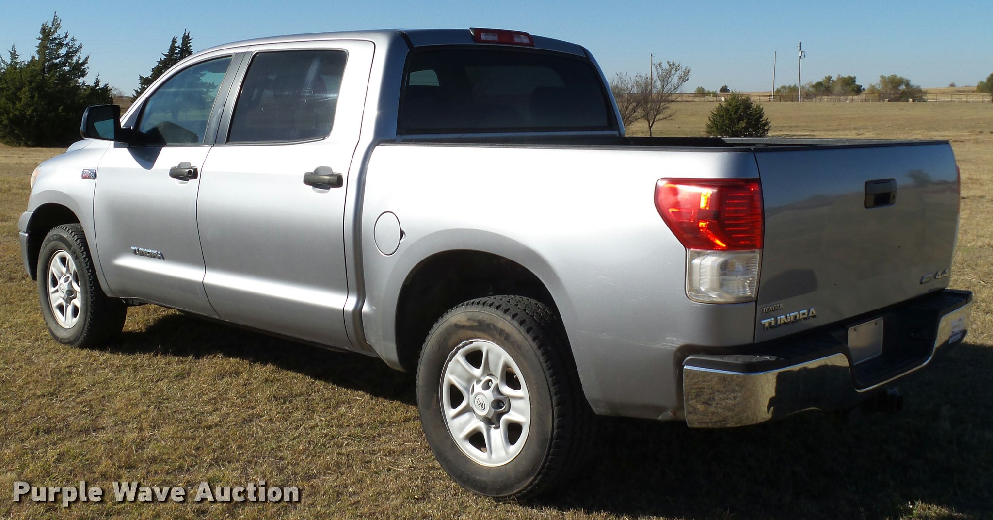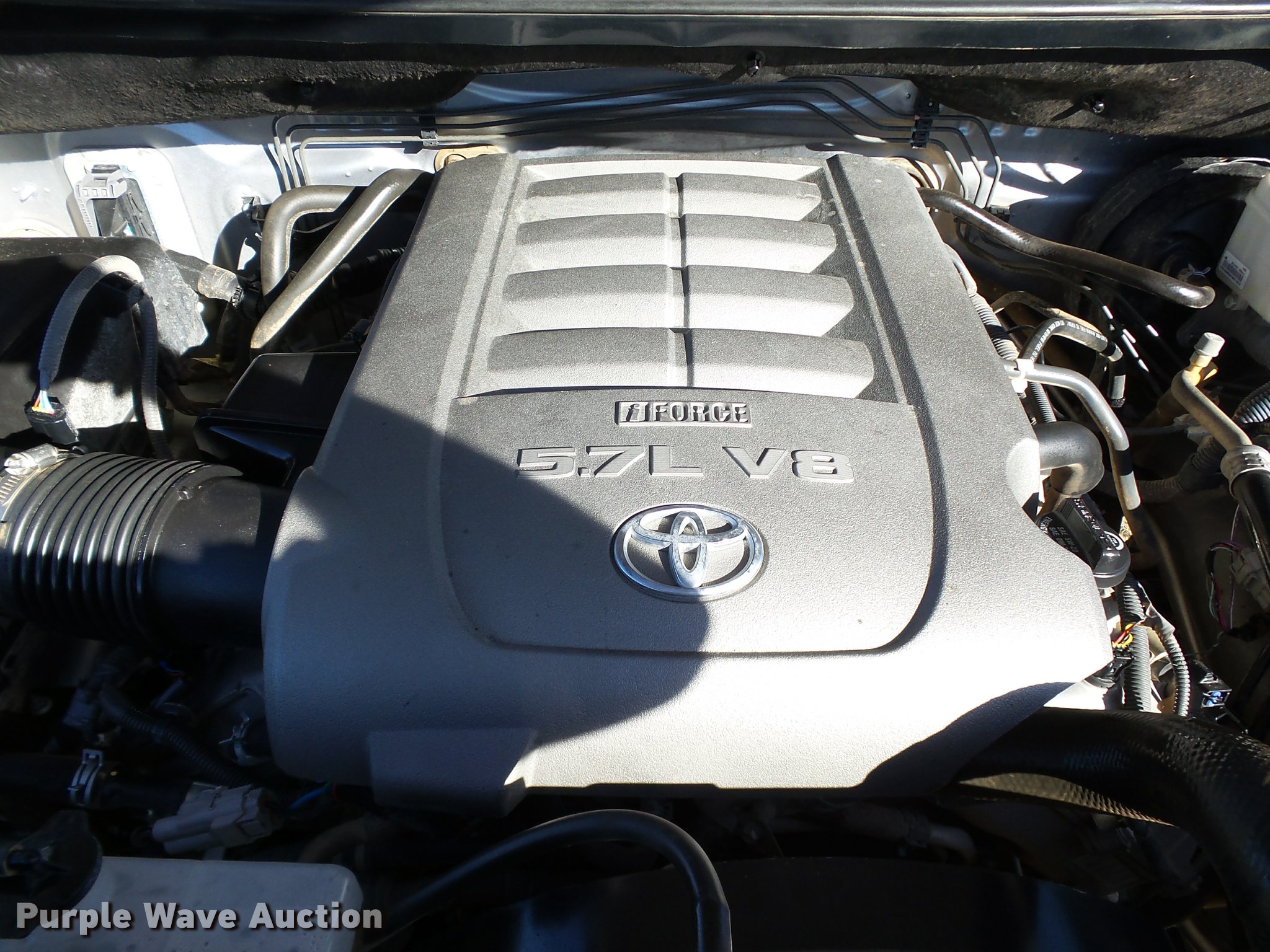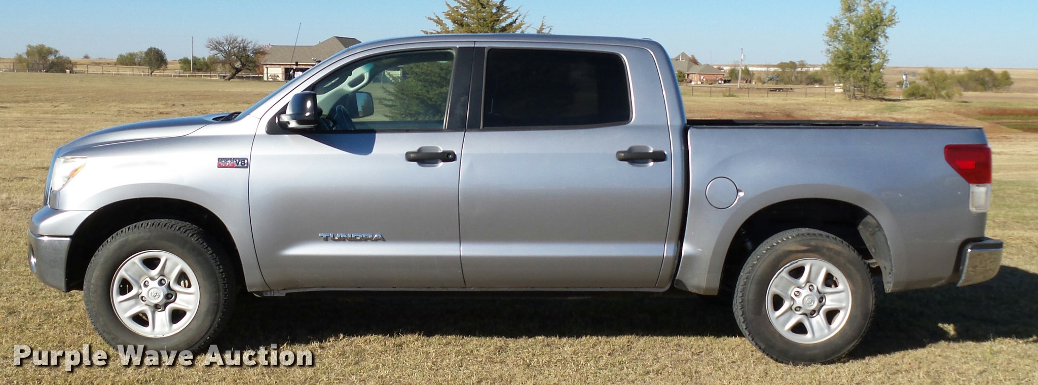 Purple Wave is selling a used 1/2 Ton Pickup or Van in Oklahoma. This item is a 2010 Toyota Tundra SR5 CrewMax pickup truck with the following: 138,963 miles on odometer, 5.7L V8 DOHC 32V FFV gas engine, Automatic transmission, Four wheel drive, AC and heat, Tilt, Cruise, AM/FM/CD, Power windows, locks, and mirrors, Cloth interior, Front tow hooks, Poly bed liner, Receiver hitch, Trailer wiring, LT275/65R18 tires