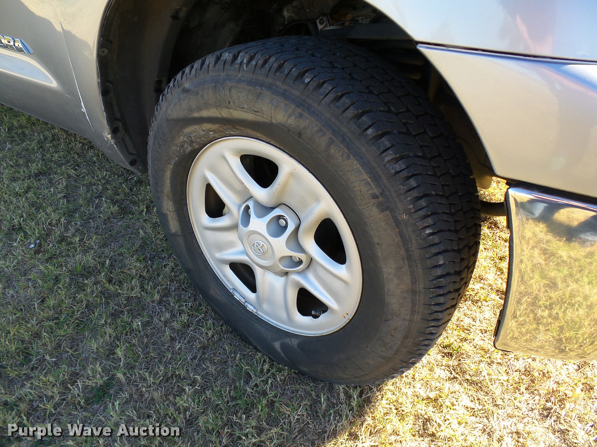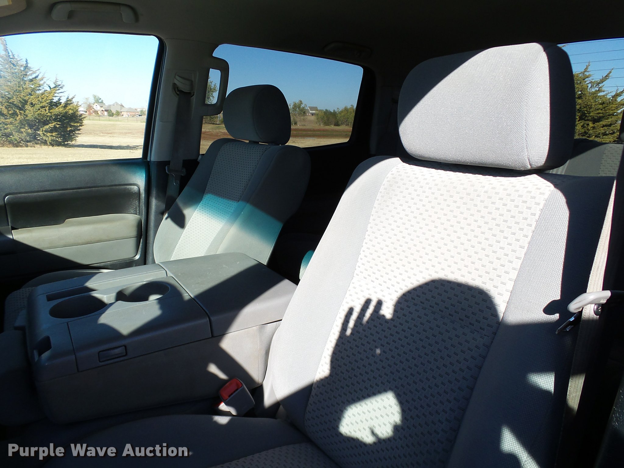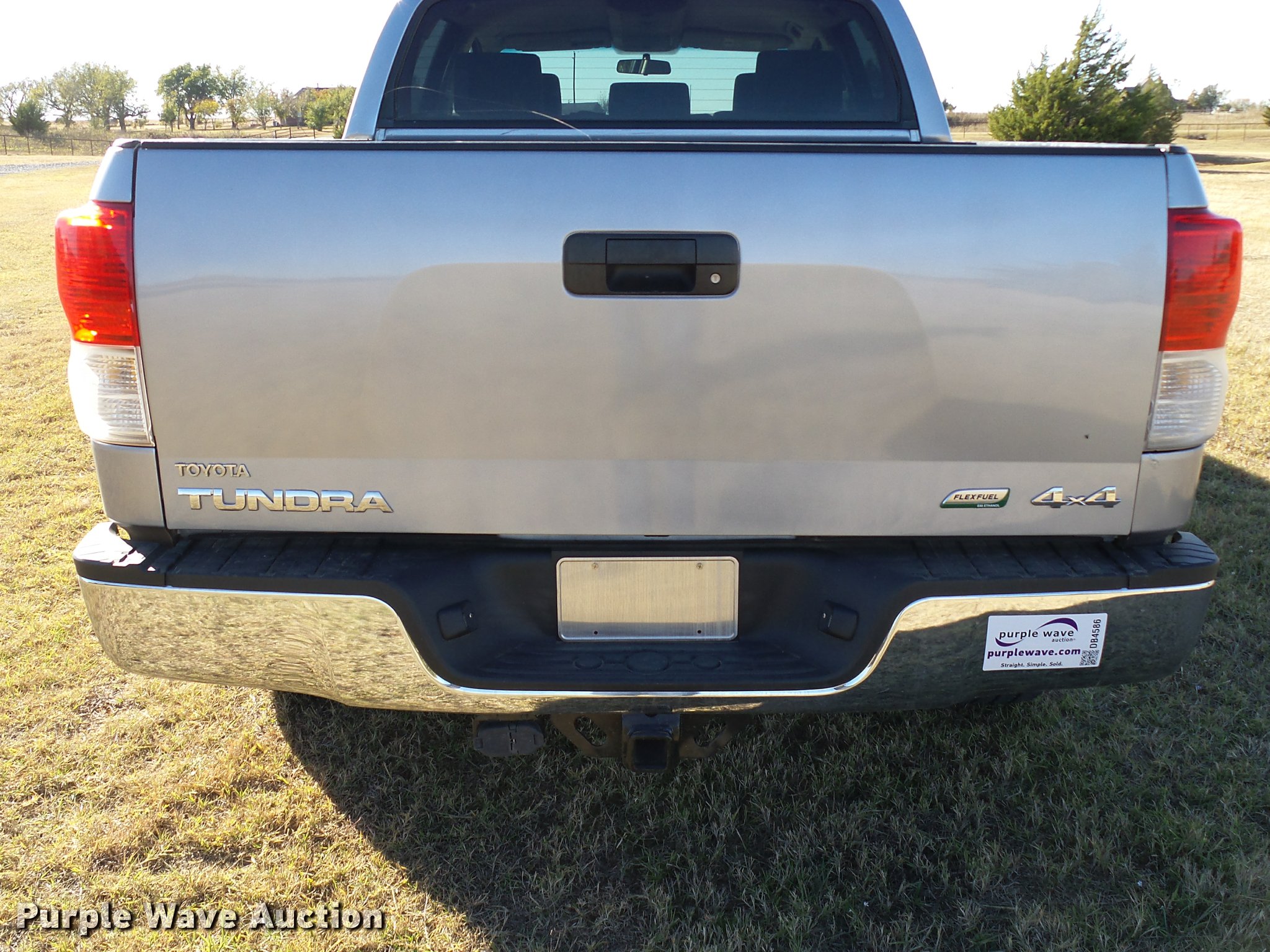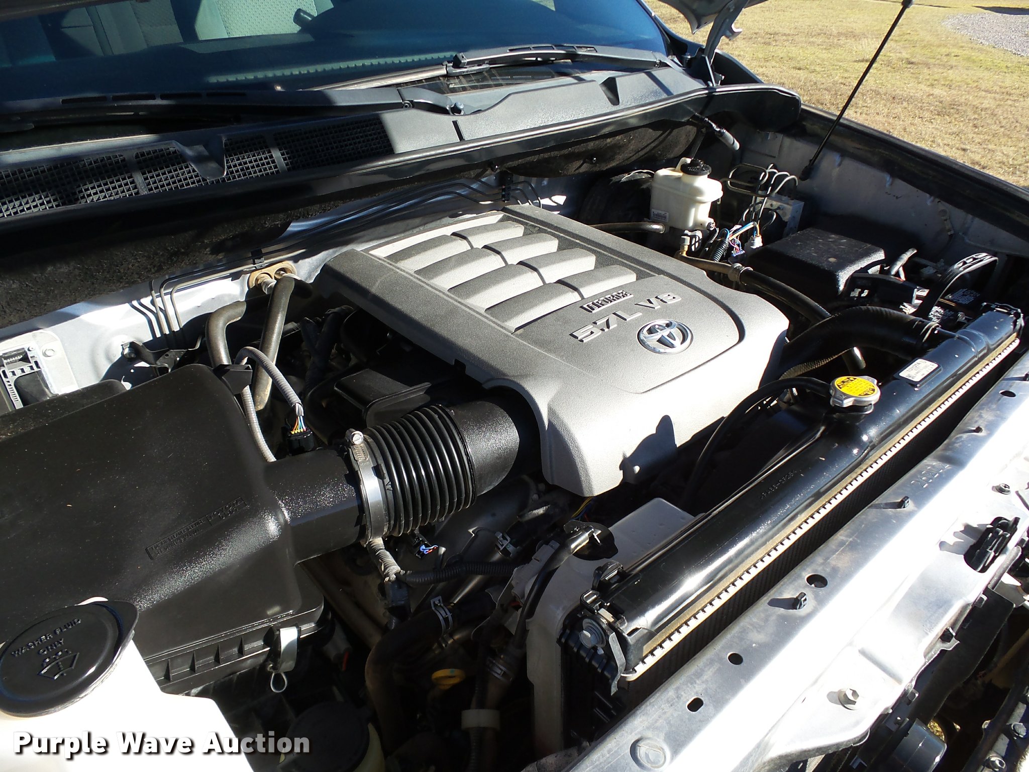 Purple Wave is selling a used 1/2 Ton Pickup or Van in Oklahoma. This item is a 2010 Toyota Tundra SR5 CrewMax pickup truck with the following: 138,963 miles on odometer, 5.7L V8 DOHC 32V FFV gas engine, Automatic transmission, Four wheel drive, AC and heat, Tilt, Cruise, AM/FM/CD, Power windows, locks, and mirrors, Cloth interior, Front tow hooks, Poly bed liner, Receiver hitch, Trailer wiring, LT275/65R18 tires