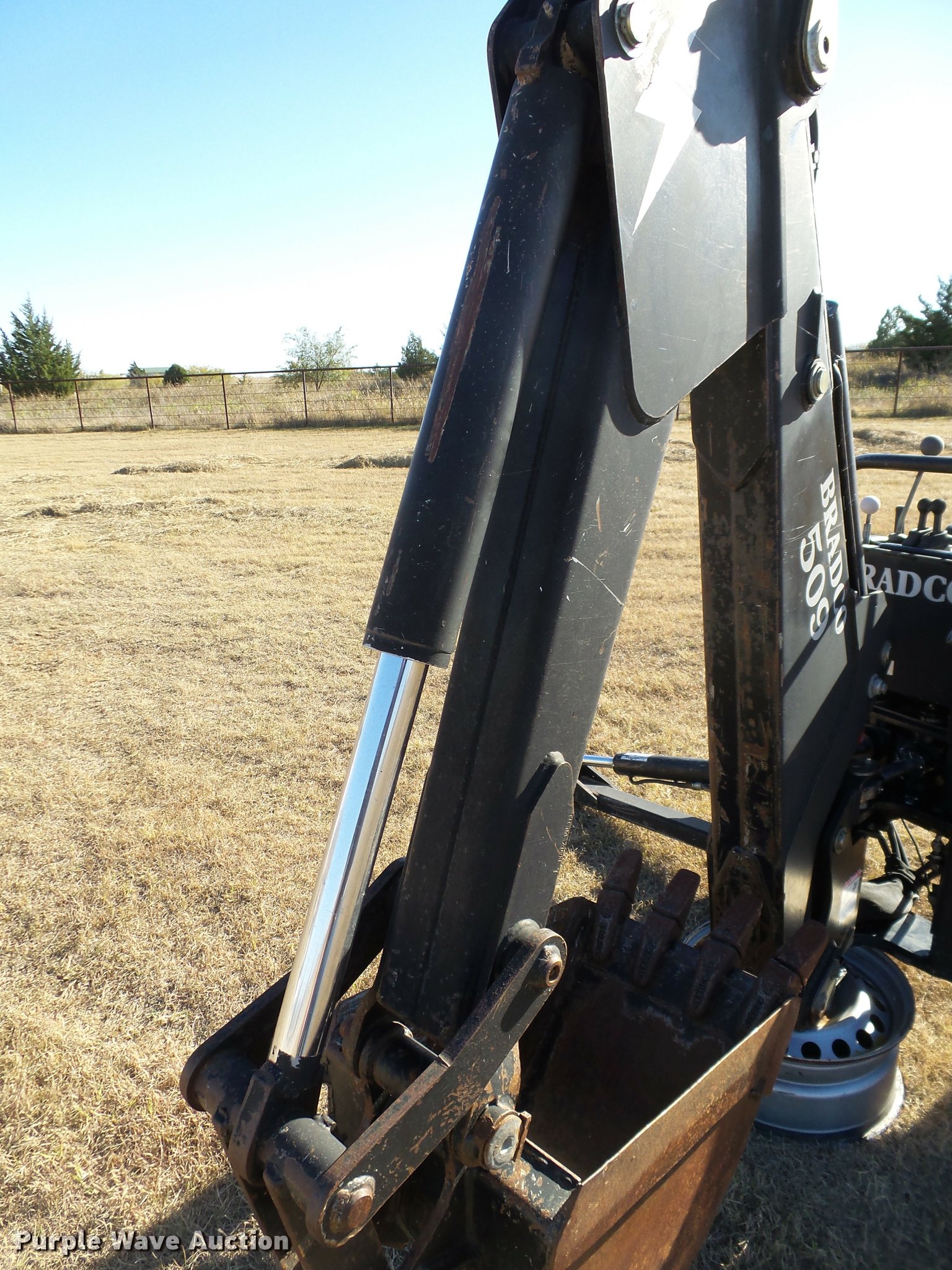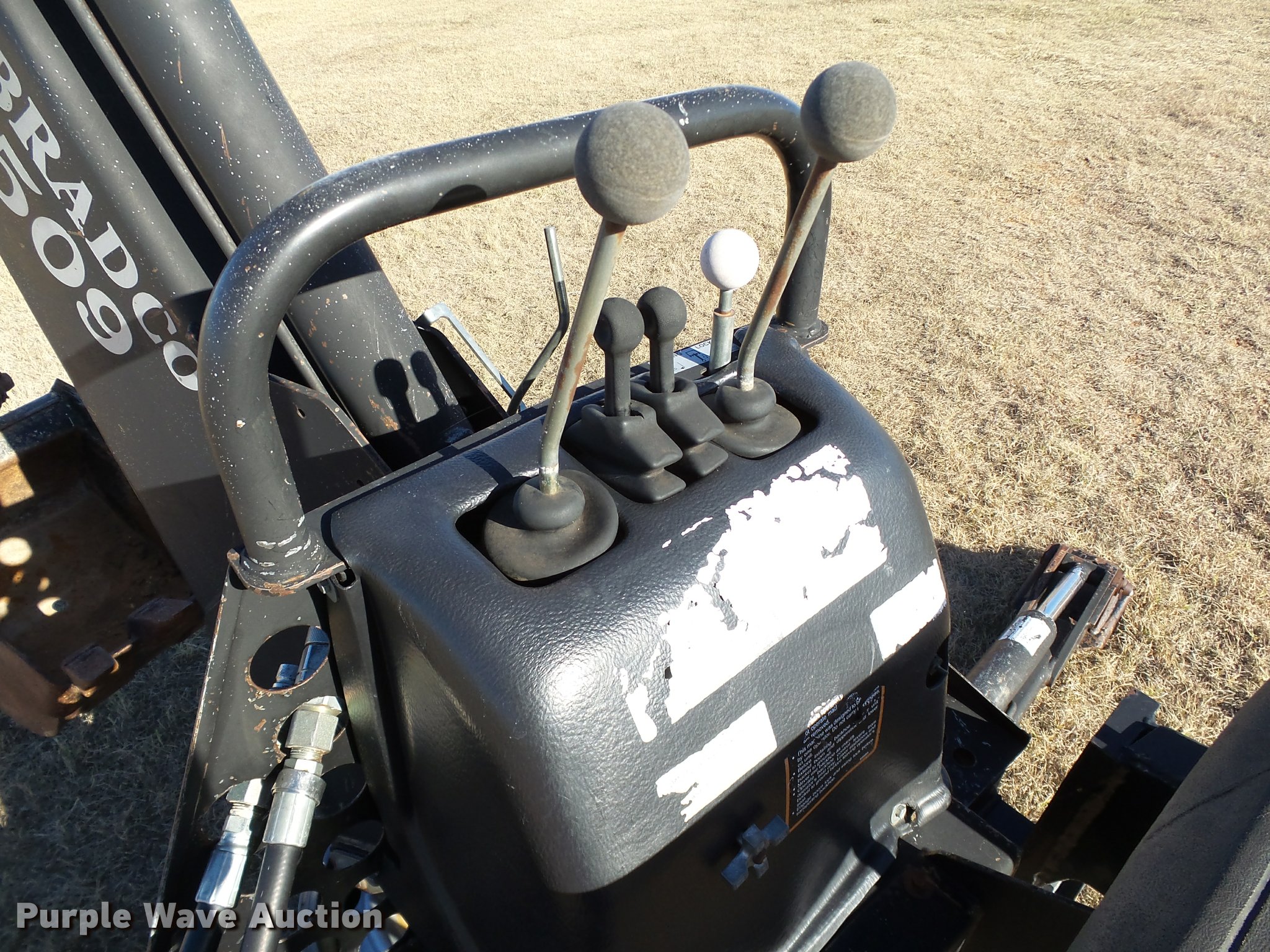 Bradco 509 backhoe attachment. Two stick hydraulic operation, 116" dig depth, Swing and boom lock, 16"W four tooth bucket, Hydraulic outriggers, Quick attach frame mount, Serial 8509X24303. Briscoe Sales, LLC. Edmond, OK 73025