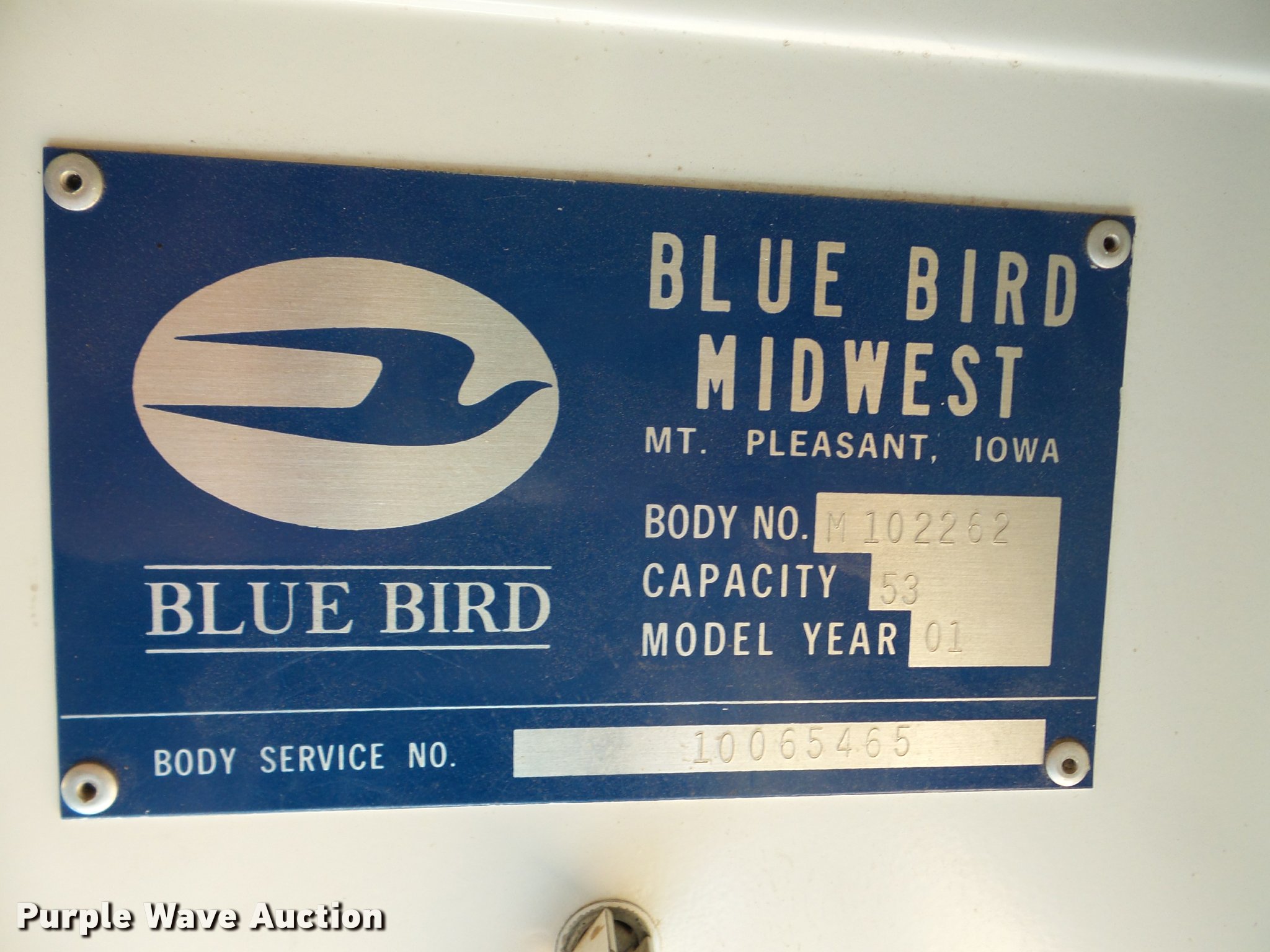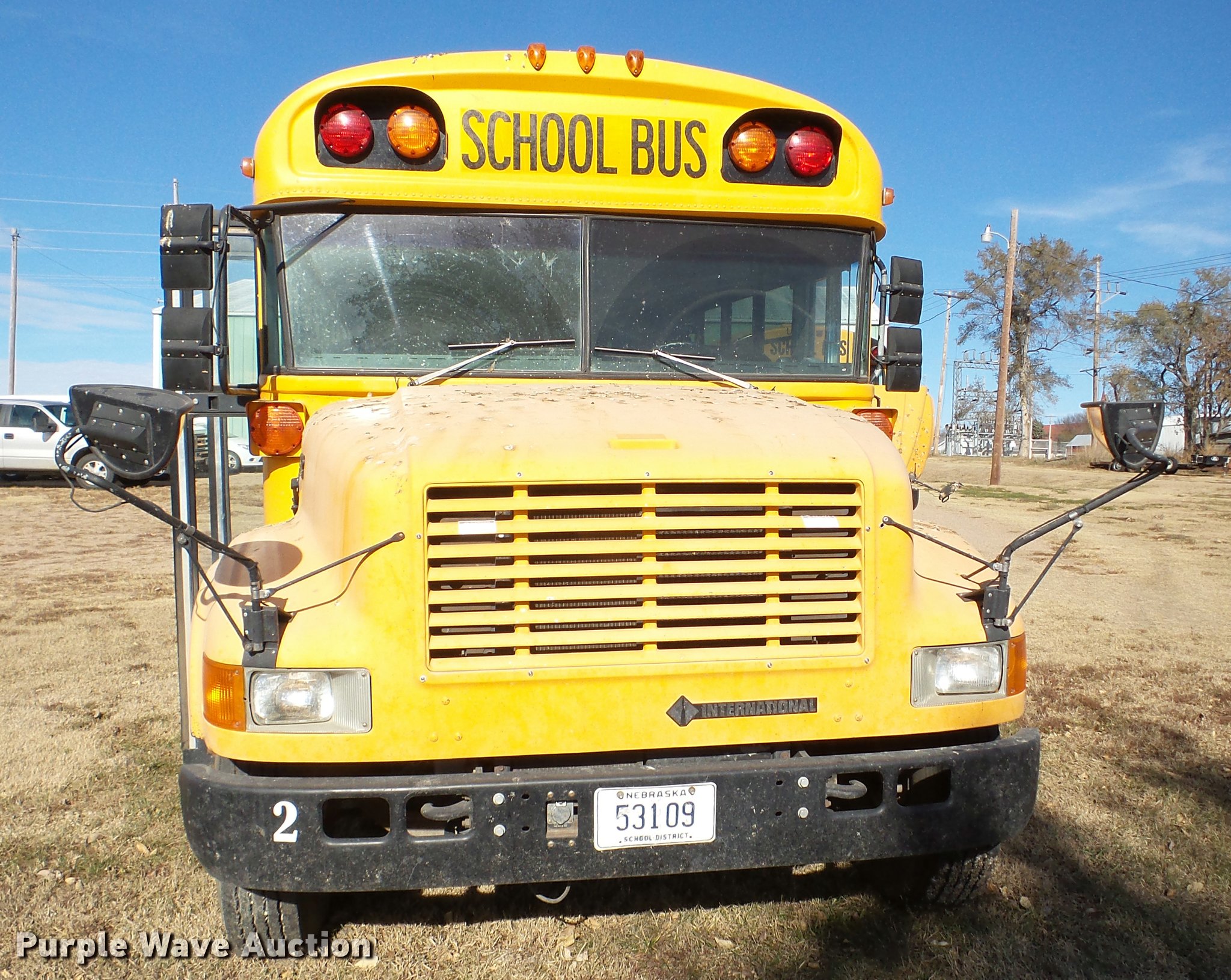 Purple Wave is selling a used Bus in Nebraska. This item is a 2001 International 3800 Blue Bird school bus with the following: 190,408 miles on odometer, 6,254 hours on meter, International T444E 7.3L V8 turbo diesel engine, Automatic transmission, Single axle, Heat, AM/FM/cassette, Safety vision camera, 53 passenger capacity, Ceiling, rear, and side emergency egress, Lighted stop sign, Storage rack, Rear tow hooks, Spring suspension, Hydraulic brakes, 240" wheelbase, 10R22.5 tires, Two way radio not included