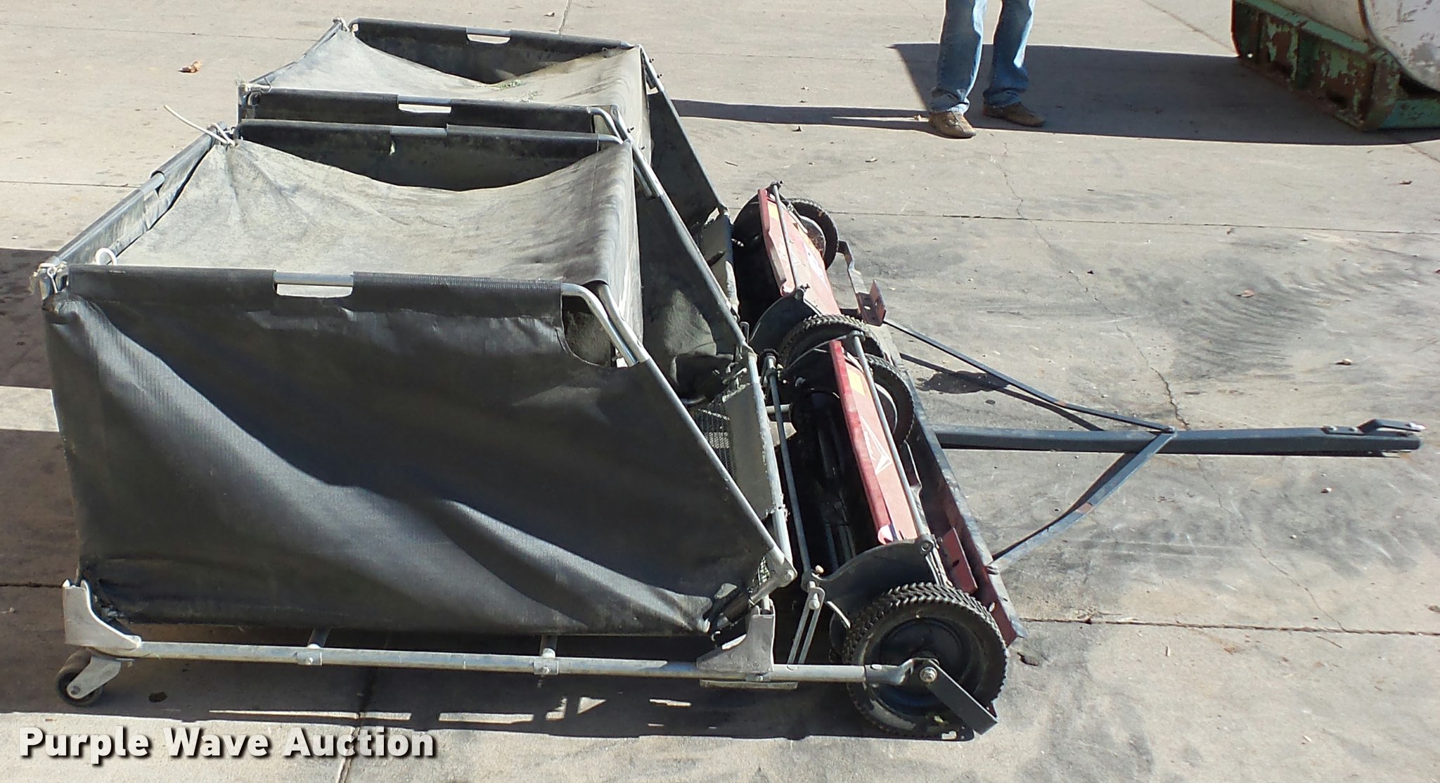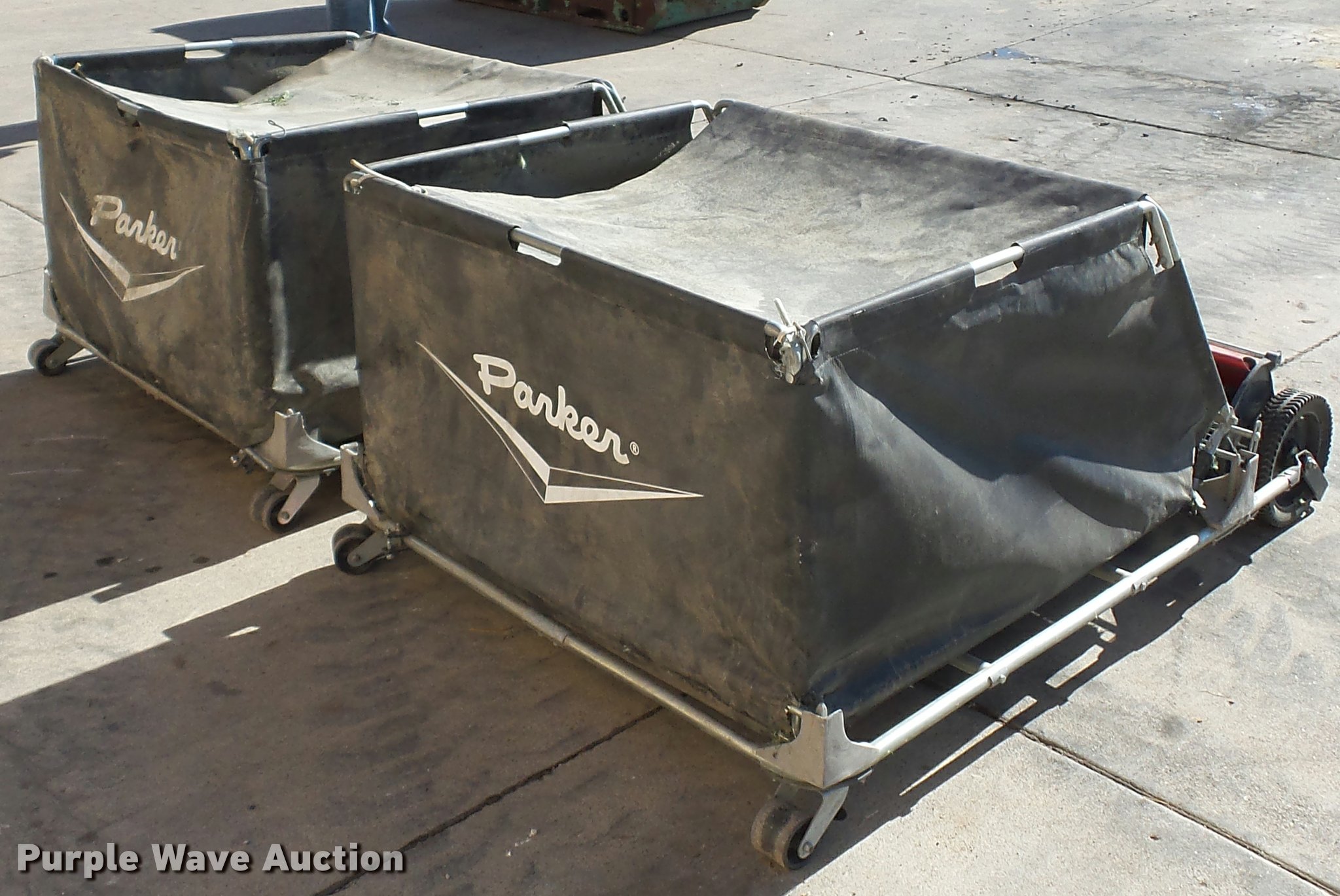 Purple Wave is selling a used Lawn and Garden in Iowa. This item is a Parker lawn sweeper with the following: (2) 36" sweepers, Pin hitch