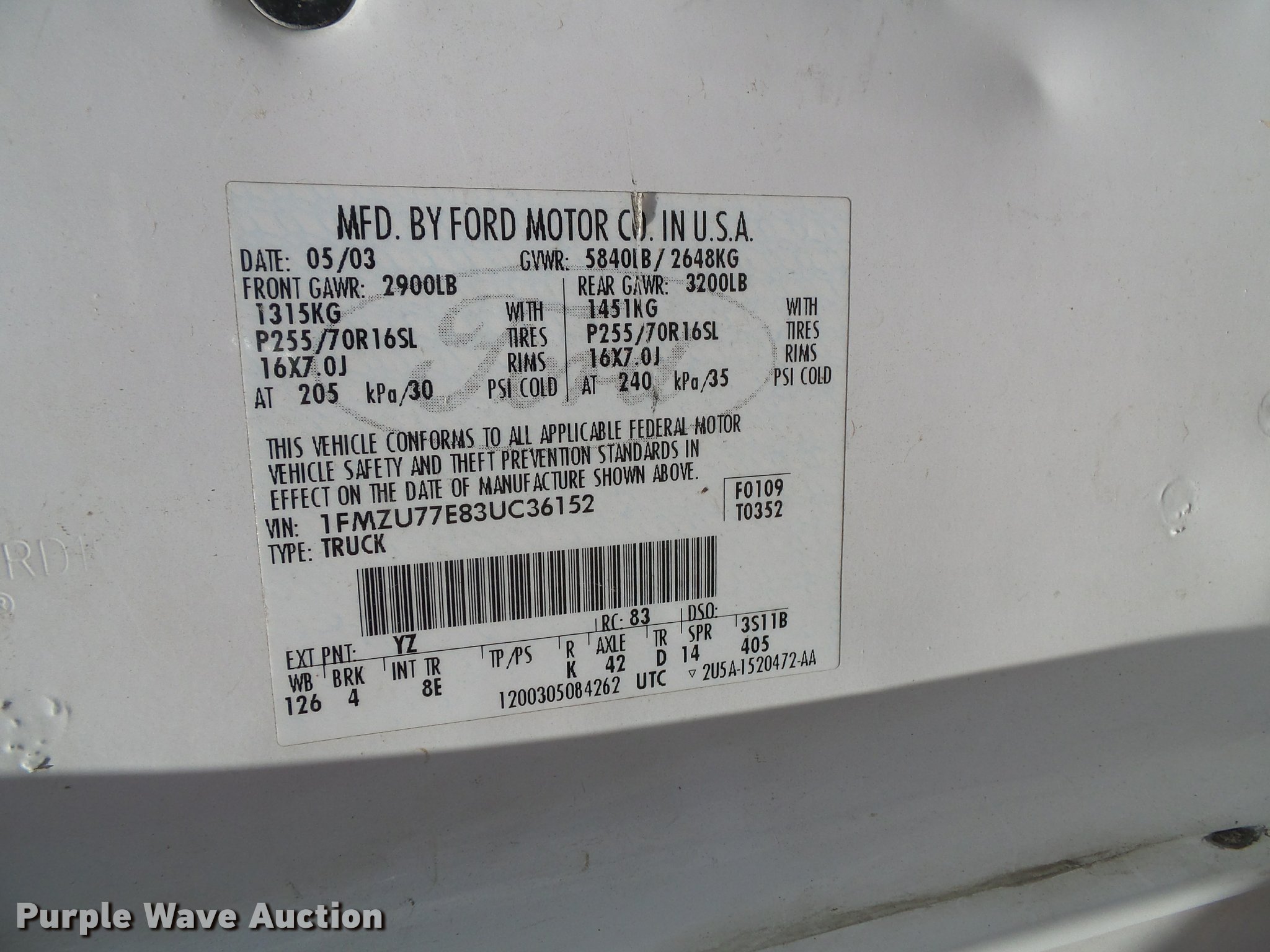 Purple Wave is selling a used Passenger Vehicle in Kansas. This item is a 2003 Ford Explorer Sport Trac XLT SUV with the following: 147,740 miles on odometer, 4.0L V6 SOHC 12V gas engine, Automatic transmission, Four wheel drive, AC and heat, Tilt, Cruise, AM/FM/CD/cassette, Power windows, locks, and mirrors, Cloth interior, Bed liner, Keyless entry, 255/70R16 tires, Paint peeling, Hail damage, Passenger front door will not open from exterior
