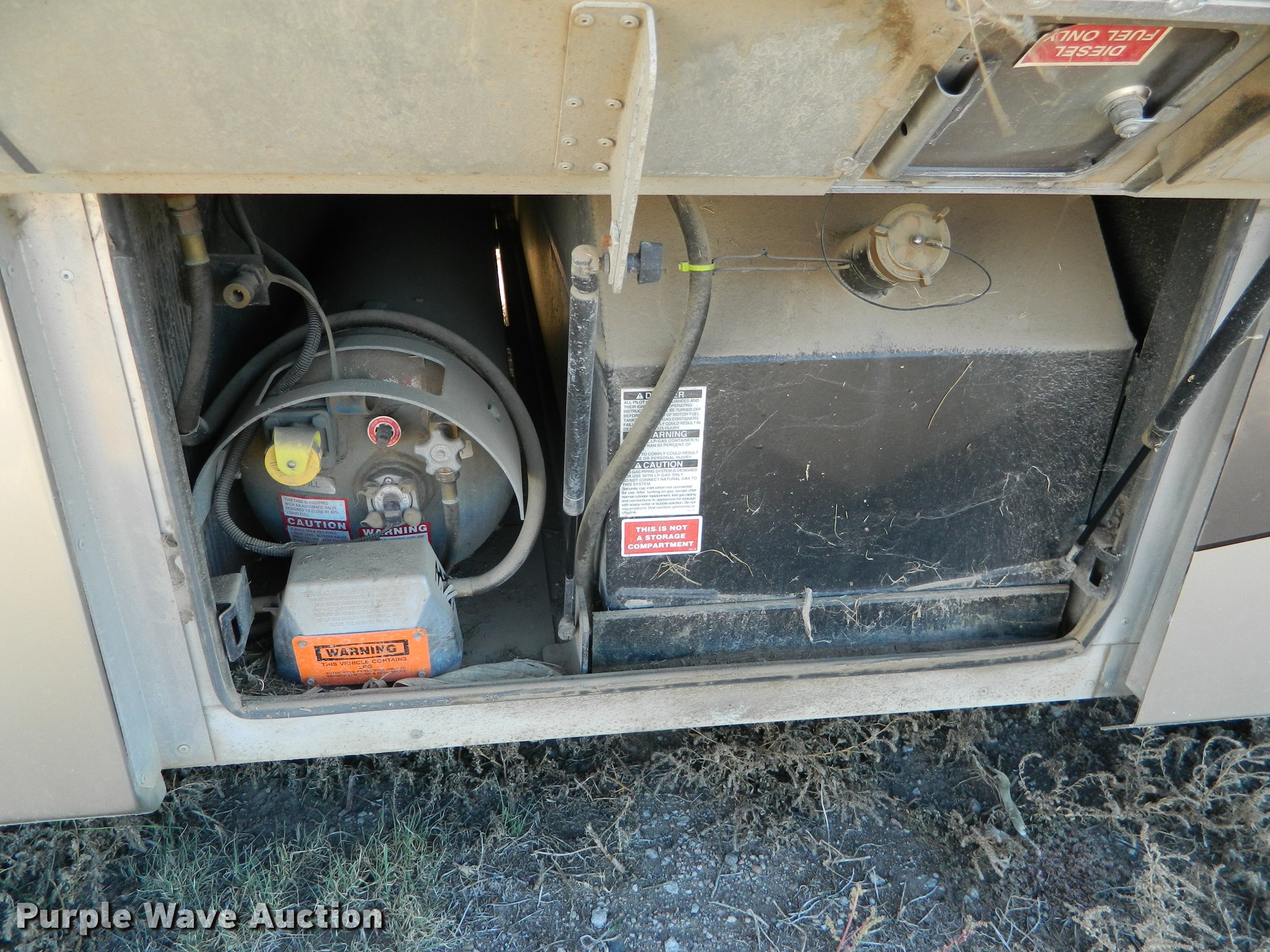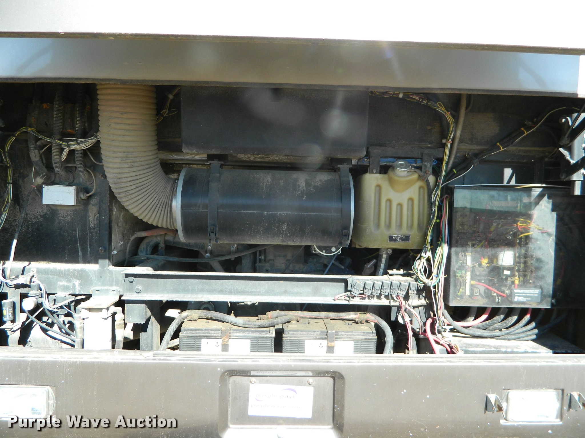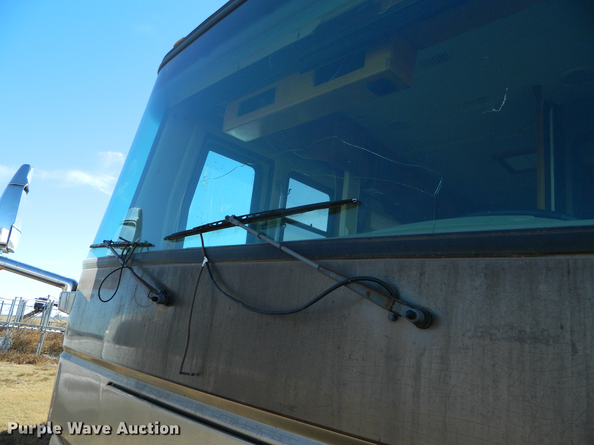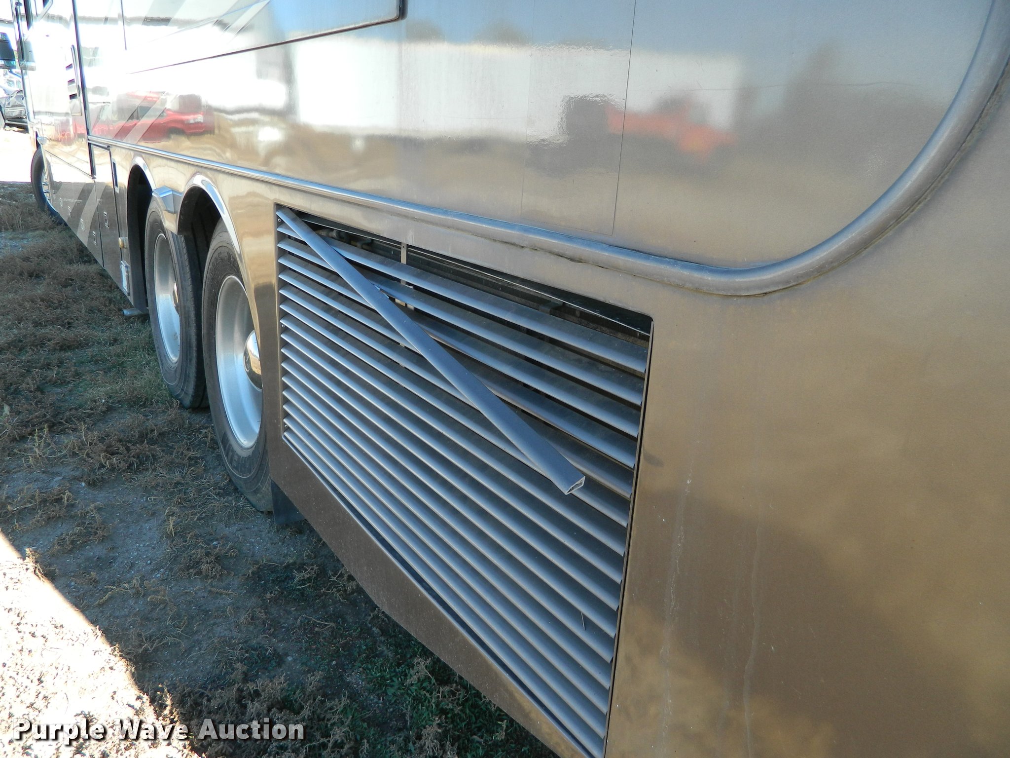 Purple Wave is selling a used RV in Kansas. This item is a 2004 Monaco Dynasty Princess RV with the following: 52,867 miles on odometer, Cummins diesel engine, 400 HP, Allison automatic transmission, Tandem axle, Tag axle, 43'L, (2) slide-outs, Power seats, Leather interior, Six-way heated mirrors, Onan generator, Diesel engine, 14 kW, (3) AC units, Air horns, Temperpedic king bed, Aqua hot heat system, Electric flush toilet, (2) televisions, Washer/dryer, Underbody slide-out trays, 120/240V 50 amp supply, NWH air level, Air suspension, Air brakes, Two stage engine brake, Michelin 11R22.5 YZE tires, GVWR 44,600 lbs, Mechanical manuals included, Recent interior cleaning and detail, Cracked windshield, Awning damaged, Water line broken, Bathroom dome broken