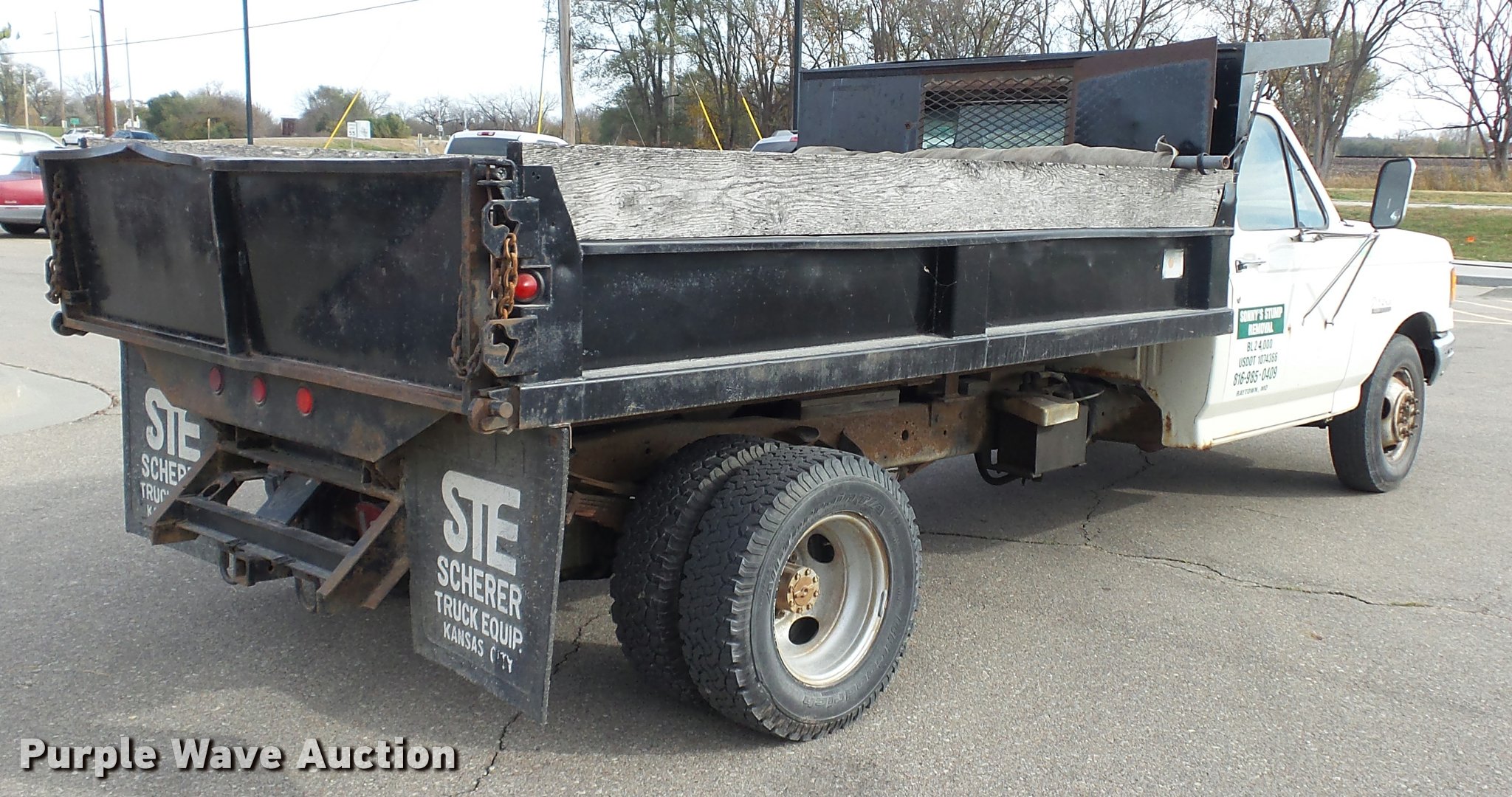 Purple Wave is selling a used 3/4 or 1 Ton Pickup or Van in Kansas. This item is a 1987 Ford F350 XL dump bed pickup truck with the following: 11,732 miles on odometer, Odometer inoperable, 6.9L V8 OHV 16V diesel engine, Four speed manual transmission, Limited slip differential, AC and heat, Tilt, Cruise, AM/FM/cassette, Power windows and locks, Cloth interior, Brake controller, Block heater, PTO, Peabody 100VN dump bed, 10' x 7', 11" side height, 8" side board height, 2 to 3 cu. yd. capacity, Rollover tarp, Dual fuel tanks, Receiver hitch, Trailer wiring, 215/85R16 front tires, 225/75R16 rear tires, GVWR 11,000 lbs, Second synchro weak, Rust, Carfax report available from seller