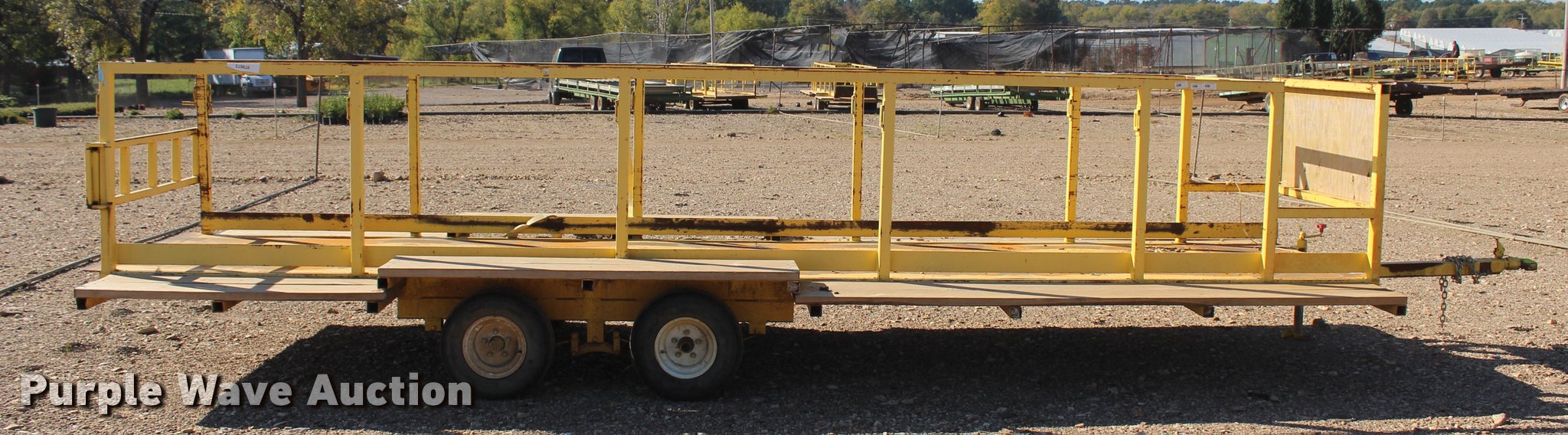Purple Wave is selling a used Trailer Other in Oklahoma. This item is a Nursery/plant trailer with the following: 20'L x 82"W, 20'L x 52"W x 38"H enclosure, 52" rear gate, 15"W wood running boards, Steel deck and frame, Strap hooks, 2" ball hitch, Jack stand, Tandem axle, 20.5x8.0-10 tires, Unit# 322