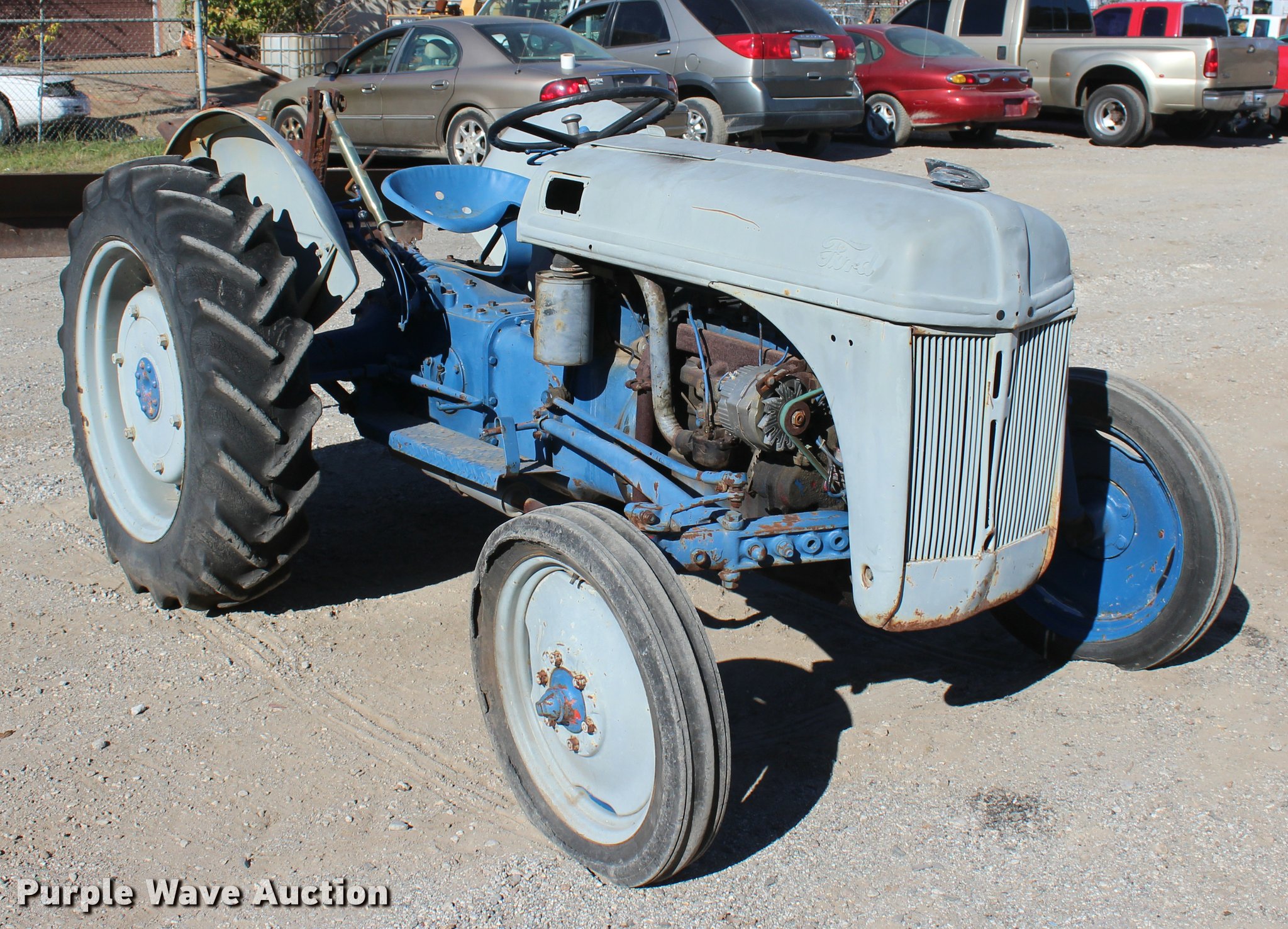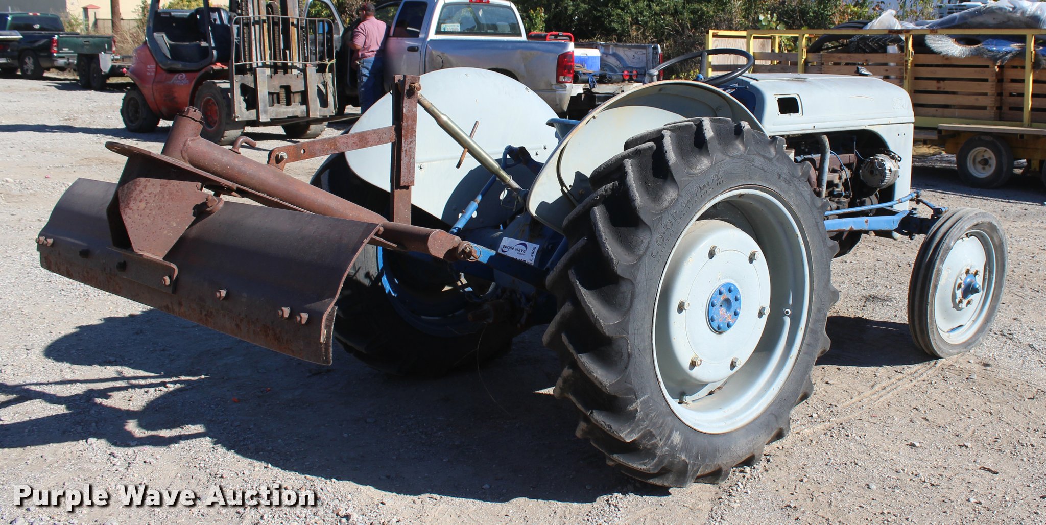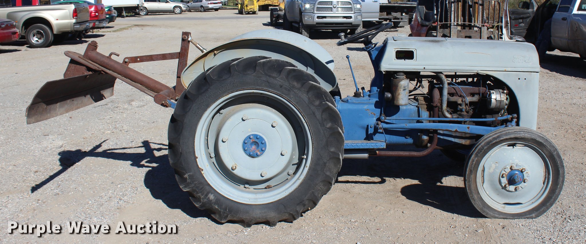 Purple Wave is selling a used Tractor in Oklahoma. This item is a Ford 8N tractor with the following: Four cylinder gas engine, Manual transmission, 4F-1R gears, Suspension seat, Three point, 540 PTO, Rear blade, Manual angle adjust, 4.00-19 front tires, 11.2-28 rear tires, Tires may need to be replaced, Serial 223417