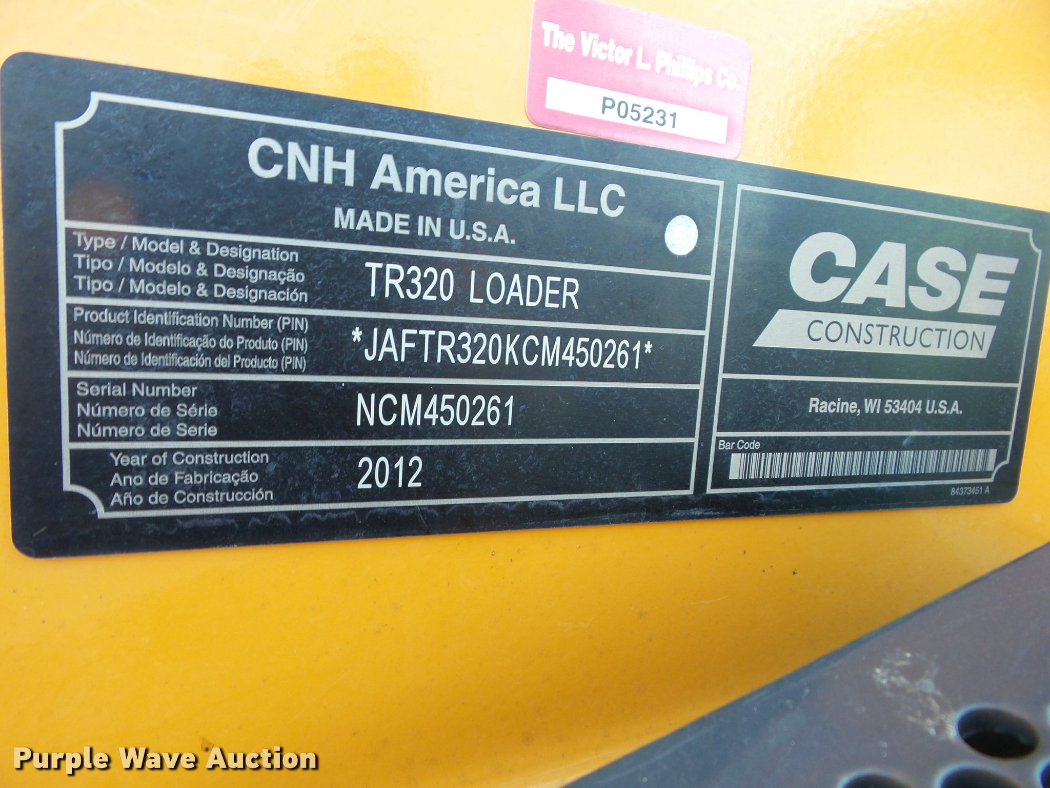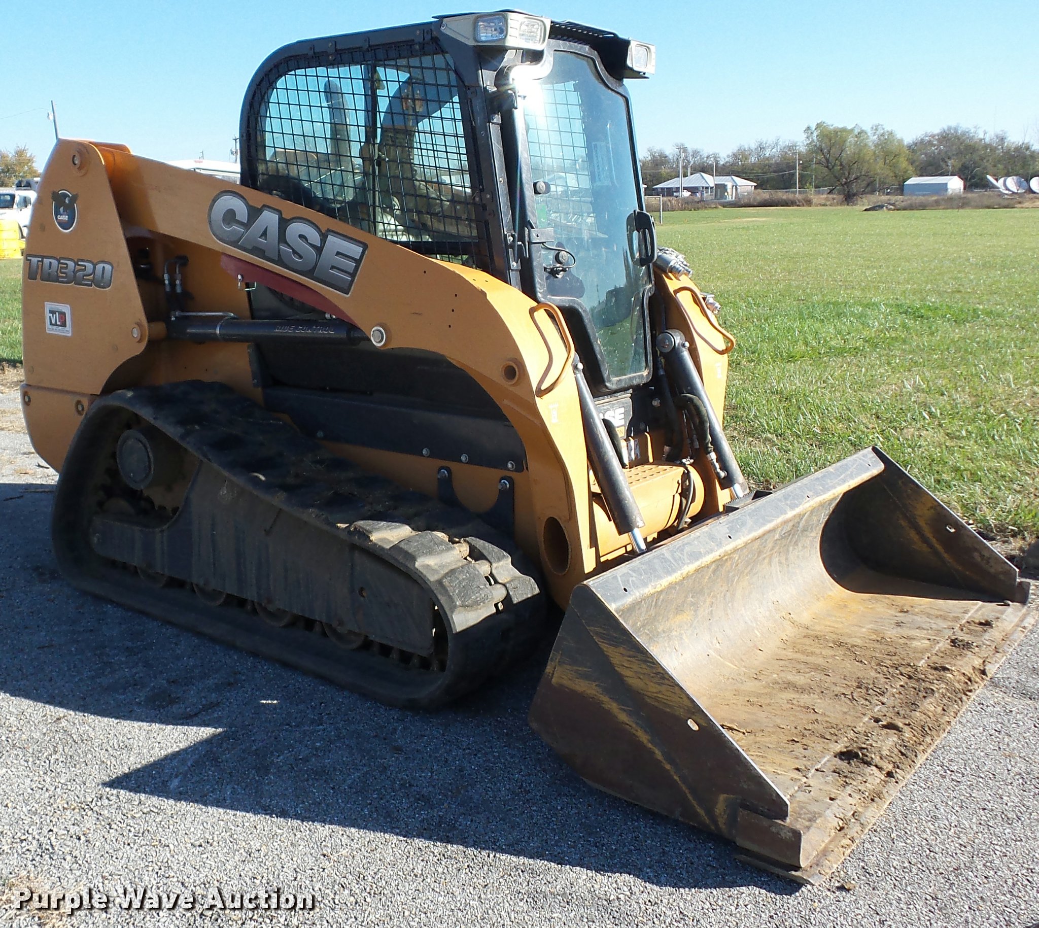Purple Wave is selling a used Tracked Skid Steer Loader in Oklahoma. This item is a 2012 Case TR320 skid steer with the following: 283 hours on meter, Four cylinder turbo diesel engine, Two speed hydrostatic transmission, Enclosed cab, AC and heat, AM/FM/weatherband, Joystick controls, EMS panel, Spring suspension seat, Backup alarm, Ride control, Block heater, 84"W bucket, Bolt-on cutting edge, Hydraulic quick coupler, Auxiliary hydraulics, Auxiliary electrical outlet, Bridgestone 18"W tracks, Serial NCM450261