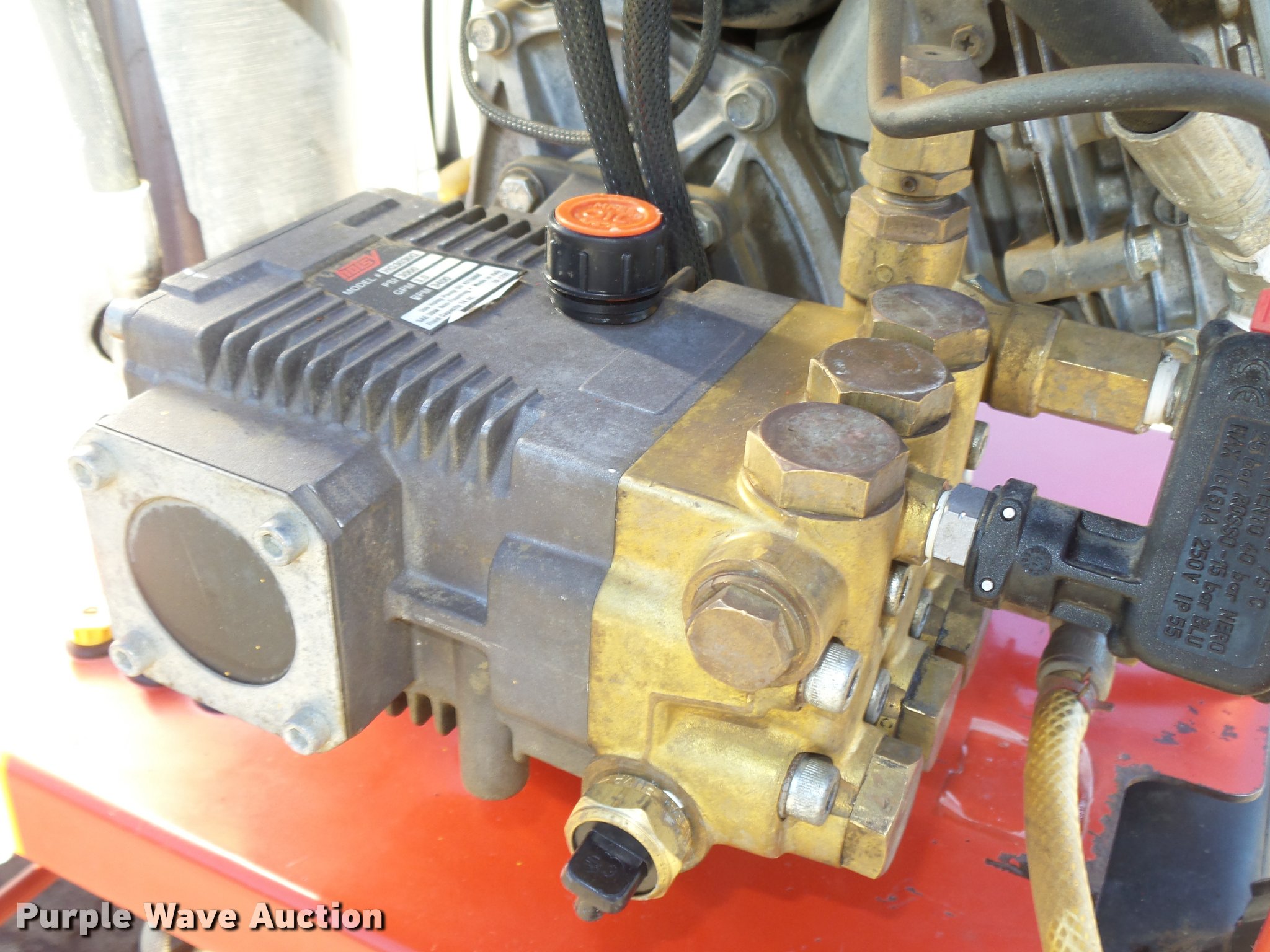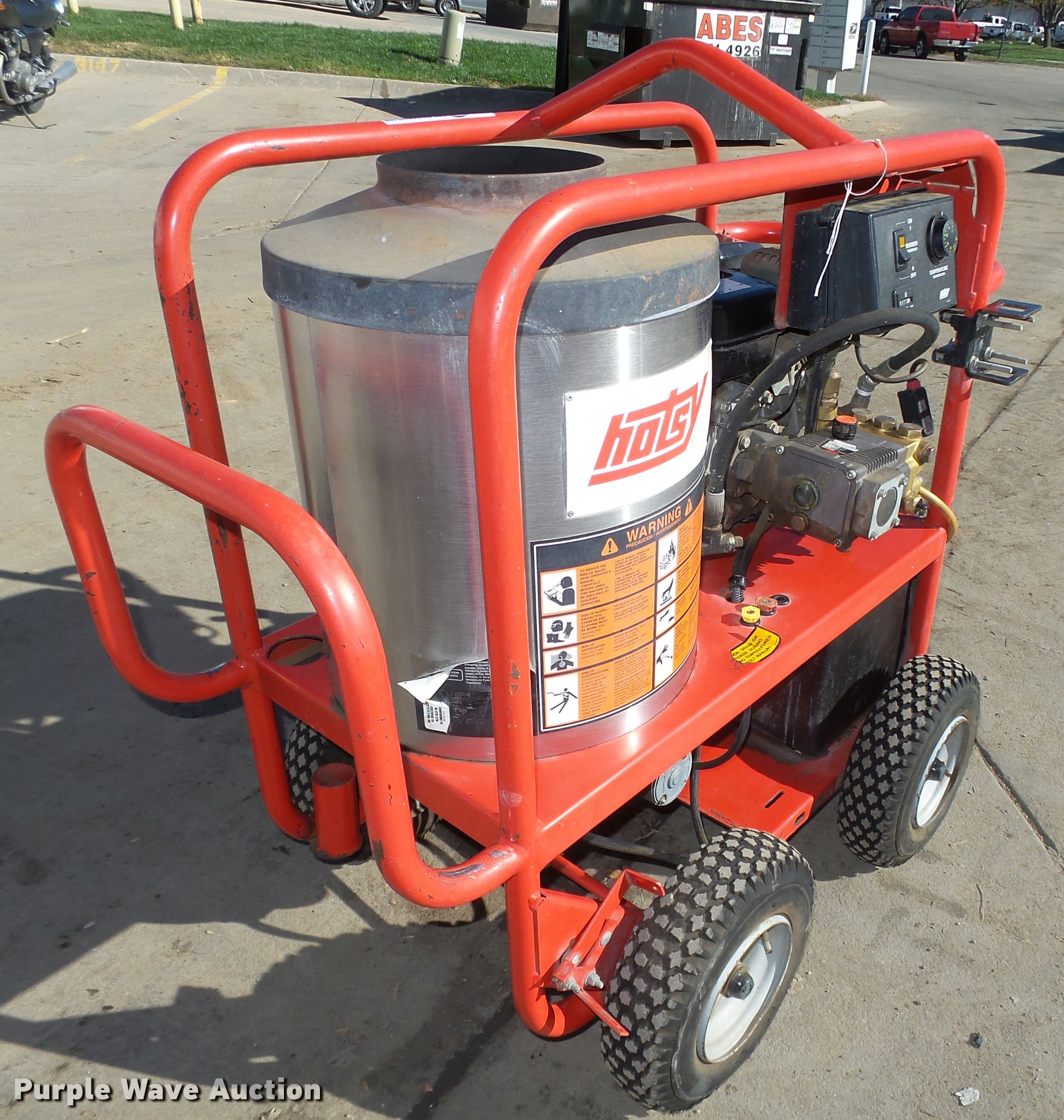 Purple Wave is selling a used Pressure Washer in Nebraska. This item is a Hotsy pressure washer with the following: 714 hours on meter, Robin EX21 gas engine, 7 HP, Pump model HG3030G, Three gallon per minute capacity, 3,000 psi, Garden hose coupler, Diesel fuel heater, Lifting eye, 4.10/3.50-6 pneumatic tires, No hose or wand