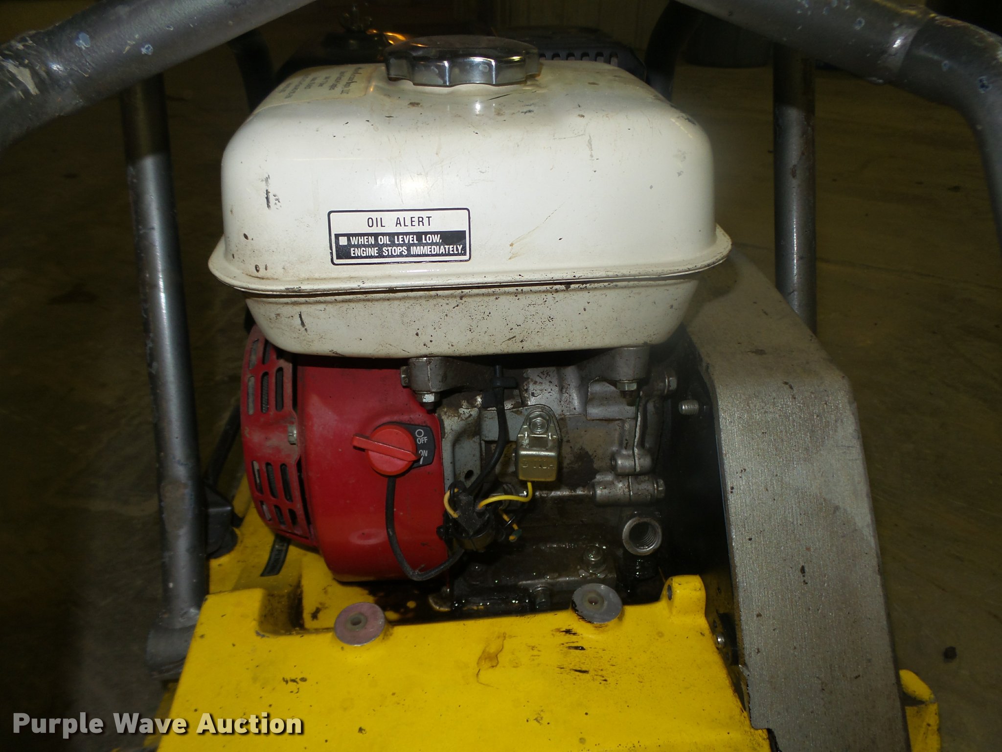 Purple Wave is selling a used Walk Behind Compactor in Nebraska. This item is a 2000 Wacker WP1550A plate compactor with the following: Honda GX160 gas engine, 22"L x 19"W base, Protective cage, Lifting eye, Unknown operating condition, No oil plug, Serial 5139979