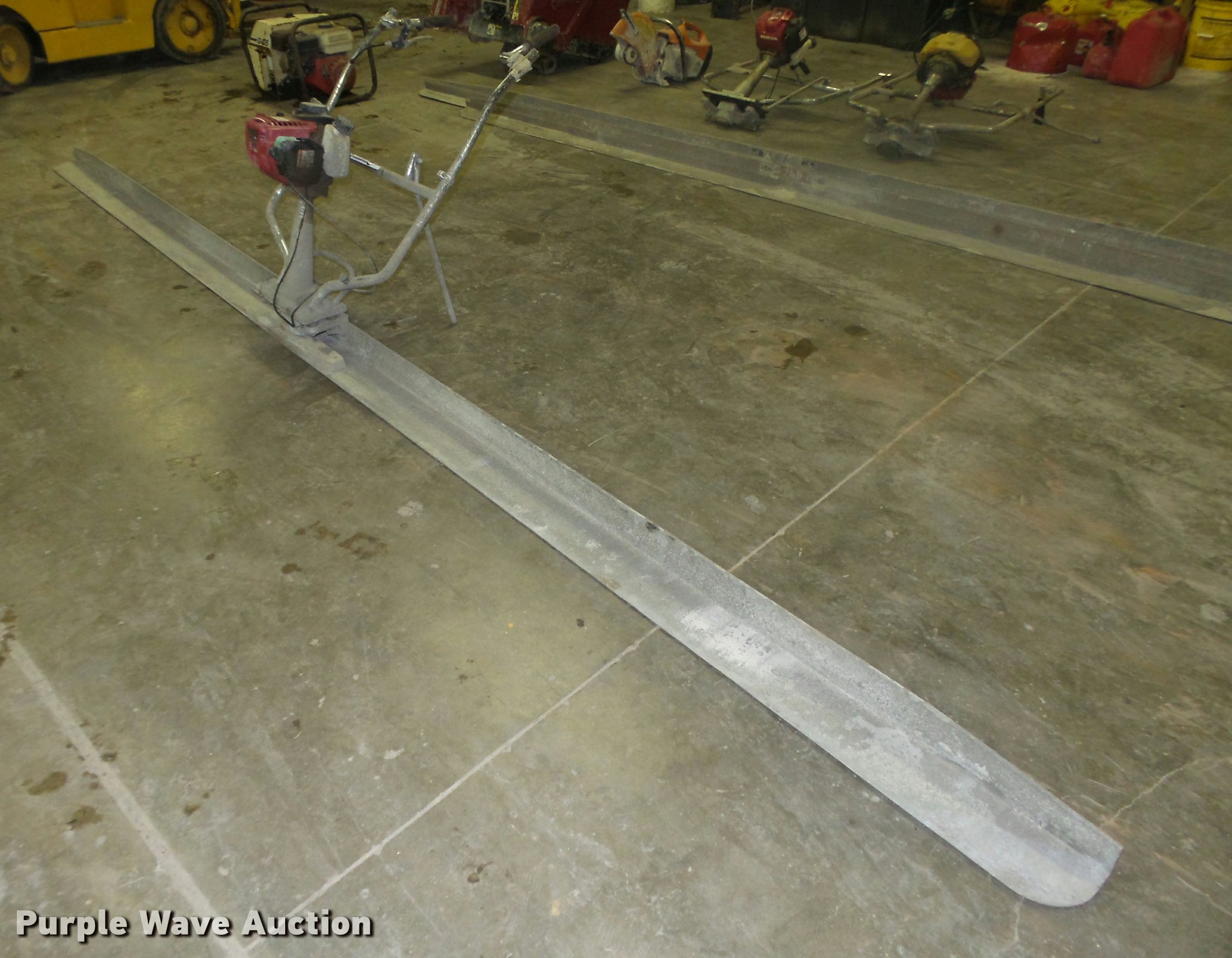Purple Wave is selling a used Concrete Equip. or Acces. in Nebraska. This item is a Concrete screed with the following: Honda gas engine, Four stroke, 14"W aluminum screed board, 4.5"D x 3.5" back
