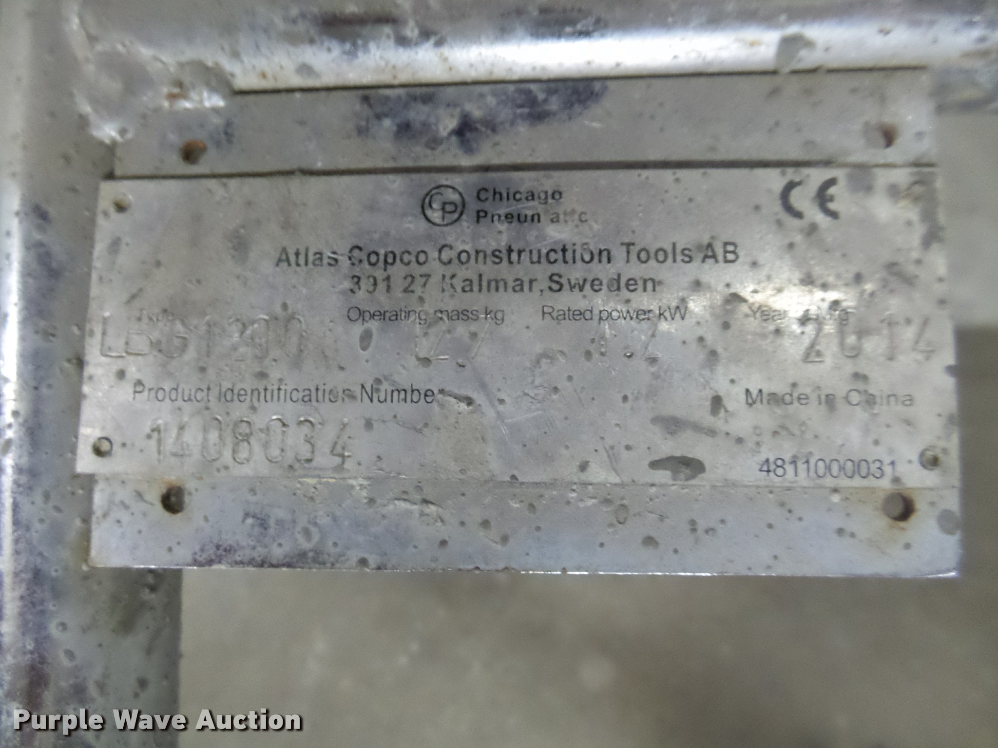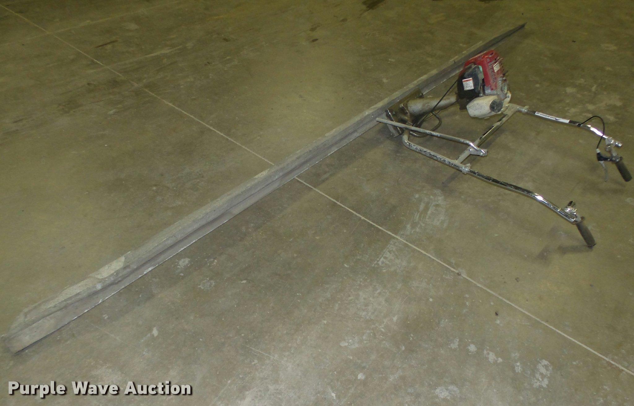 Purple Wave is selling a used Concrete Equip. or Acces. in Nebraska. This item is a 2014 Atlas Copco LBG1200 vibratory concrete screed with the following: Honda gas engine, 12'W x 4.5"D x 3.5"H aluminum screed board, Unknown operating condition, Serial 1408034
