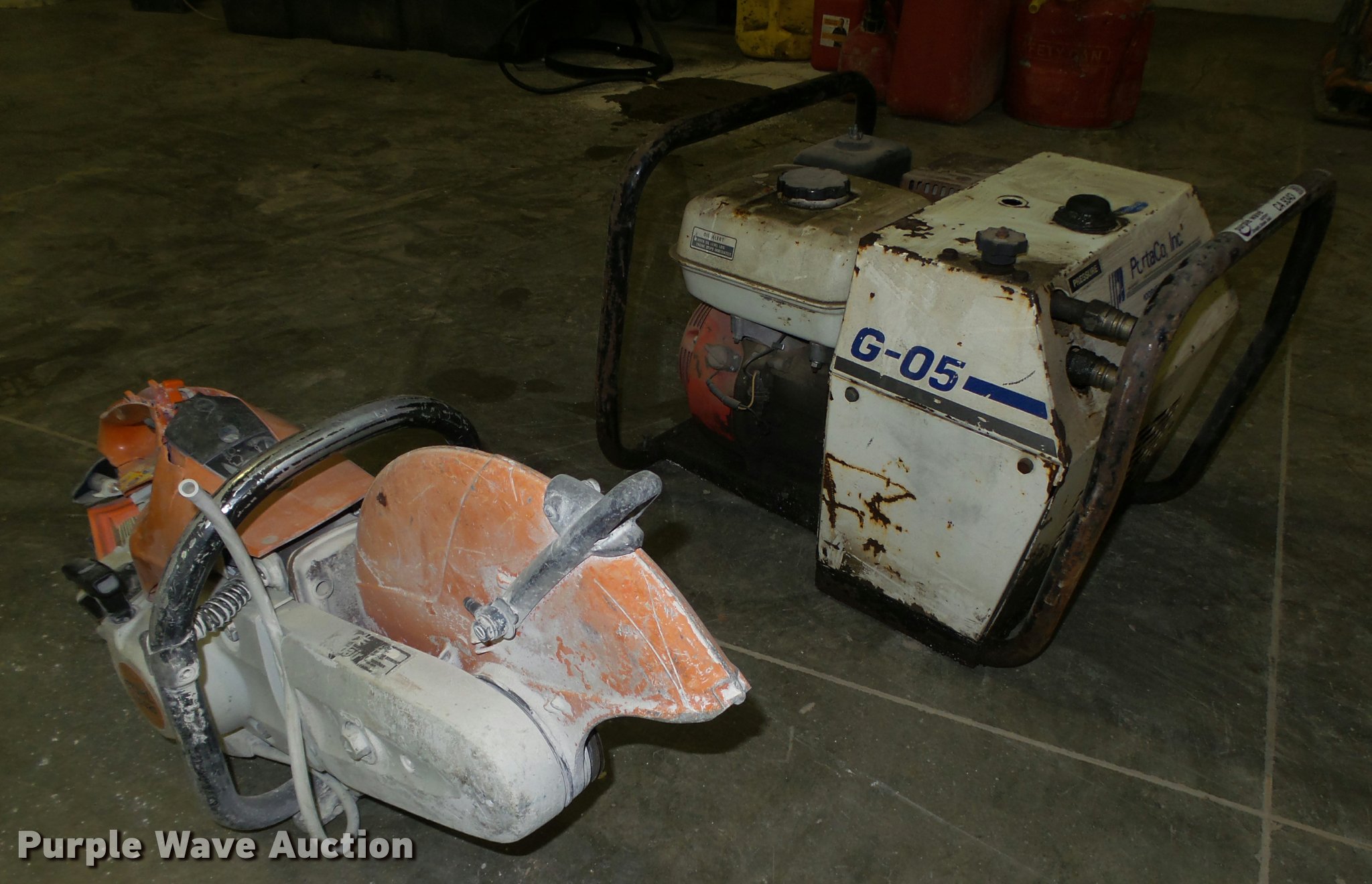 Tools. Porta Co G05 hydraulic power pack Honda GX160 gas engine, Pioneer fittings, Stihl TS420 cut-off saw Handles damaged, Unknown operating condition. CR Menn Concrete. 260 Shuster Ranch Road. Fremont, NE 68025