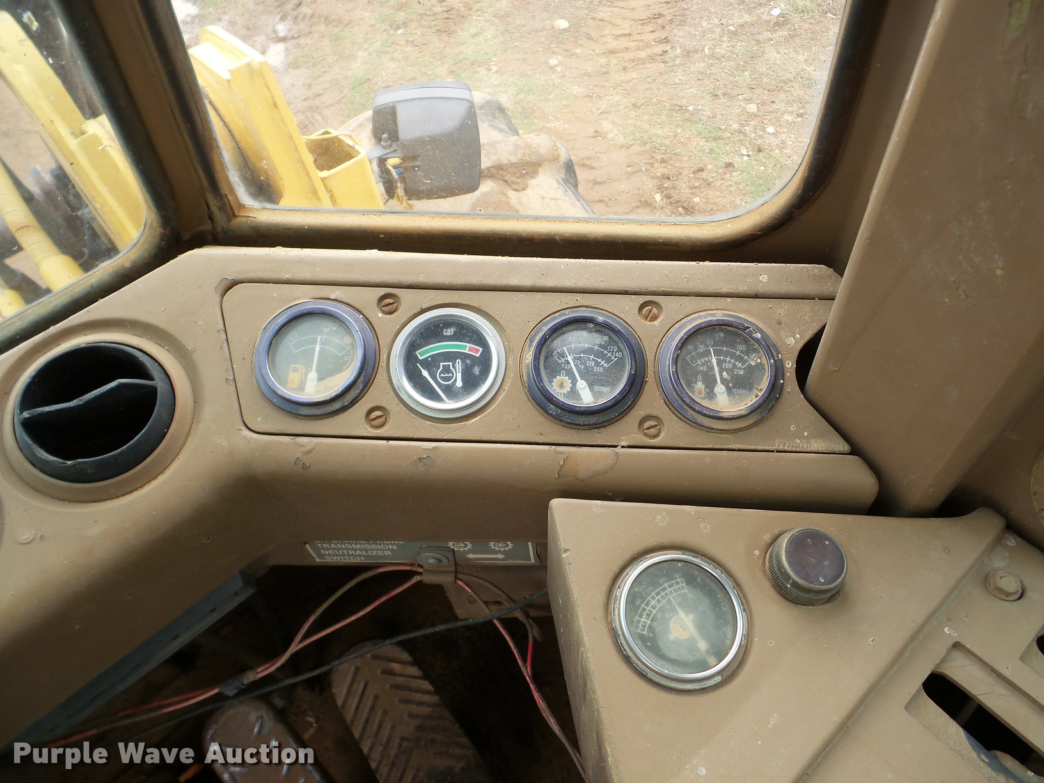 Purple Wave is selling a used Wheel Loader in Oklahoma. This item is a 1987 Caterpillar IT28B wheel loader with the following: 1,570 hours on meter, Actual hours unknown, Four cylinder turbo diesel engine, Powershift transmission, 4F-4R gears, ROPS, Two-lever bucket controls, Hydraulic quick coupler, 45"L pallet forks, Front auxiliary hydraulics, Counterweights, 23.1-26 tires, Glass broken, Hydraulic leak, Serial 1HF00639