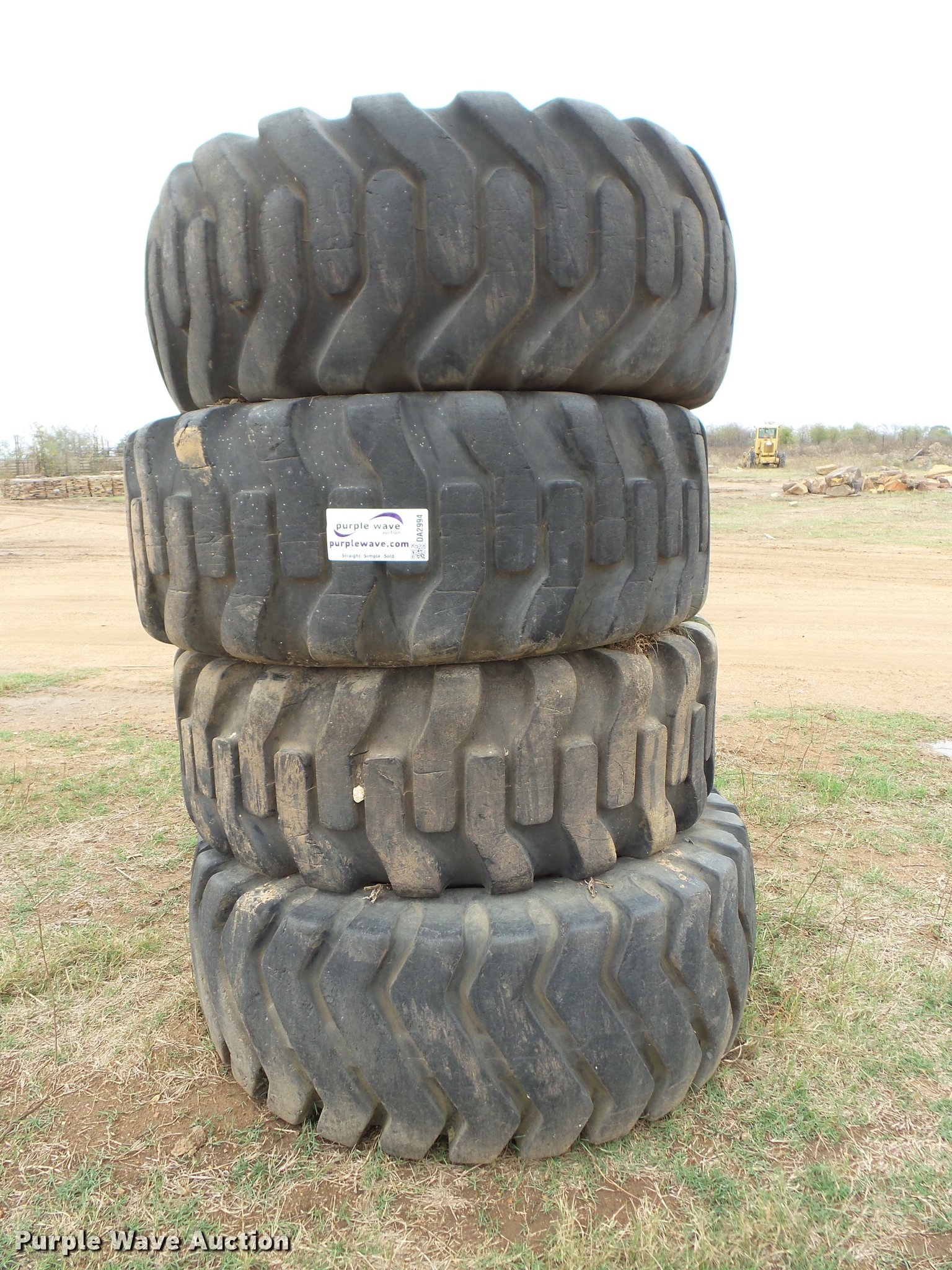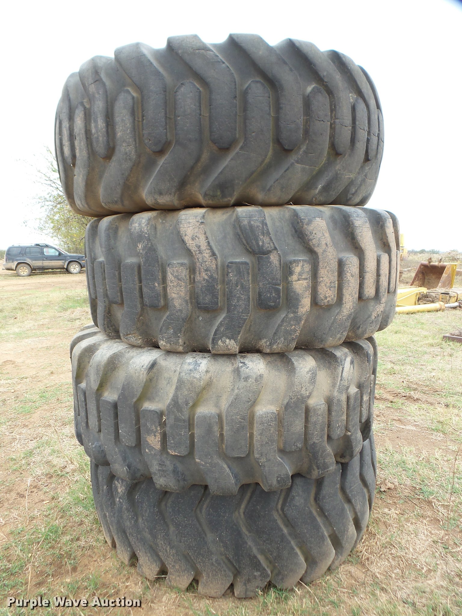 Purple Wave is selling a used Industrial Tires or Tracks in Oklahoma. This item is a (4) 23.5-25 tires with the following: (4) 23.5-25 tires. McGee Creek Rock & Stone. Lane, OK 74555