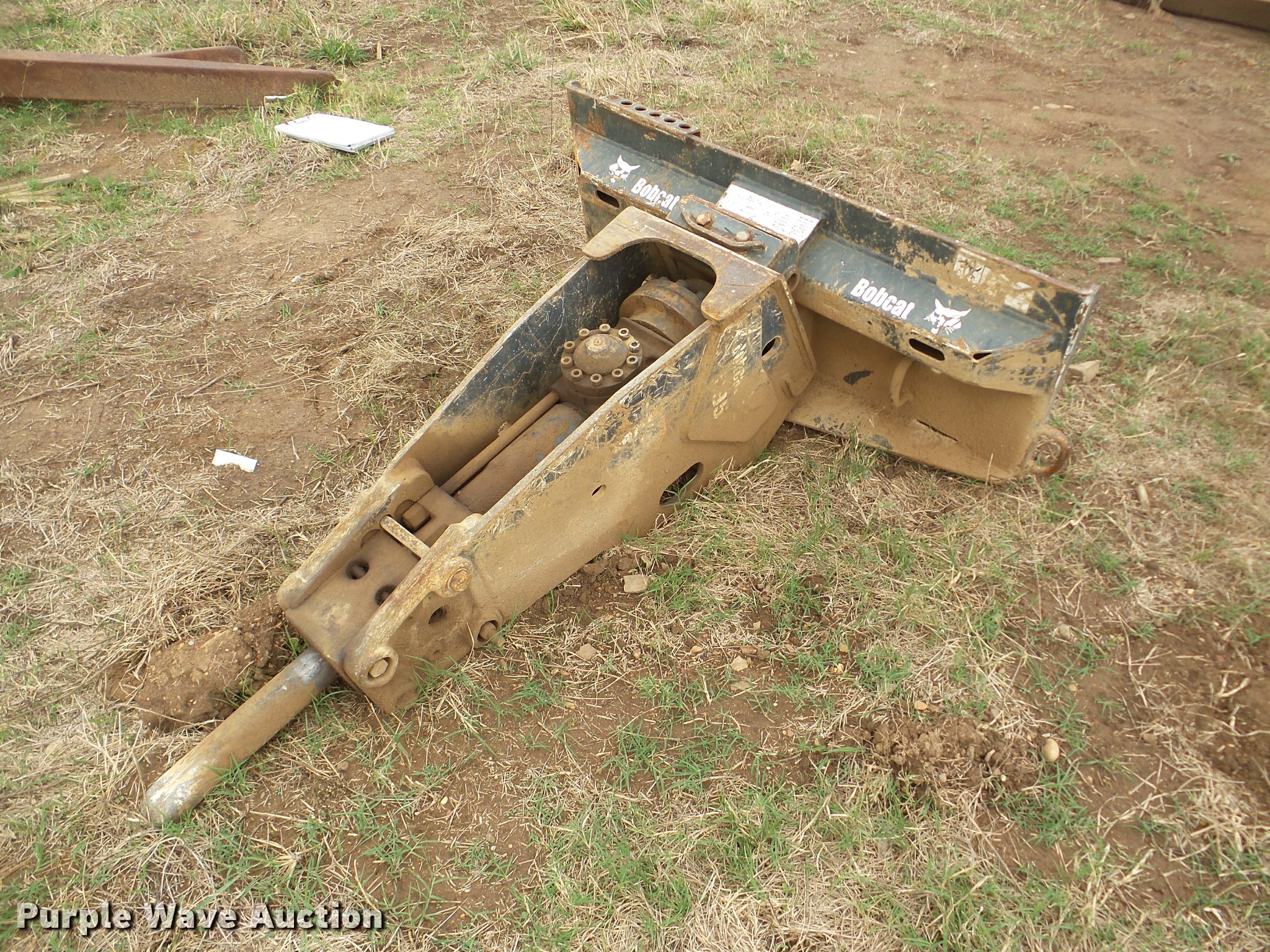 Purple Wave is selling a used Skid Steer Attach. in Oklahoma. This item is a Bobcat 950 breaker with the following: 2" bit, Hoses missing, Unknown operating condition