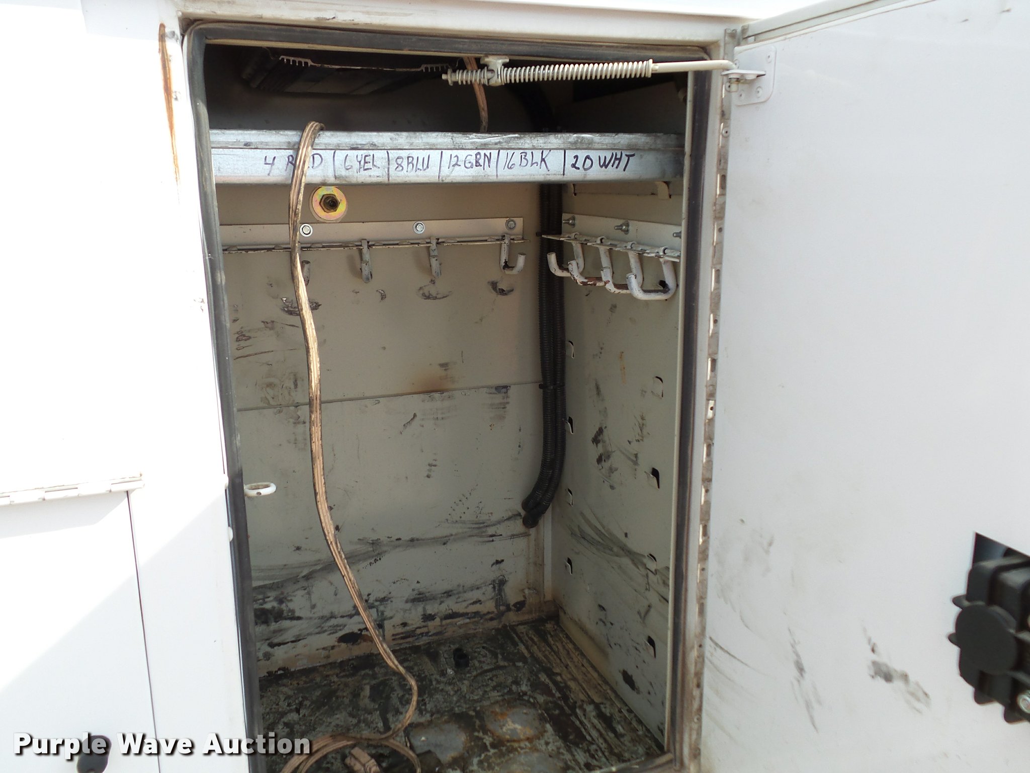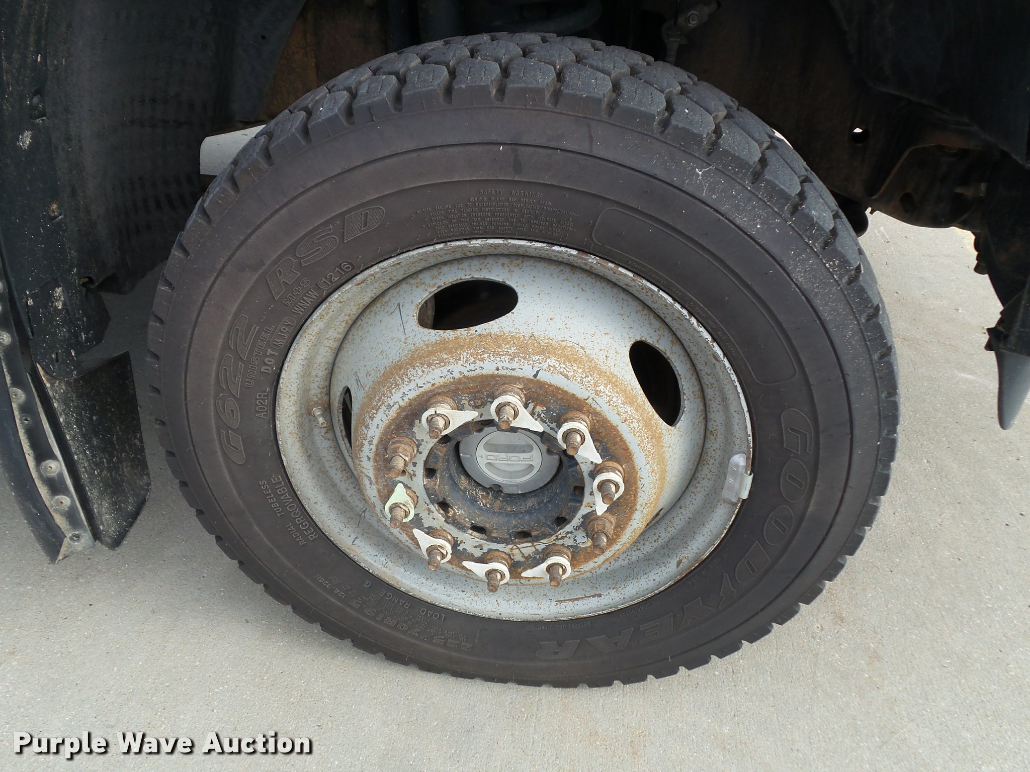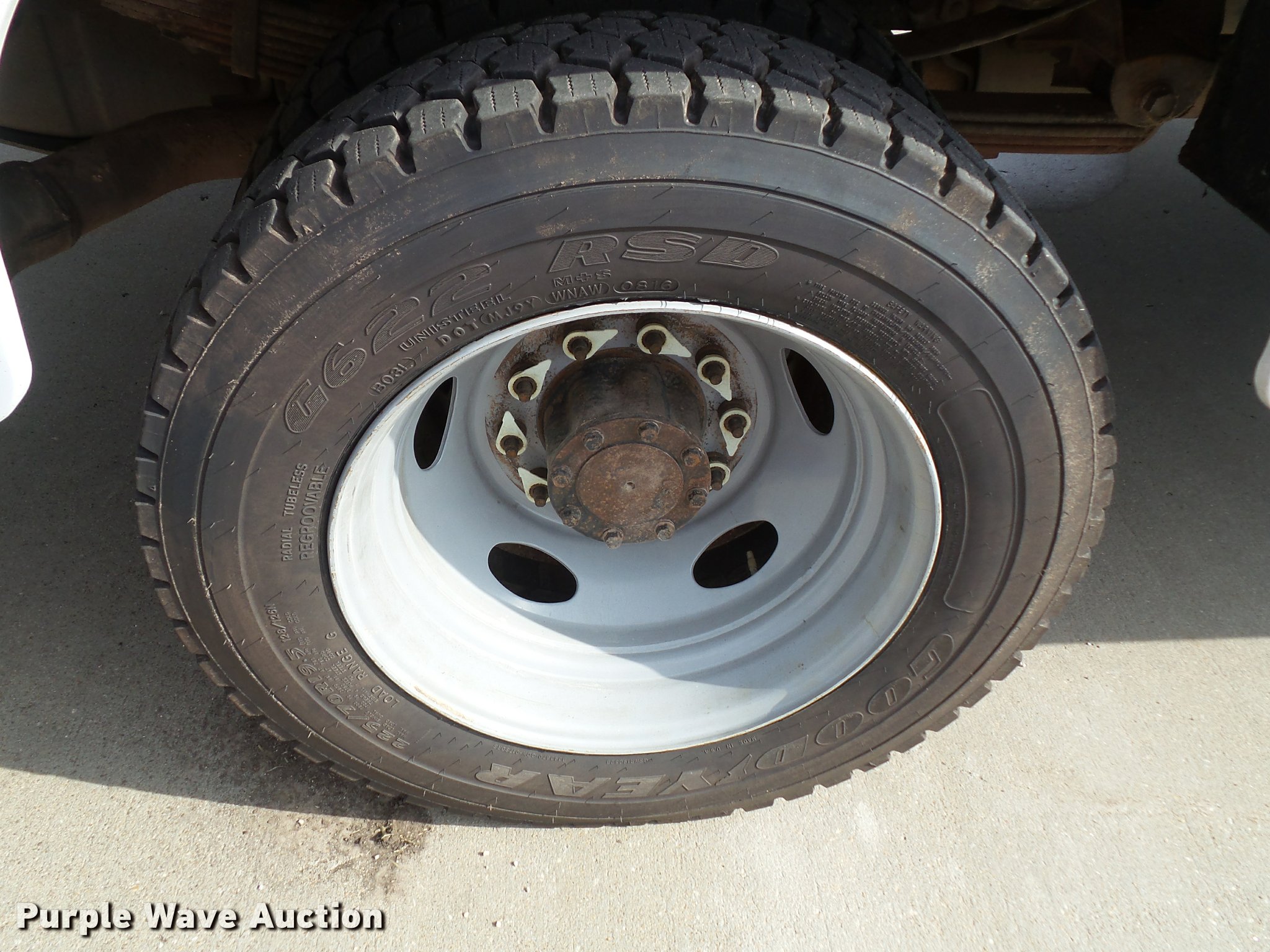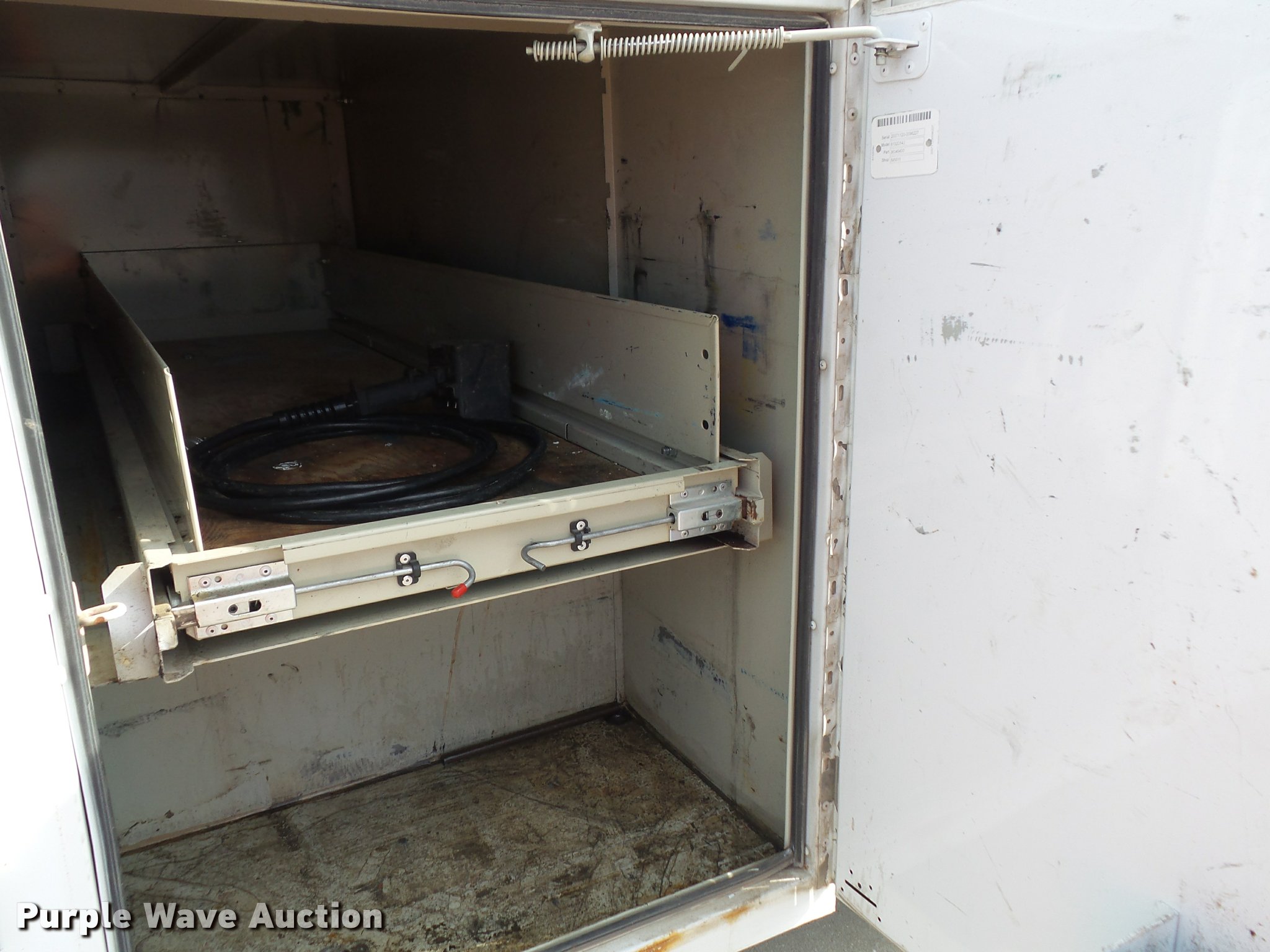 Purple Wave is selling a used Service Truck in Kansas. This item is a 2008 Ford F550 Super Duty XL service truck with crane with the following: 173,978 miles on odometer, 6.4L V8 OHV 32V turbo diesel engine, Automatic transmission, Four wheel drive, AC and heat, Tilt, Cruise, AM/FM/CD, Manual windows and locks, Vinyl interior, Knapheide 6132D54J utility bed, (8) compartments, Slide-out drawers, Rear stabilizer jack, Tommy lift end gate, Rusted, Exterior worklights, Strobe light, Light bar, Liftmoore 2700AR crane, 2,700 lbs maximum lift capacity, 75 degree maximum lift angle, Remote, Backup alarm, Running boards, Grill guard, Front tow hooks, Pintle hitch, Trailer wiring, 225/70R19.5 tires, GVWR 19,000 lbs, FAWR 7,000 lbs, RAWR 13,660 lbs, Hail damage, Windshield chipped, Unit# 1316