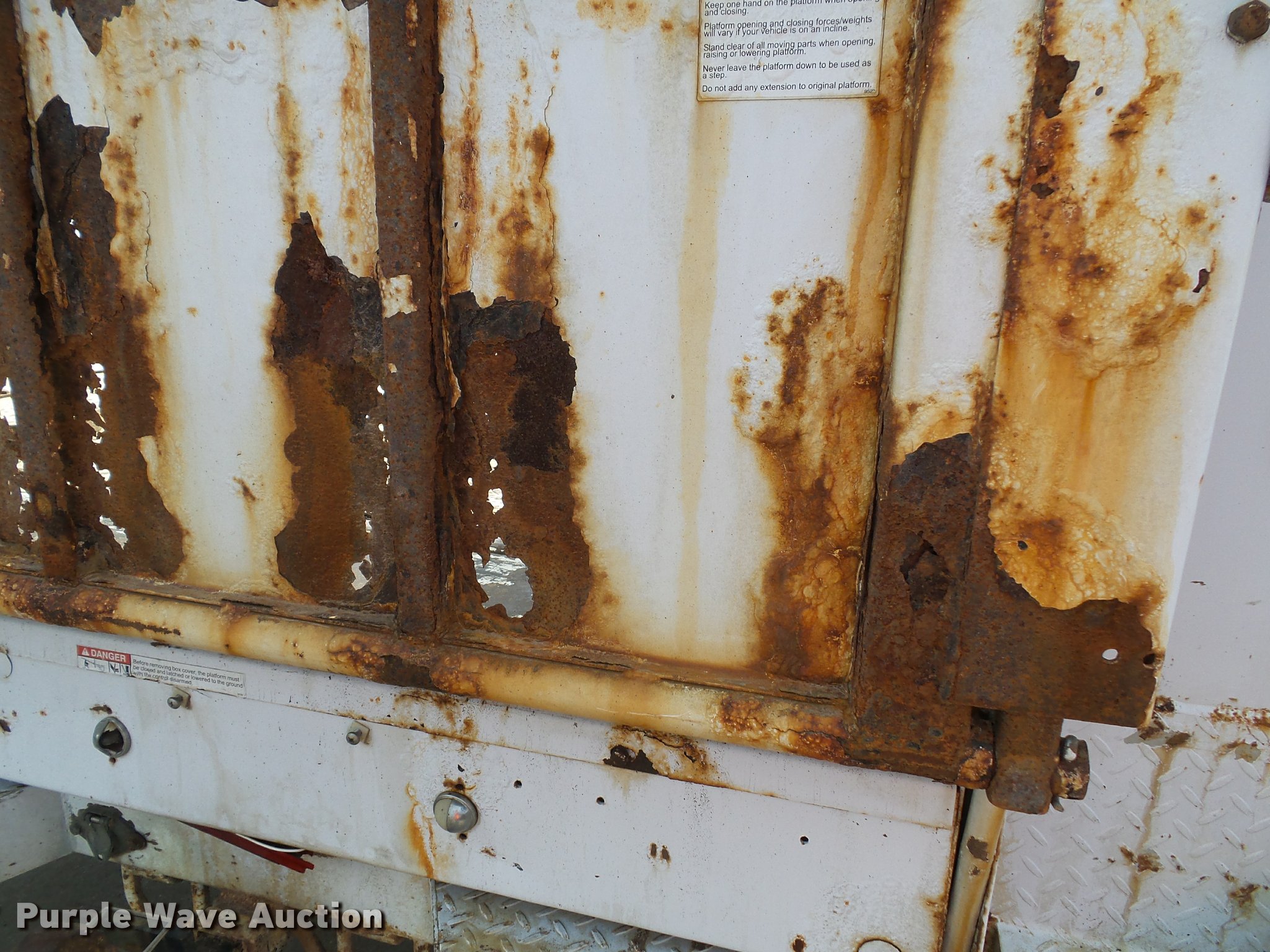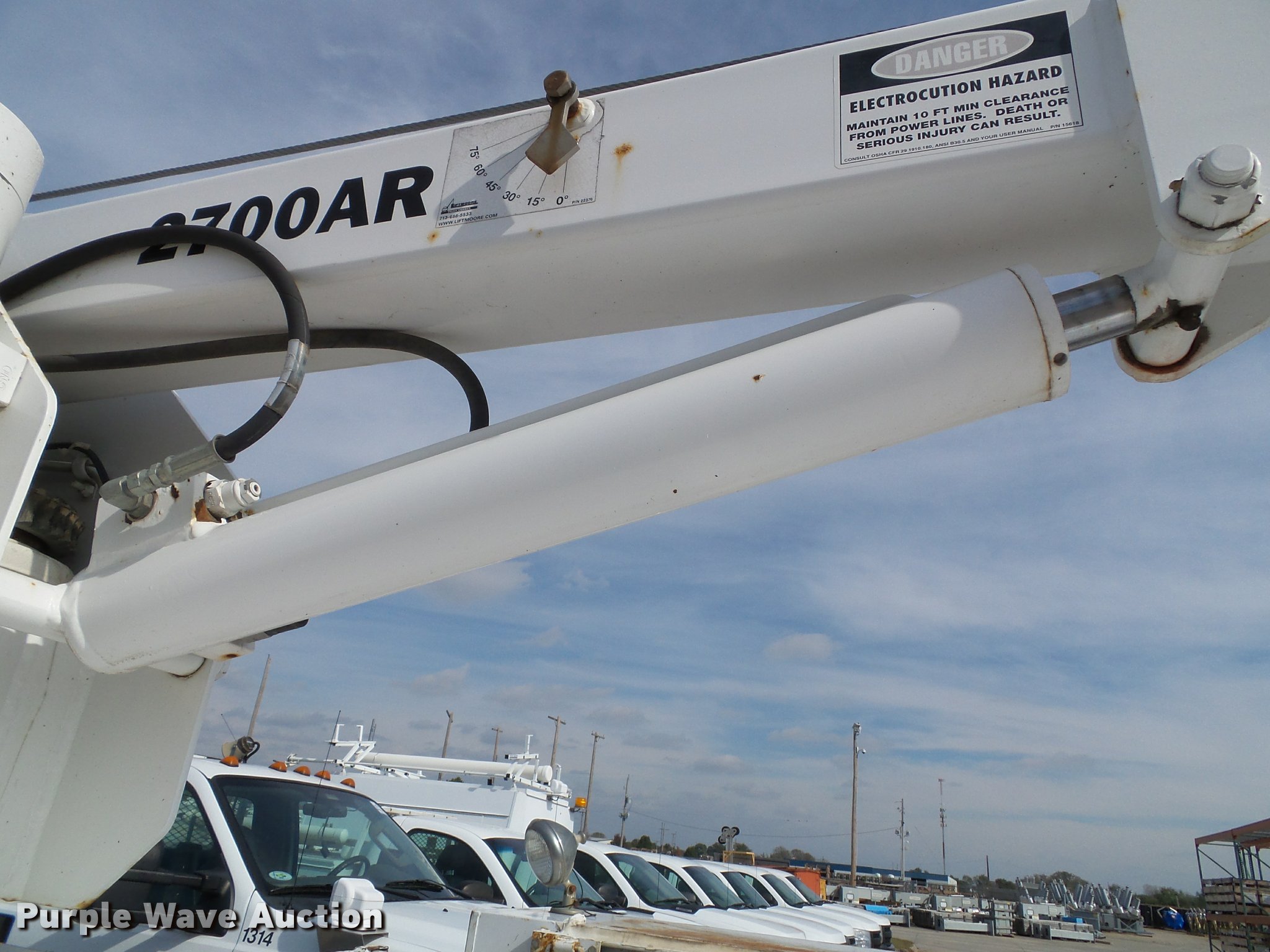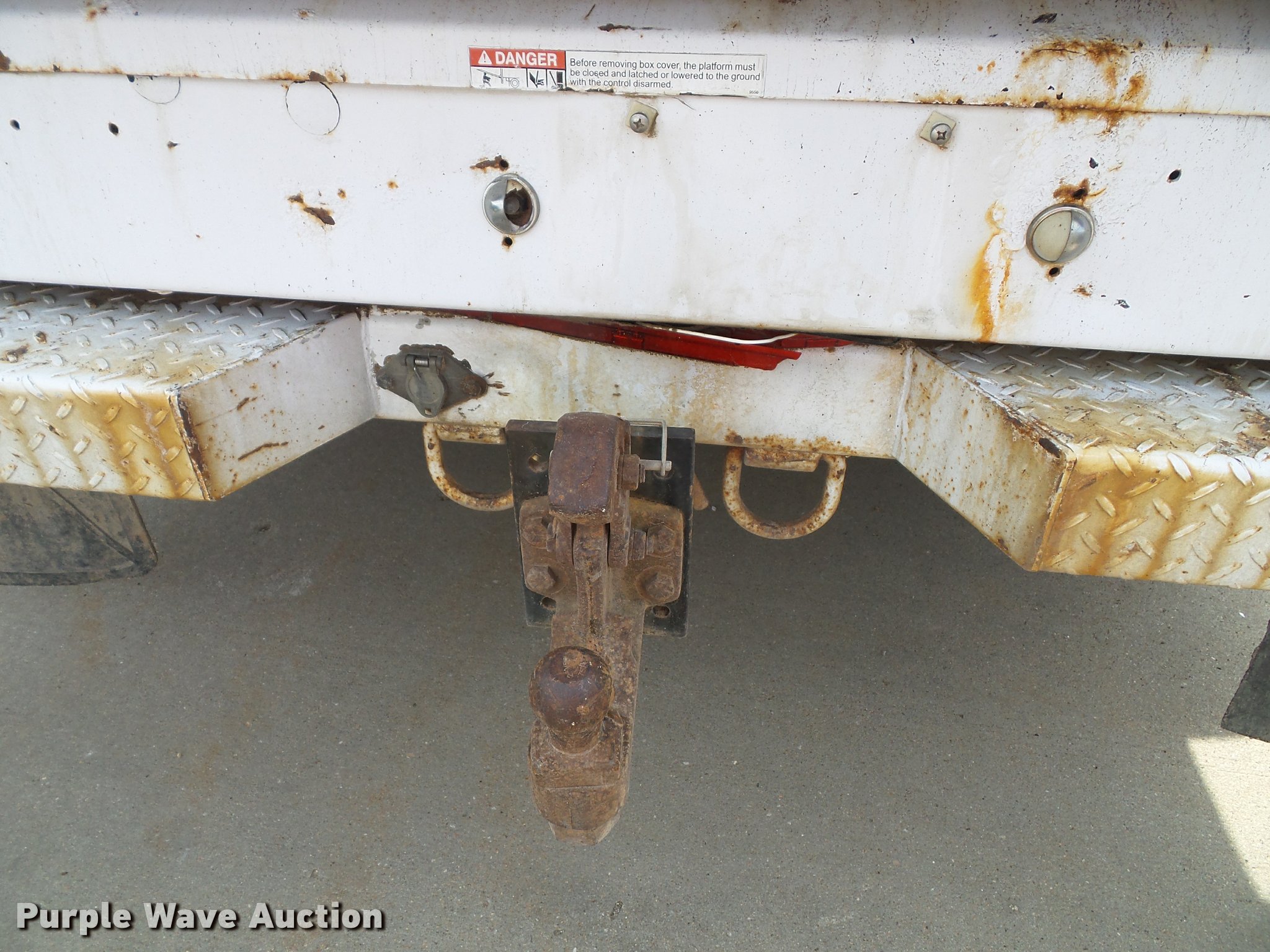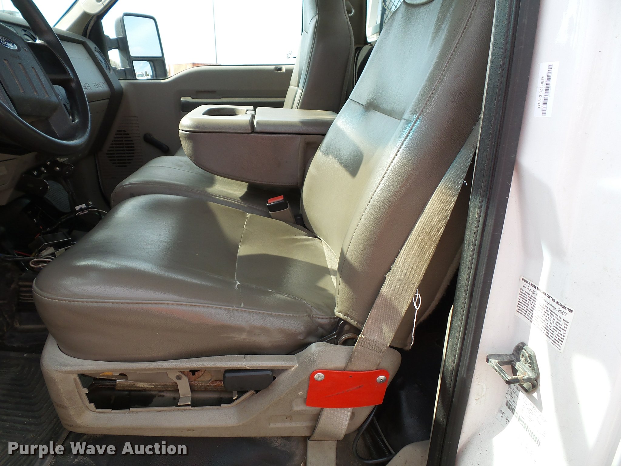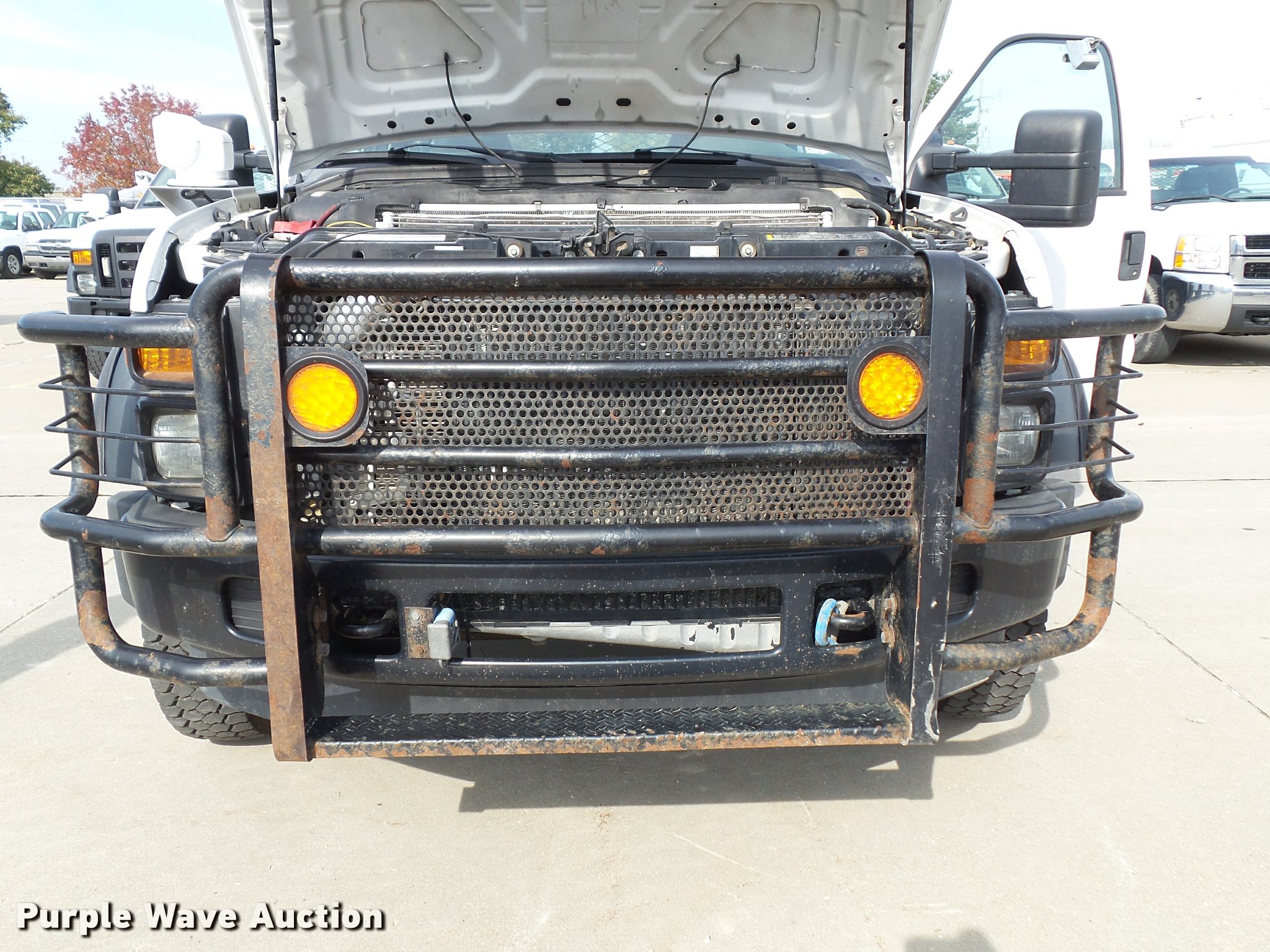 Purple Wave is selling a used Service Truck in Kansas. This item is a 2008 Ford F550 Super Duty XL service truck with crane with the following: 173,978 miles on odometer, 6.4L V8 OHV 32V turbo diesel engine, Automatic transmission, Four wheel drive, AC and heat, Tilt, Cruise, AM/FM/CD, Manual windows and locks, Vinyl interior, Knapheide 6132D54J utility bed, (8) compartments, Slide-out drawers, Rear stabilizer jack, Tommy lift end gate, Rusted, Exterior worklights, Strobe light, Light bar, Liftmoore 2700AR crane, 2,700 lbs maximum lift capacity, 75 degree maximum lift angle, Remote, Backup alarm, Running boards, Grill guard, Front tow hooks, Pintle hitch, Trailer wiring, 225/70R19.5 tires, GVWR 19,000 lbs, FAWR 7,000 lbs, RAWR 13,660 lbs, Hail damage, Windshield chipped, Unit# 1316