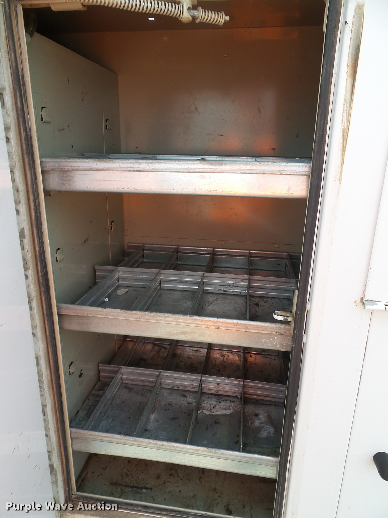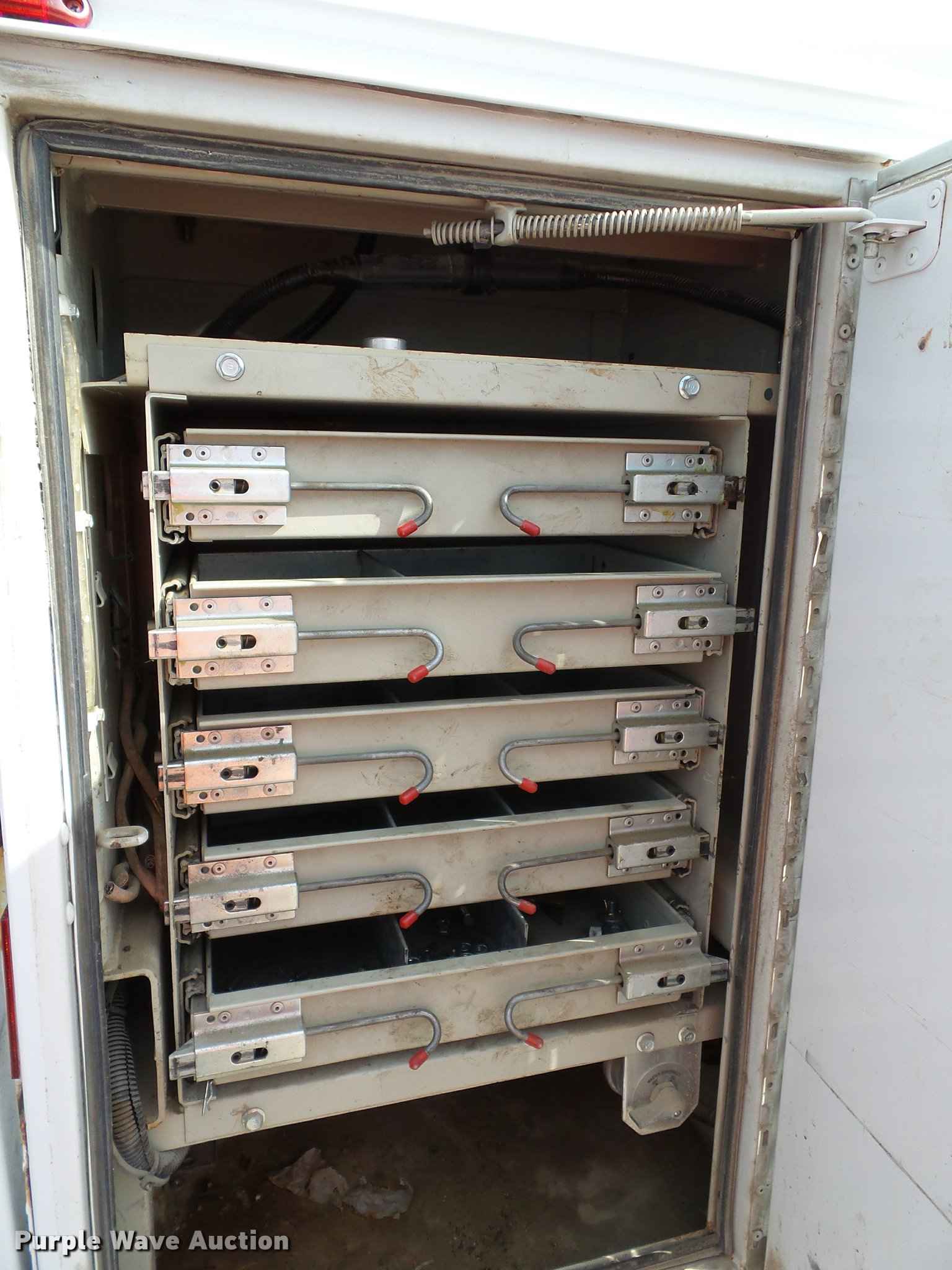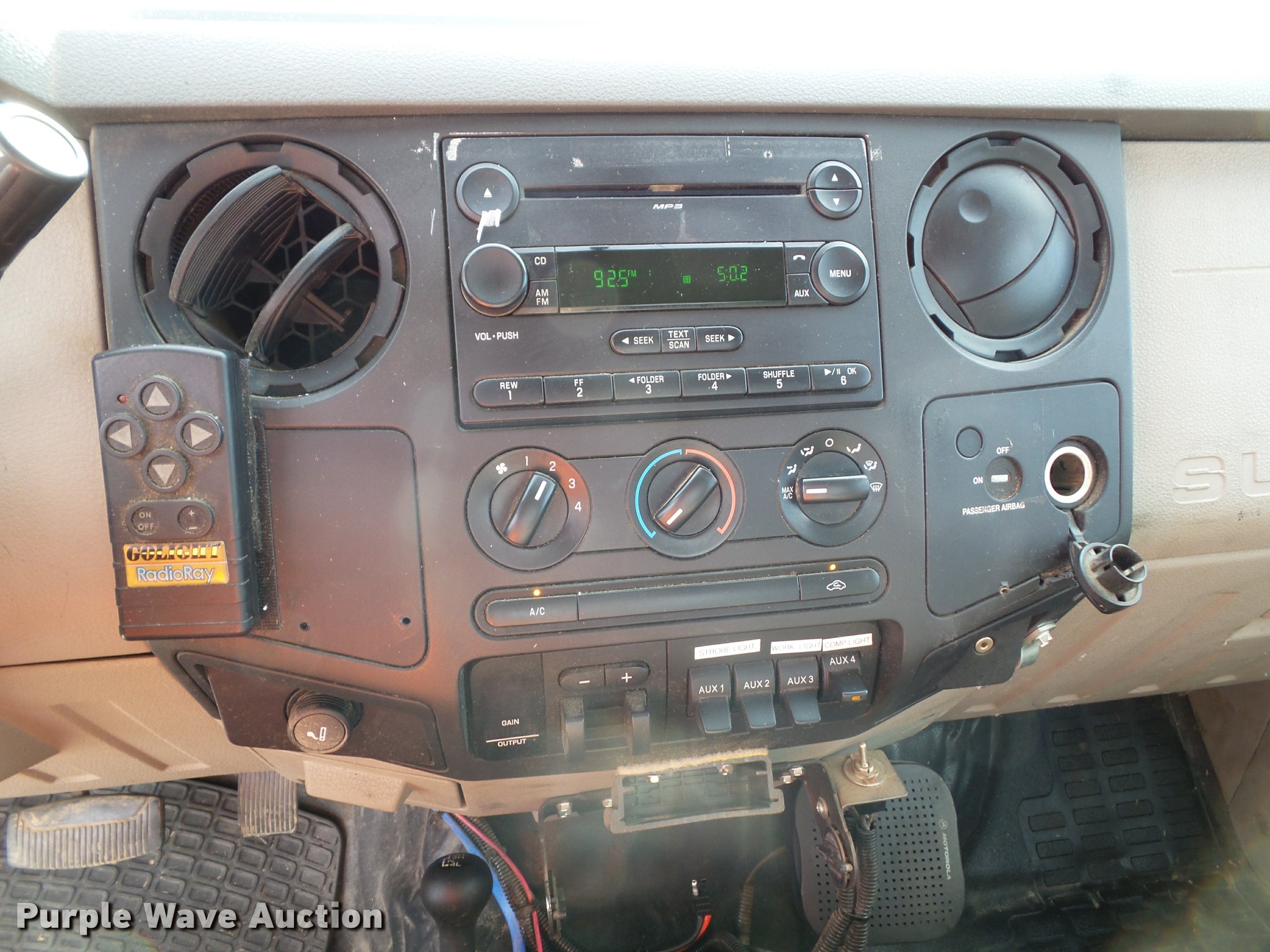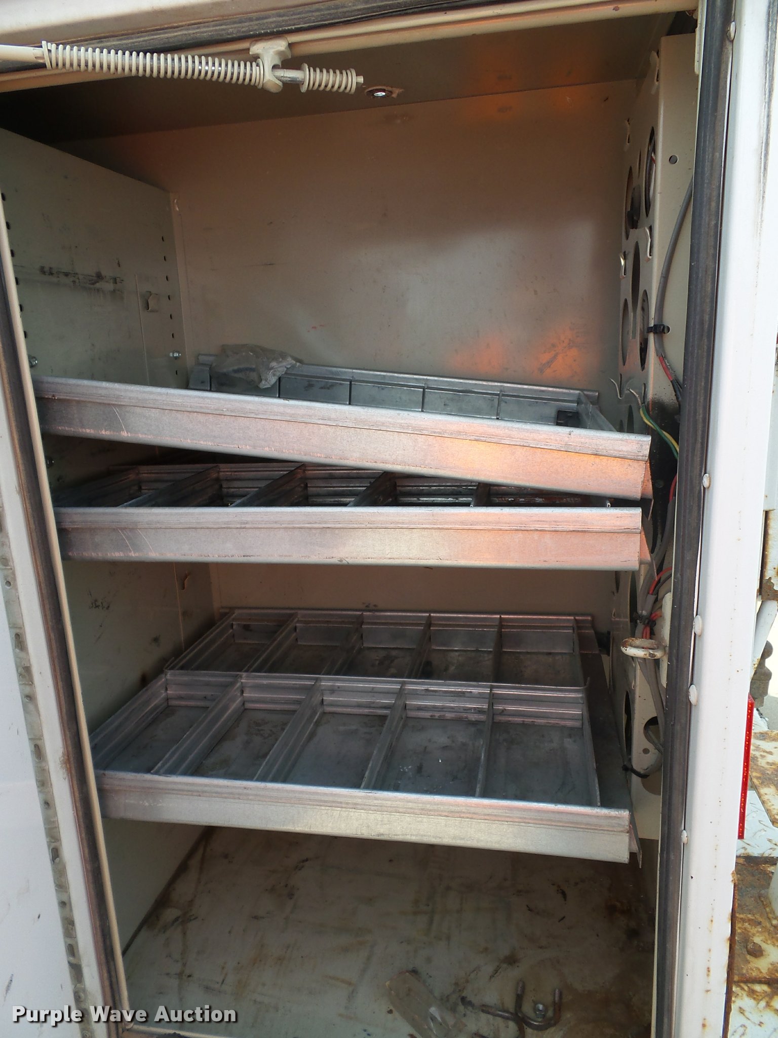 Purple Wave is selling a used Service Truck in Kansas. This item is a 2008 Ford F550 Super Duty XL service truck with crane with the following: 173,978 miles on odometer, 6.4L V8 OHV 32V turbo diesel engine, Automatic transmission, Four wheel drive, AC and heat, Tilt, Cruise, AM/FM/CD, Manual windows and locks, Vinyl interior, Knapheide 6132D54J utility bed, (8) compartments, Slide-out drawers, Rear stabilizer jack, Tommy lift end gate, Rusted, Exterior worklights, Strobe light, Light bar, Liftmoore 2700AR crane, 2,700 lbs maximum lift capacity, 75 degree maximum lift angle, Remote, Backup alarm, Running boards, Grill guard, Front tow hooks, Pintle hitch, Trailer wiring, 225/70R19.5 tires, GVWR 19,000 lbs, FAWR 7,000 lbs, RAWR 13,660 lbs, Hail damage, Windshield chipped, Unit# 1316