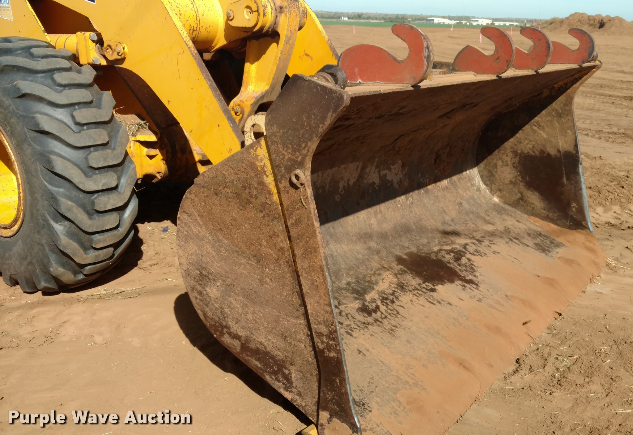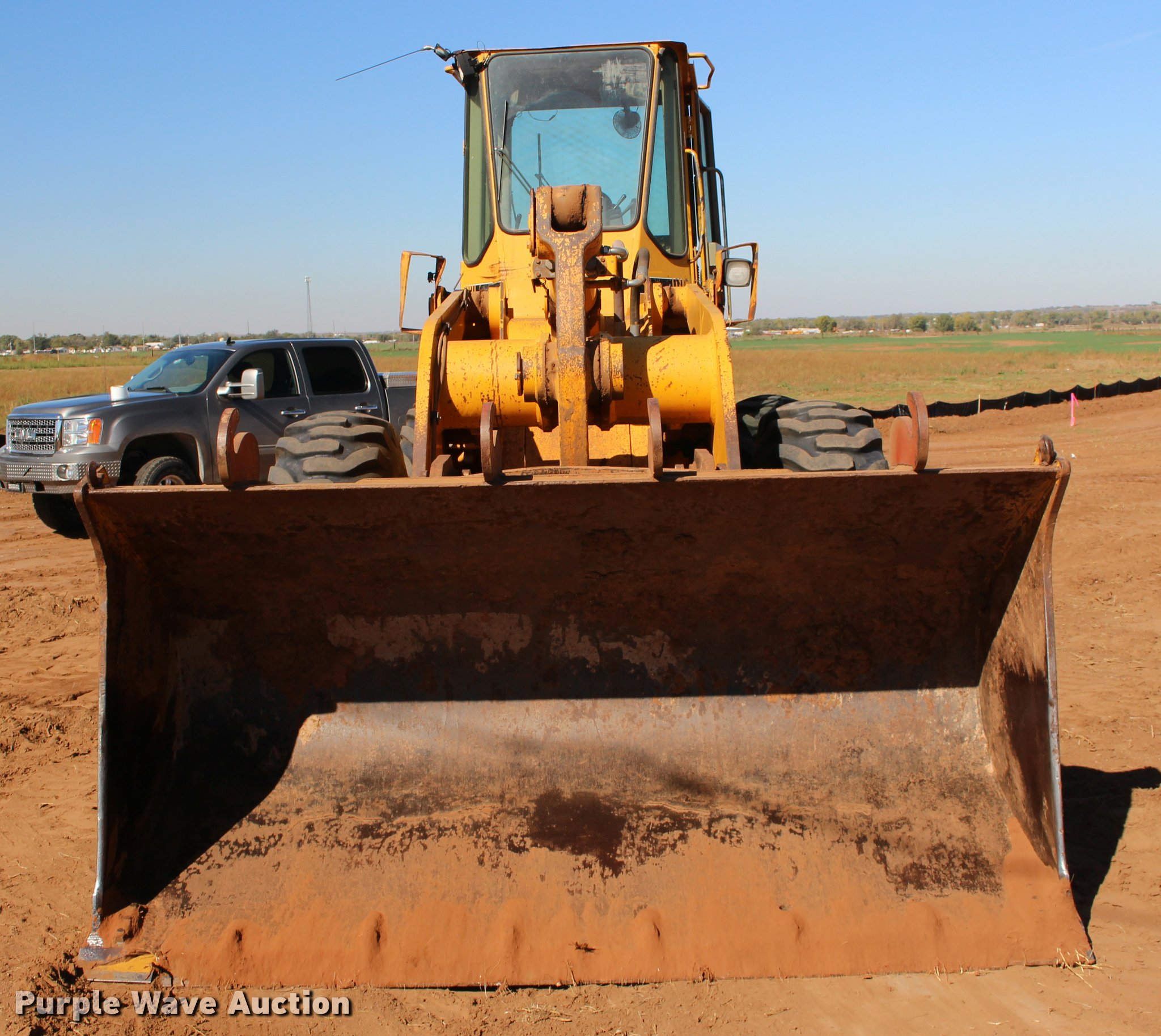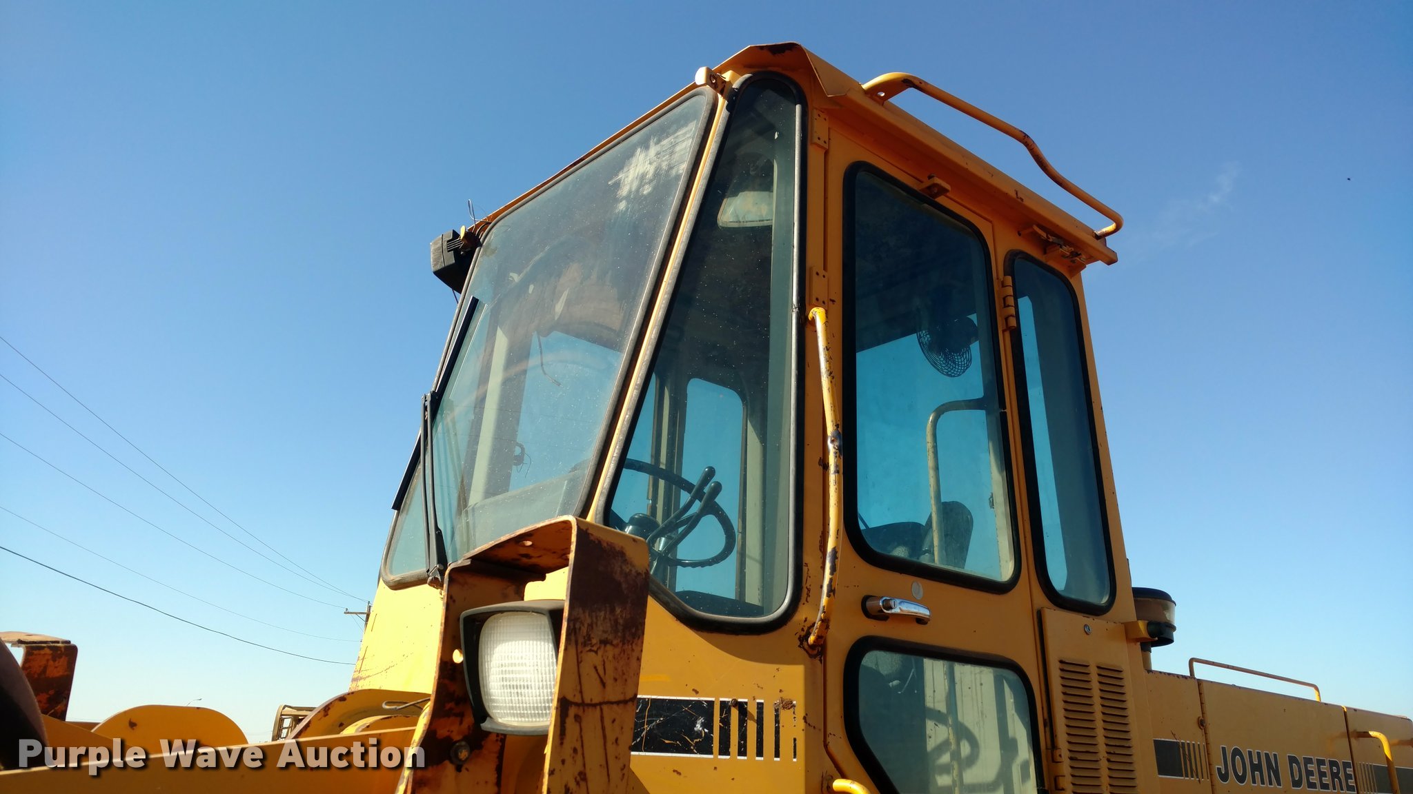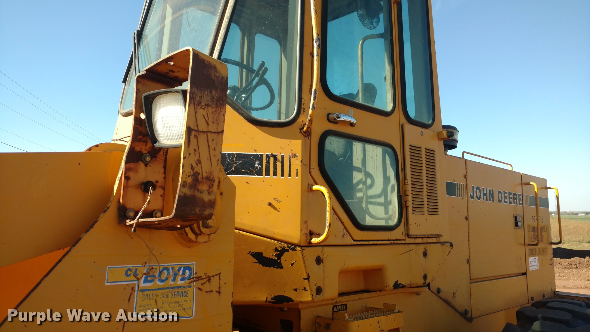 Purple Wave is selling a used Wheel Loader in Oklahoma. This item is a 1988 John Deere 644E wheel loader with the following: 7,325 hours on meter, John Deere six cylinder turbo diesel engine, Powershift transmission, 4F-3R gears, EROPS, Tilt steering wheel, Suspension seat, Joystick bucket controls, 110"W general purpose bucket, 3/4 cu. yd. capacity, JRB hydraulic quick coupler, Counterweights, 20.5-25 tires, Serial DW644EB519730