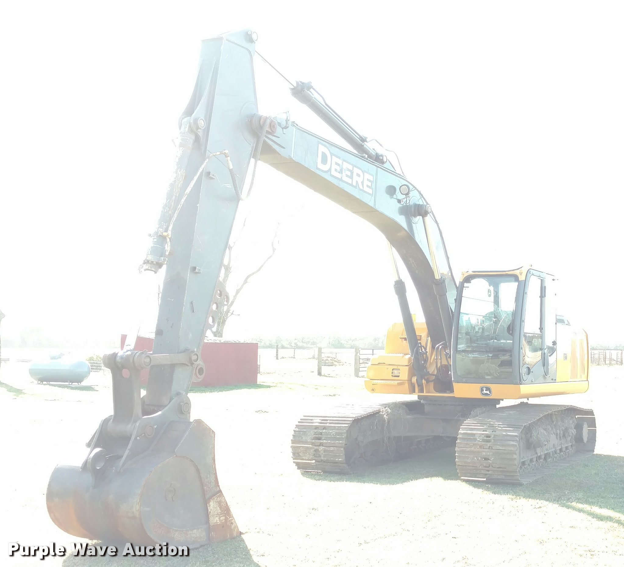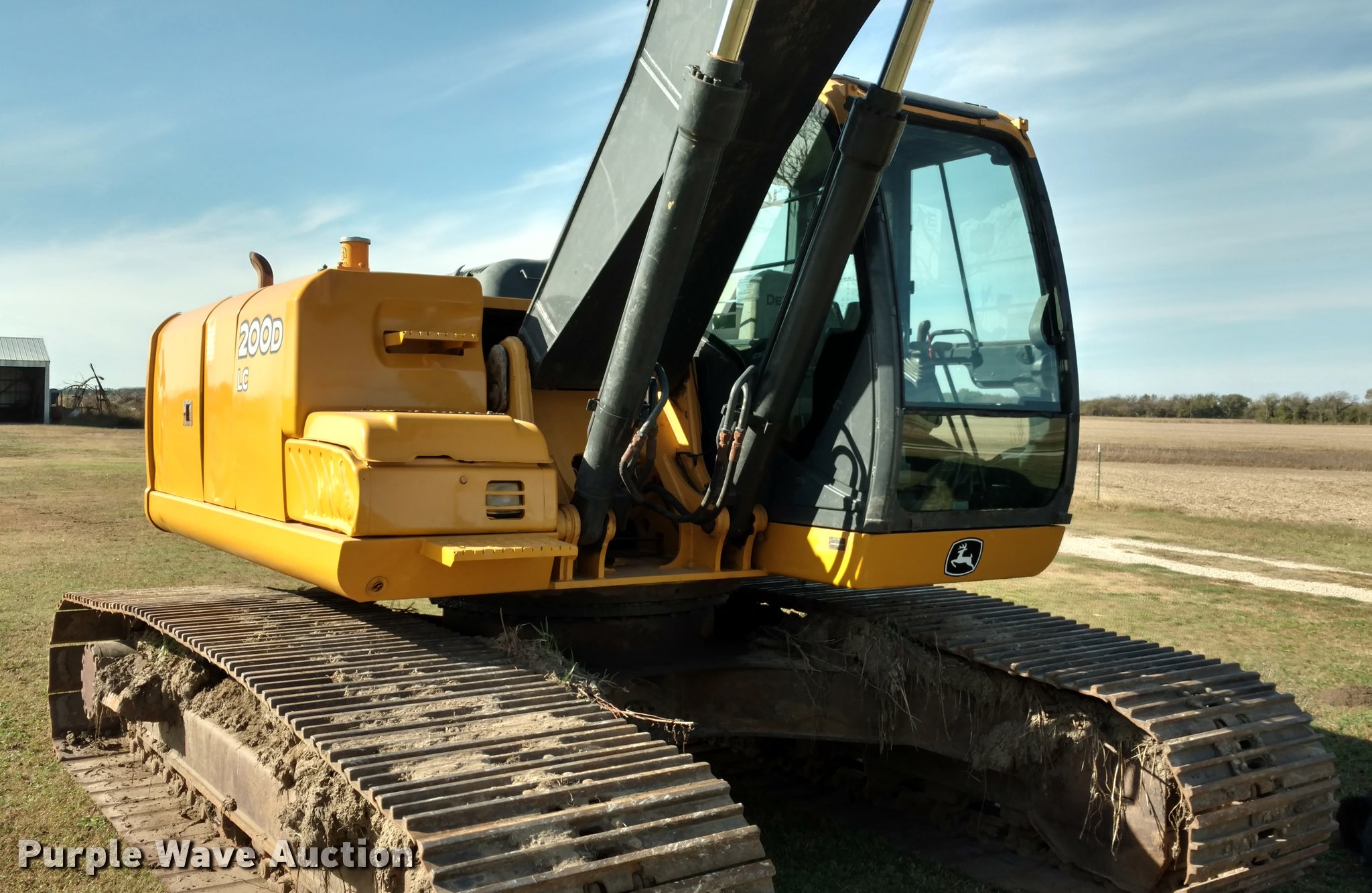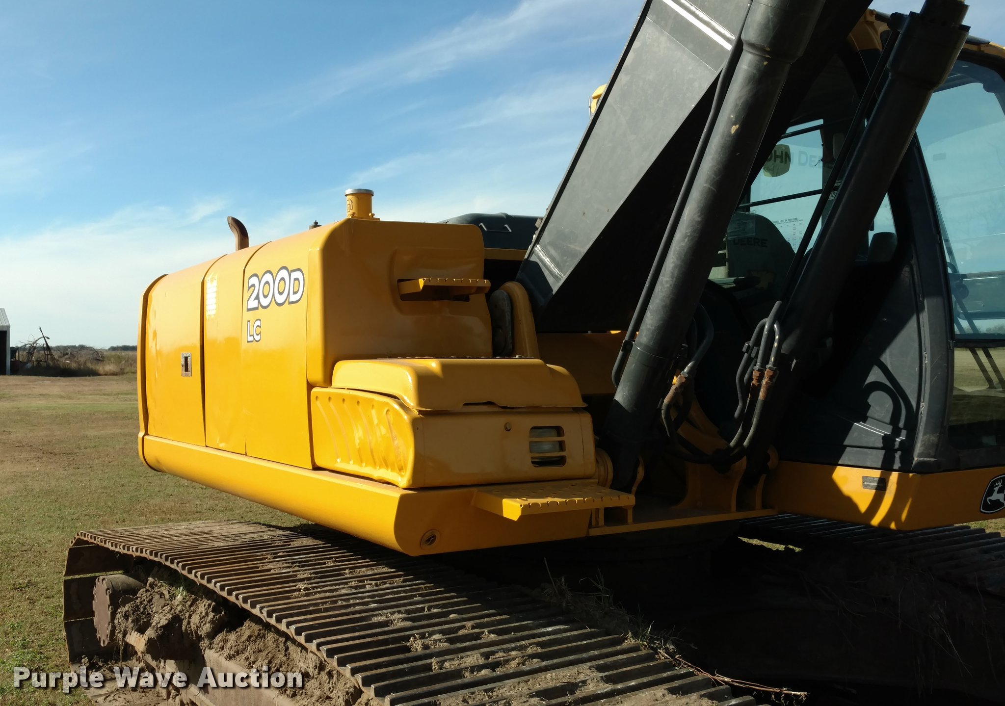 Purple Wave is selling a used Hydraulic Excavator in Kansas. This item is a 2008 John Deere 200D LC excavator with the following: 5,887 hours on meter, John Deere six cylinder diesel engine, Two speed hydrostatic transmission, EROPS, AC and heat, AM/FM, Air suspension seat, Pattern changer, Wipers, Front work lights, Standard boom, John Deere 42"W bucket, (5) teeth, 1.4 cu. yd. capacity, 32"W steel tracks, Serial FF200DX511340