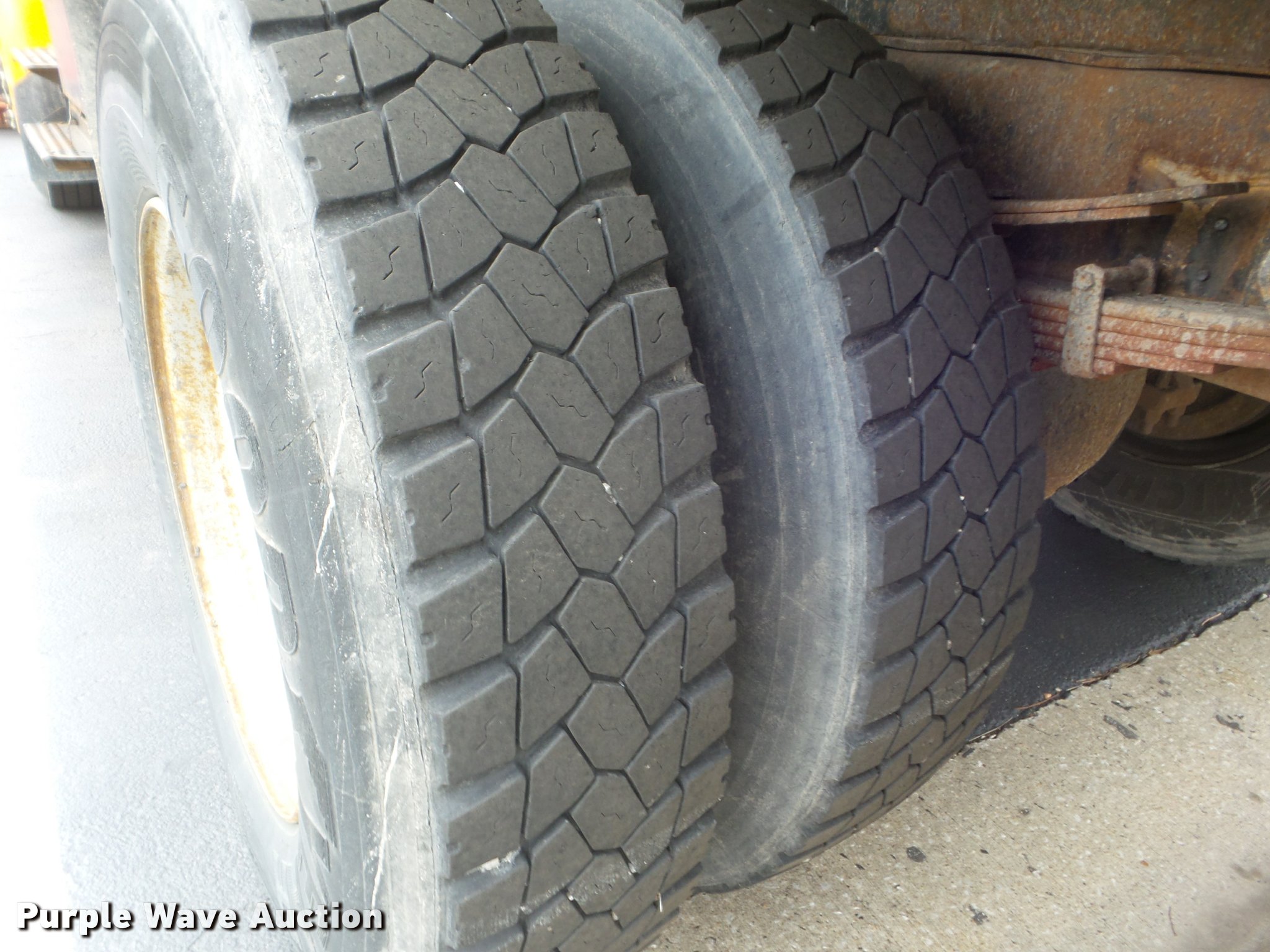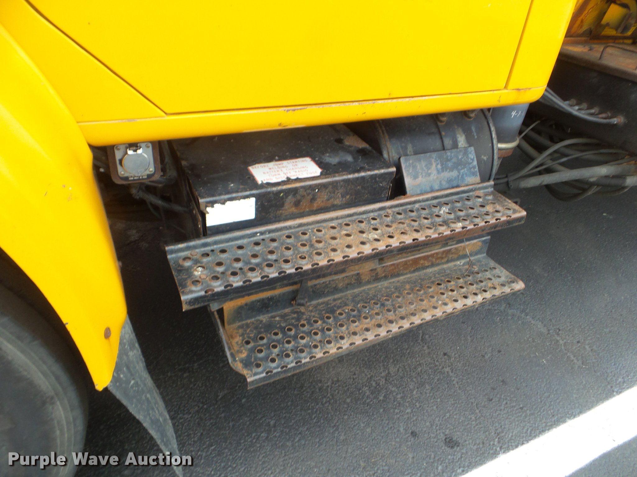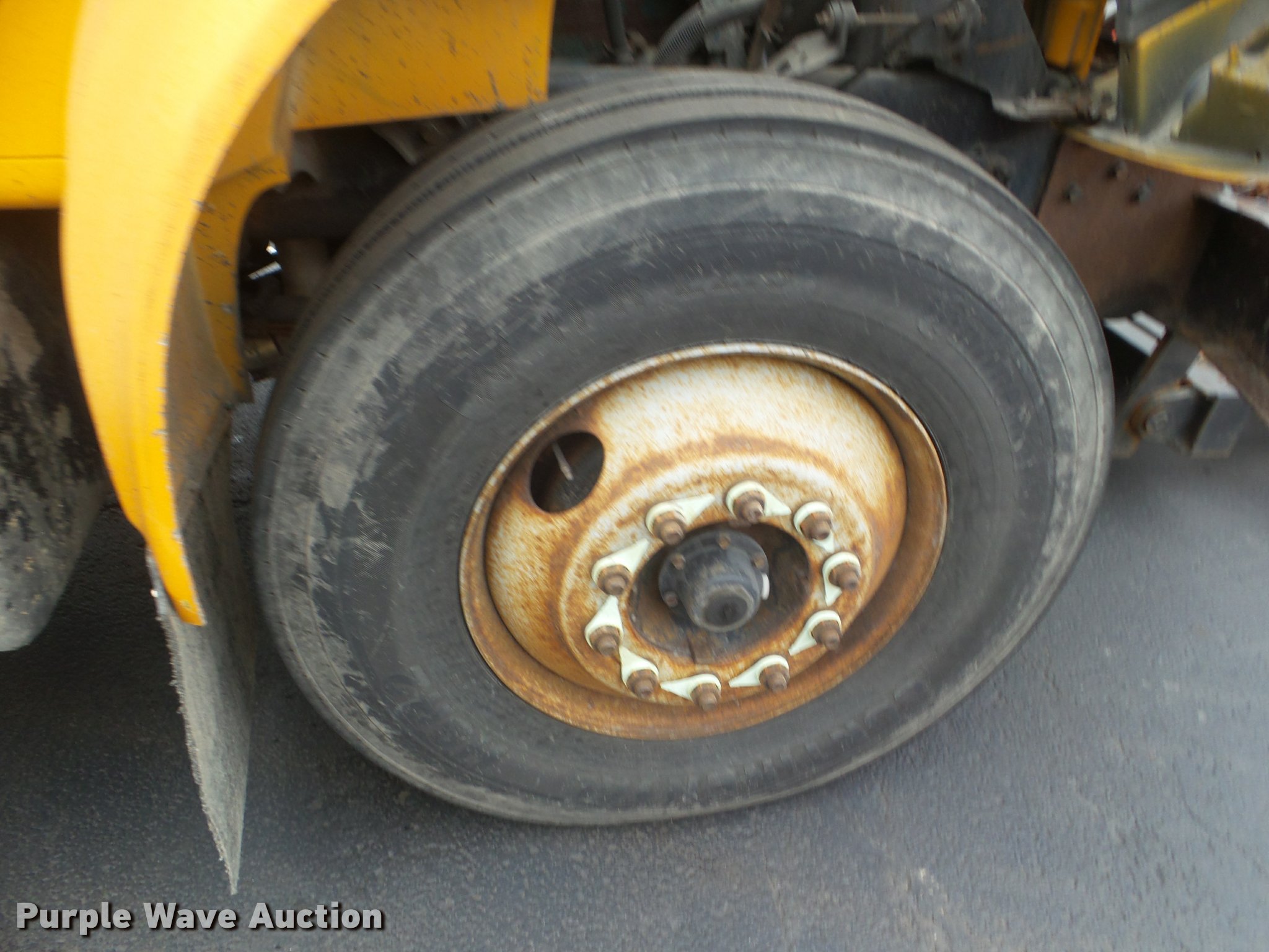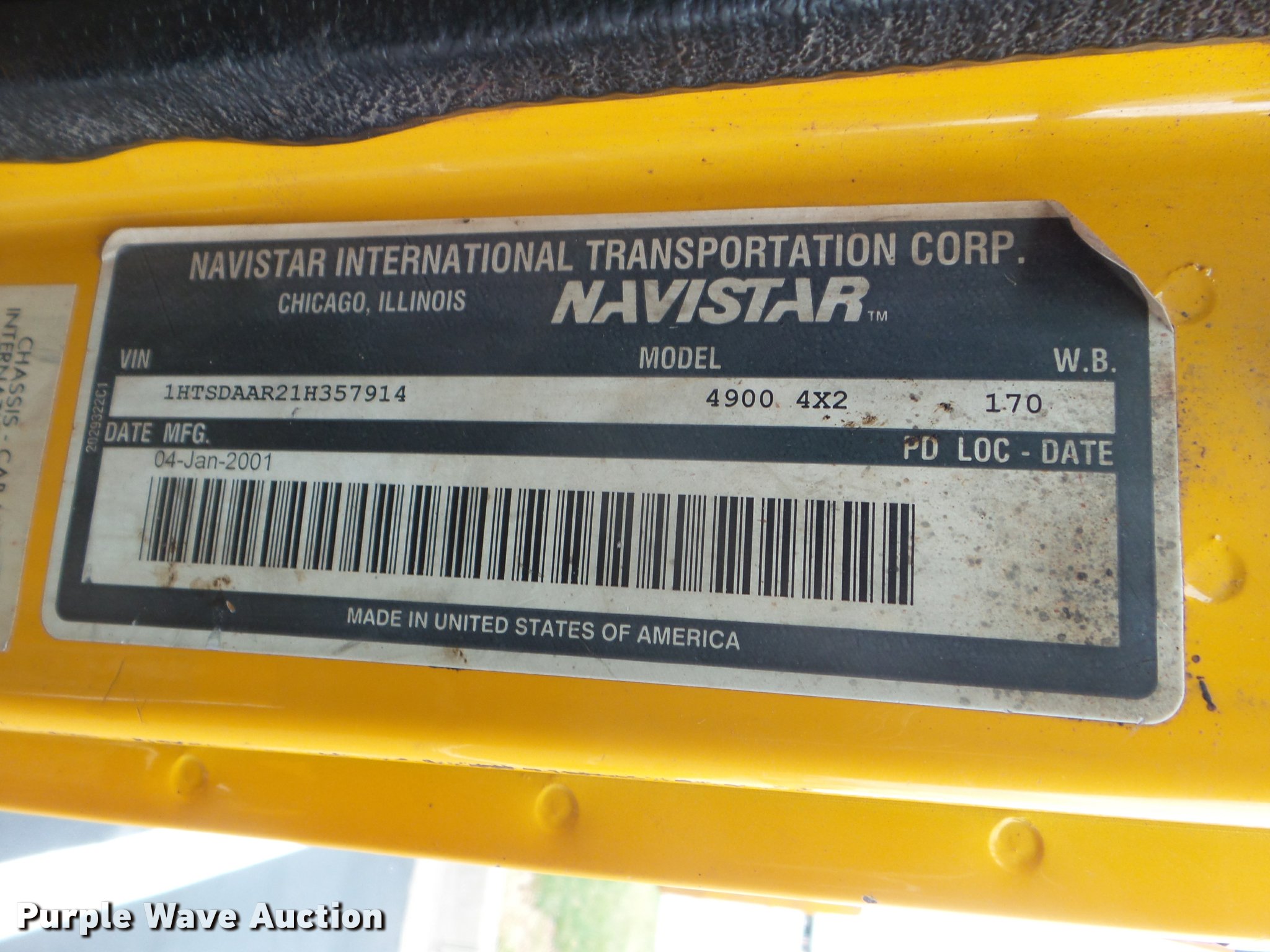 Purple Wave is selling a used Construction Dump Truck in Missouri. This item is a 2001 International 4900 dump truck with the following: 173,576 miles on odometer, Actual mileage unknown, 10,290 hours on meter, International DT466 7.6L L6 turbo diesel engine, Automatic transmission, Single axle, Heat, Cruise, AM/FM, Heated mirrors, Air suspension seat, Block heater, PTO, Steel dump bed, 10'L x 8'W, 24" side height, Single ram hoist, Air operated end gate, Roll tarp, Flink spreader, 14'W snow plow, Wing plow mounting bracket, Single fuel tank, Pintle hitch, Trailer wiring, 170" wheel base, Spring suspension, Air brakes, 11R22.5 tires, Hydraulic pump leaks, Rust hole in muffler, Engine leak, CB radio is not included, MODOT ID 6414