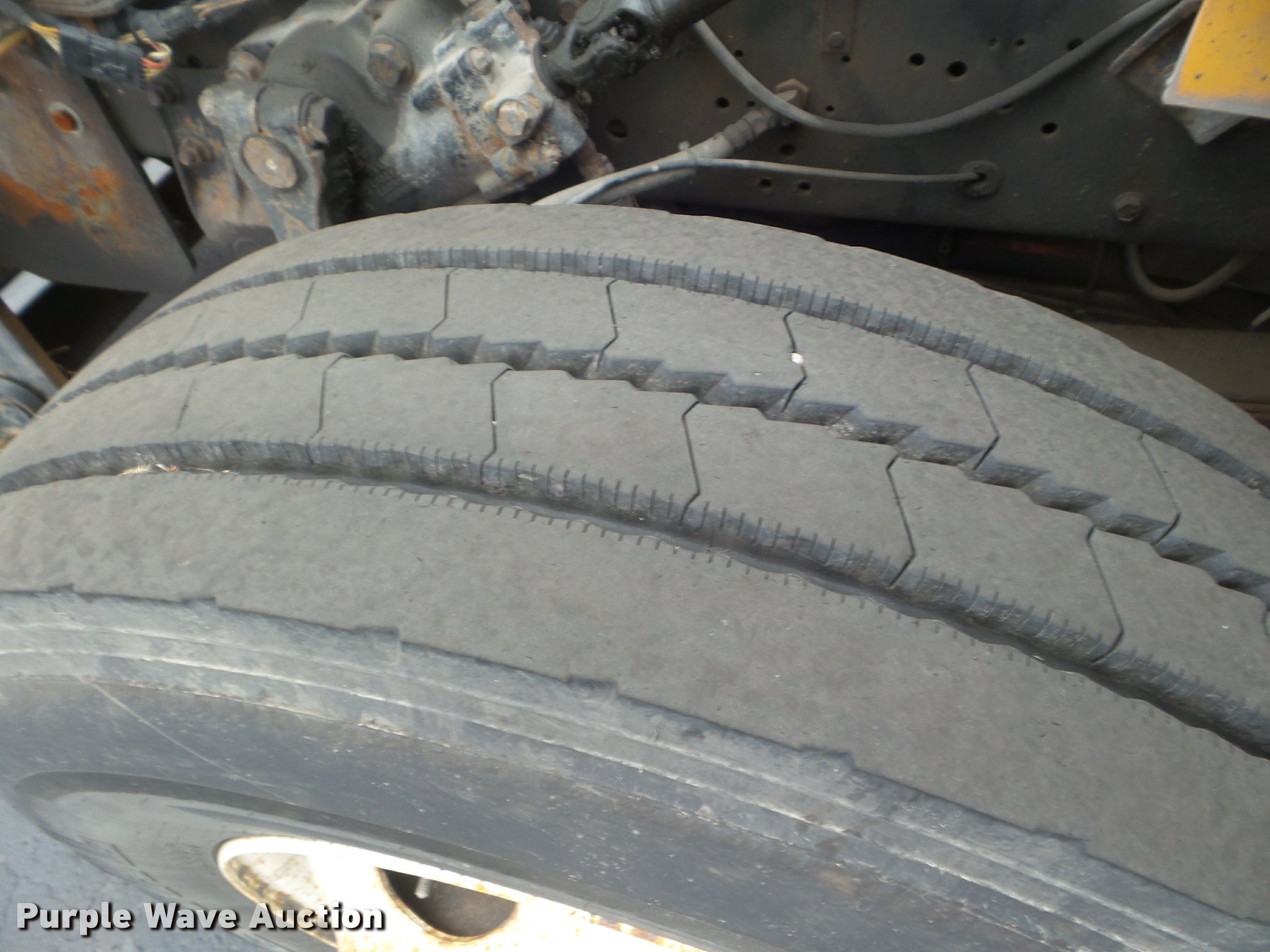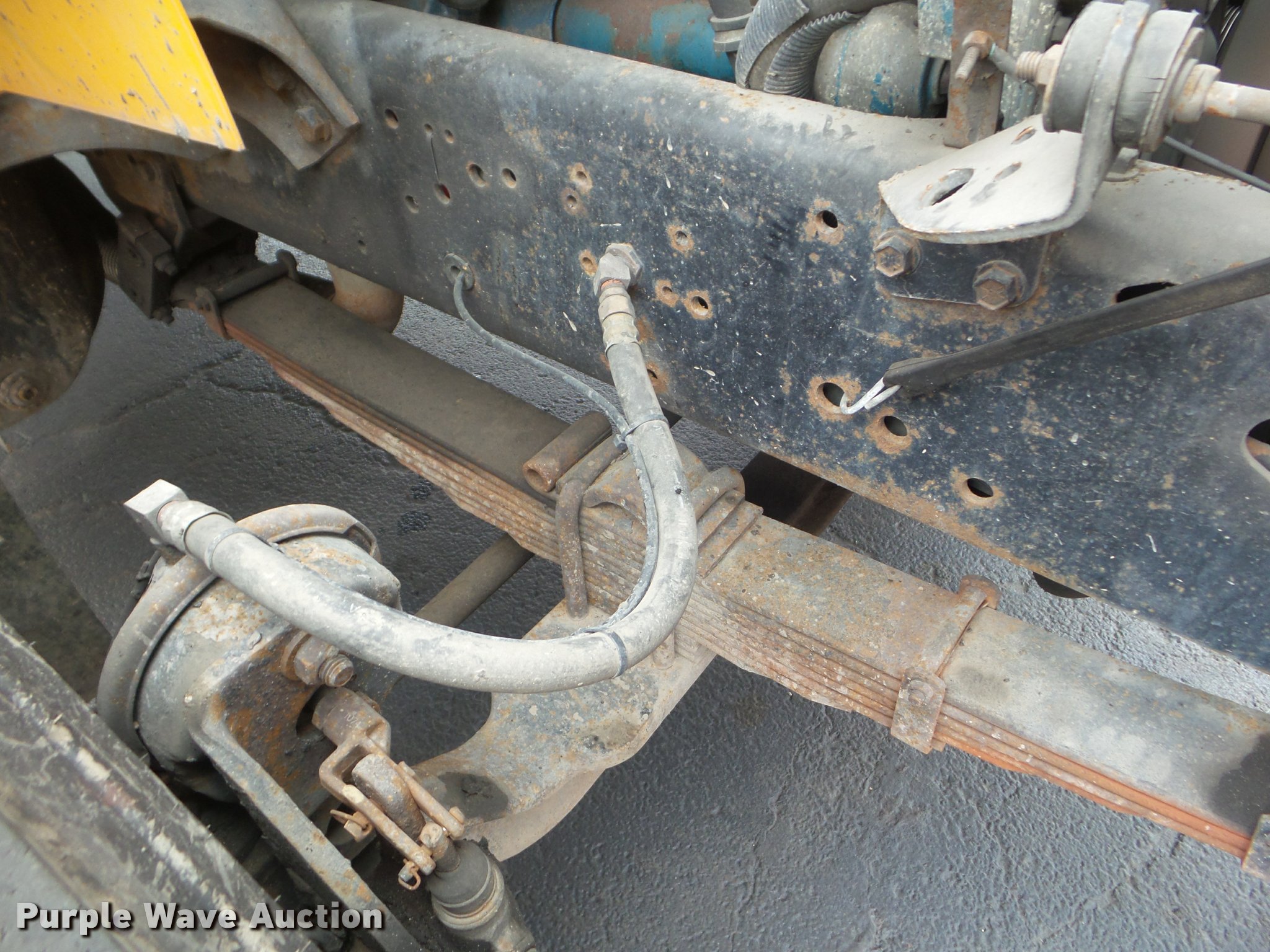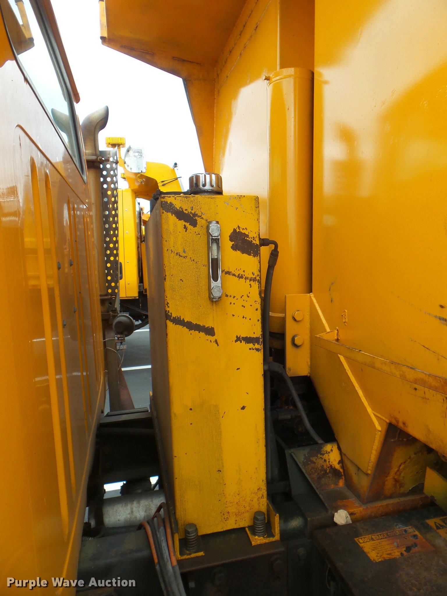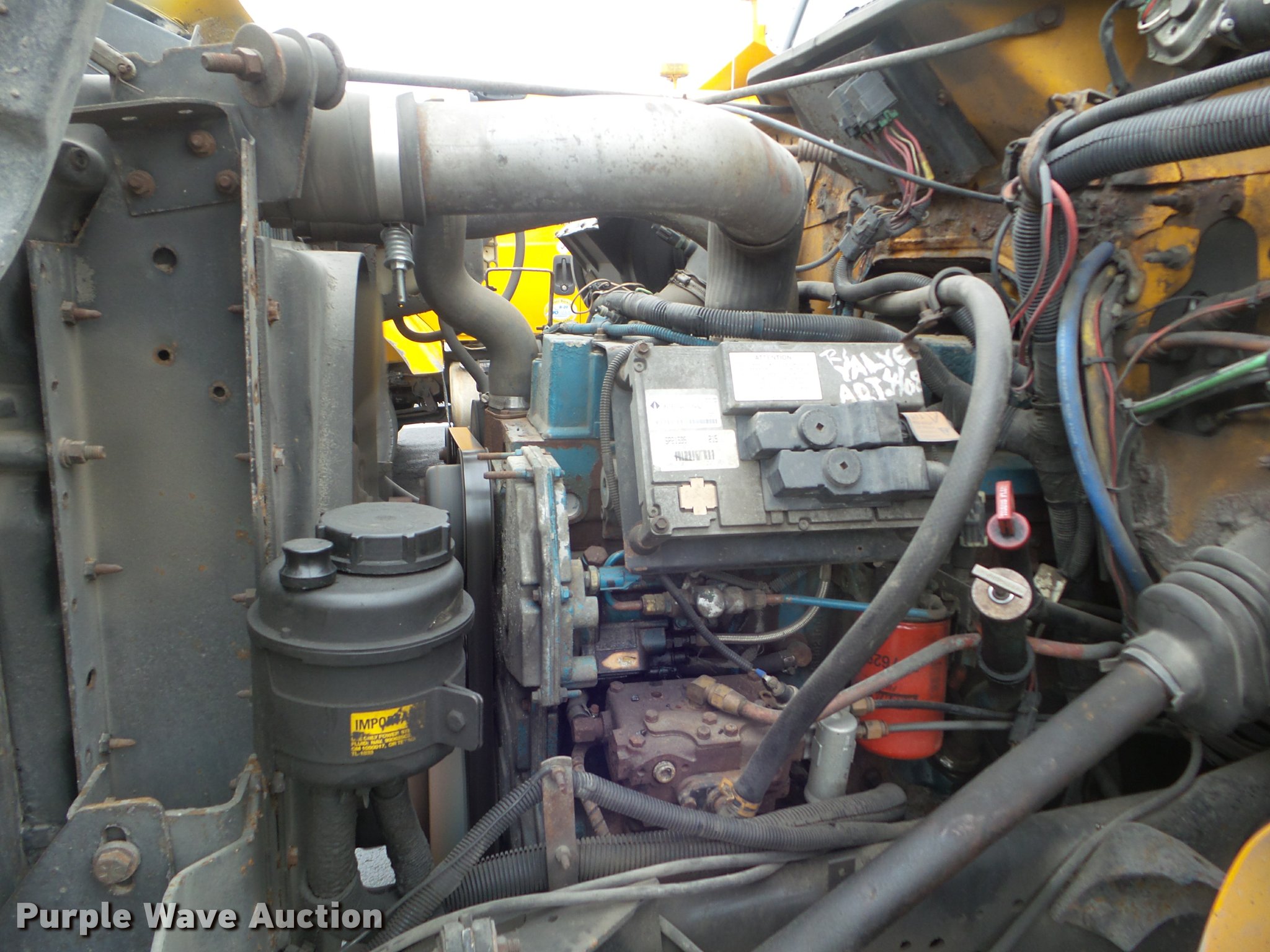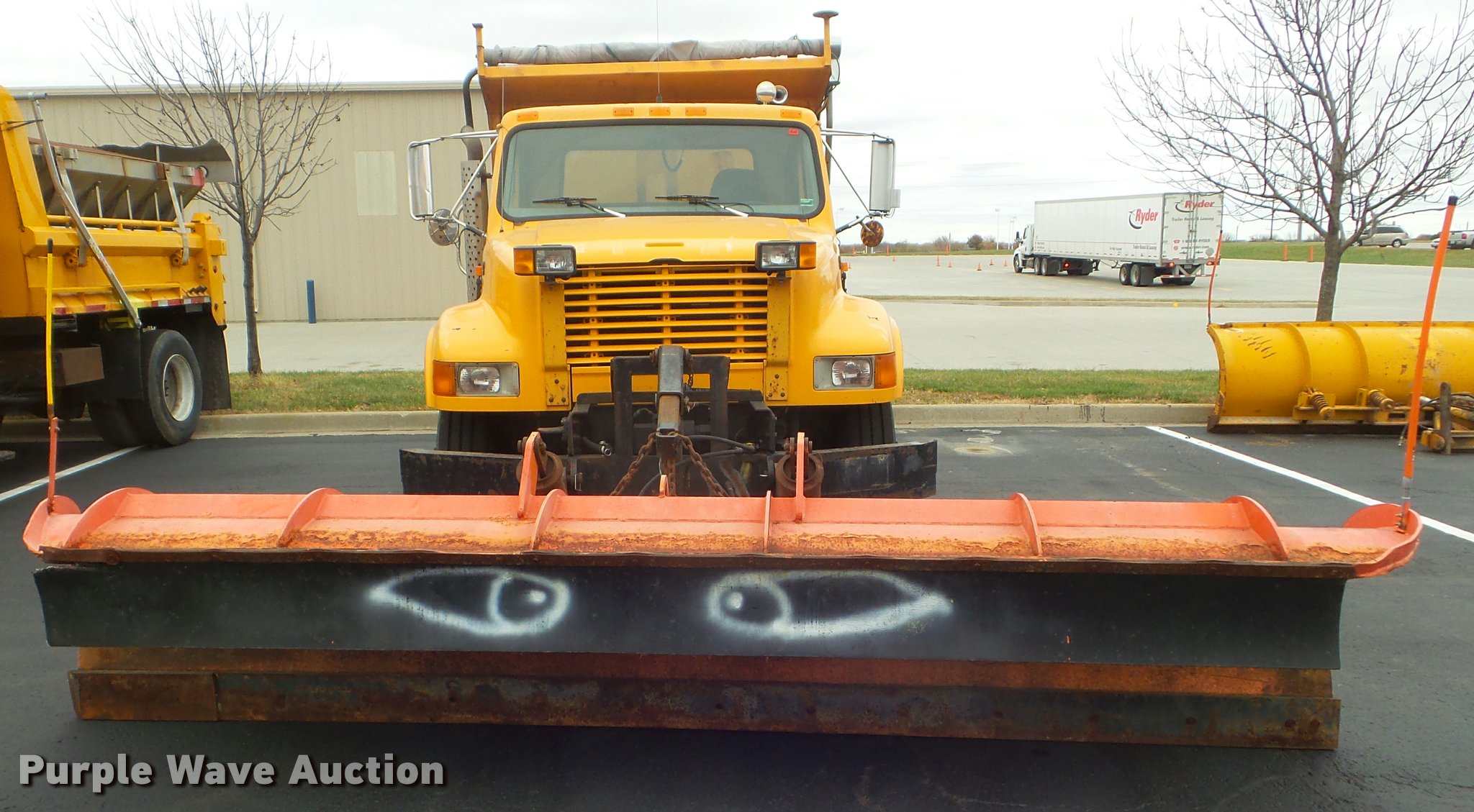 Purple Wave is selling a used Construction Dump Truck in Missouri. This item is a 2001 International 4900 dump truck with the following: 173,576 miles on odometer, Actual mileage unknown, 10,290 hours on meter, International DT466 7.6L L6 turbo diesel engine, Automatic transmission, Single axle, Heat, Cruise, AM/FM, Heated mirrors, Air suspension seat, Block heater, PTO, Steel dump bed, 10'L x 8'W, 24" side height, Single ram hoist, Air operated end gate, Roll tarp, Flink spreader, 14'W snow plow, Wing plow mounting bracket, Single fuel tank, Pintle hitch, Trailer wiring, 170" wheel base, Spring suspension, Air brakes, 11R22.5 tires, Hydraulic pump leaks, Rust hole in muffler, Engine leak, CB radio is not included, MODOT ID 6414