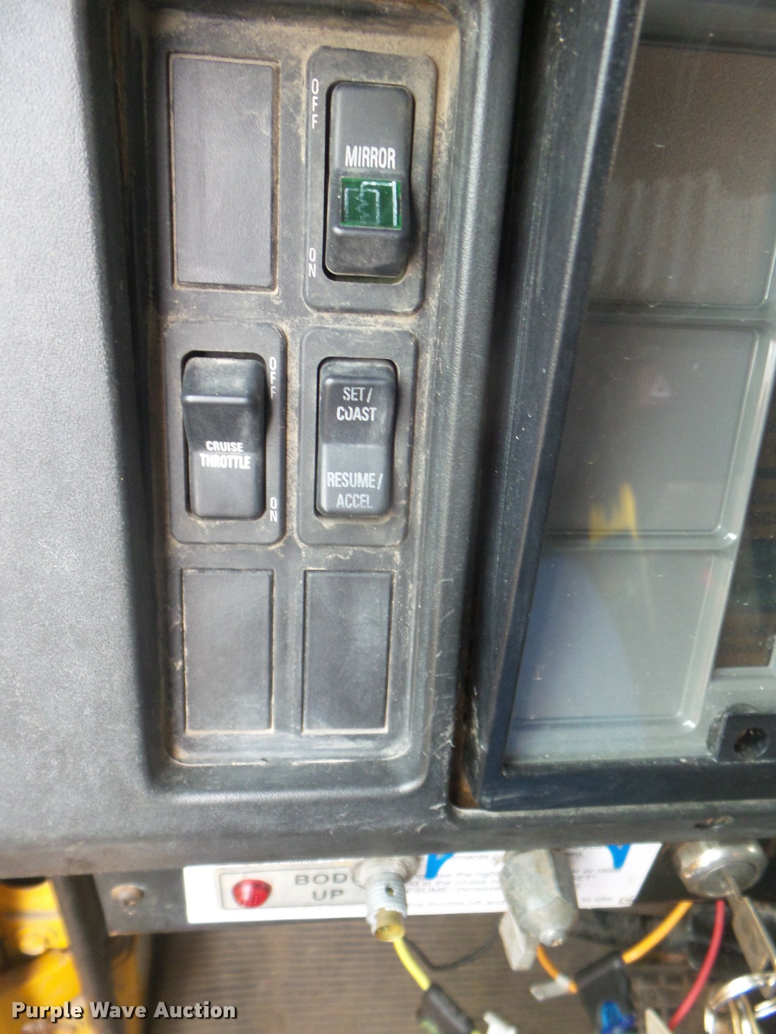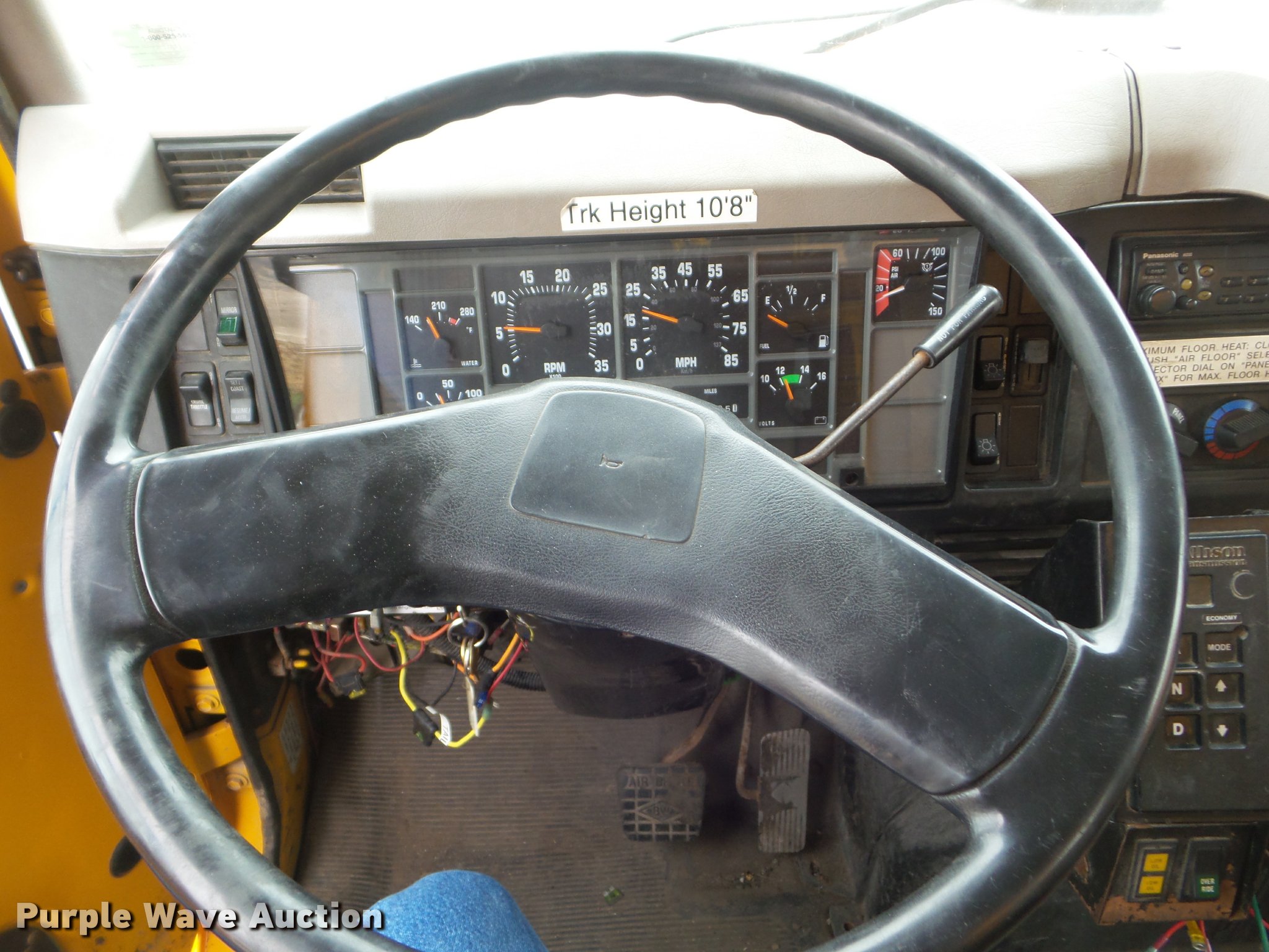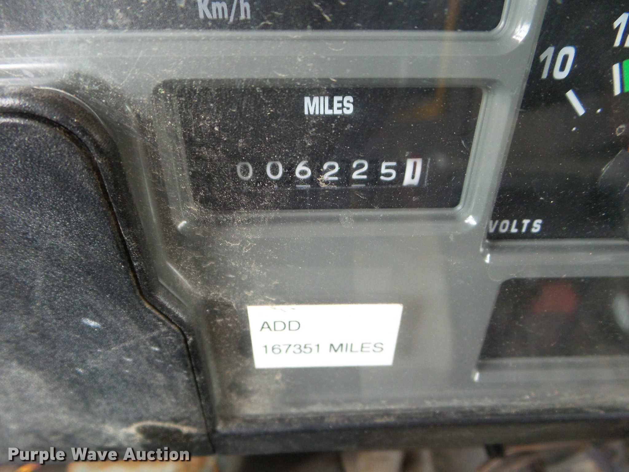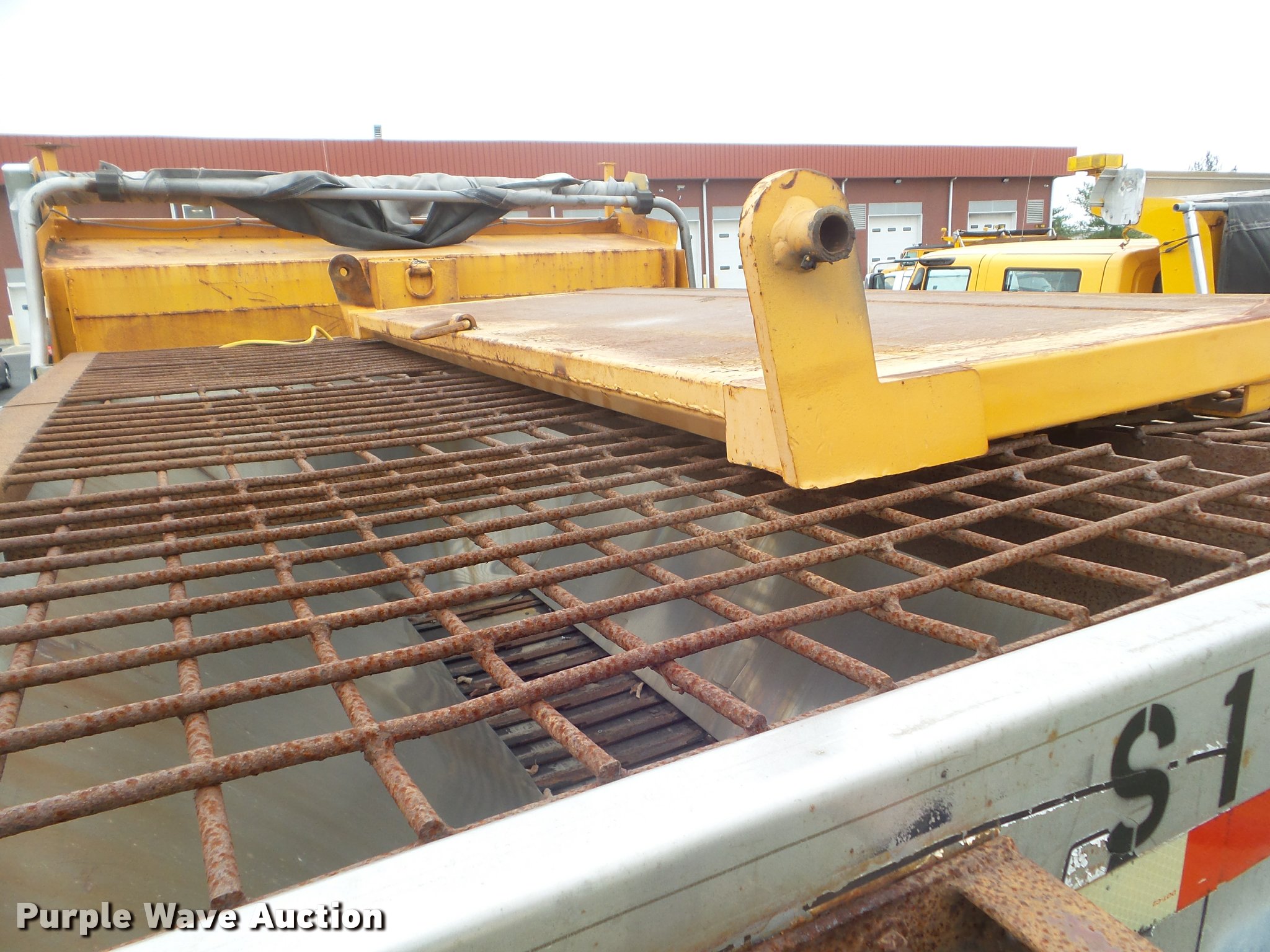 Purple Wave is selling a used Construction Dump Truck in Missouri. This item is a 2001 International 4900 dump truck with the following: 173,576 miles on odometer, Actual mileage unknown, 10,290 hours on meter, International DT466 7.6L L6 turbo diesel engine, Automatic transmission, Single axle, Heat, Cruise, AM/FM, Heated mirrors, Air suspension seat, Block heater, PTO, Steel dump bed, 10'L x 8'W, 24" side height, Single ram hoist, Air operated end gate, Roll tarp, Flink spreader, 14'W snow plow, Wing plow mounting bracket, Single fuel tank, Pintle hitch, Trailer wiring, 170" wheel base, Spring suspension, Air brakes, 11R22.5 tires, Hydraulic pump leaks, Rust hole in muffler, Engine leak, CB radio is not included, MODOT ID 6414