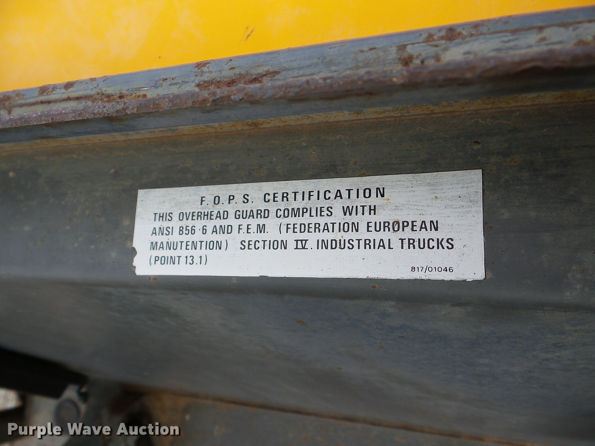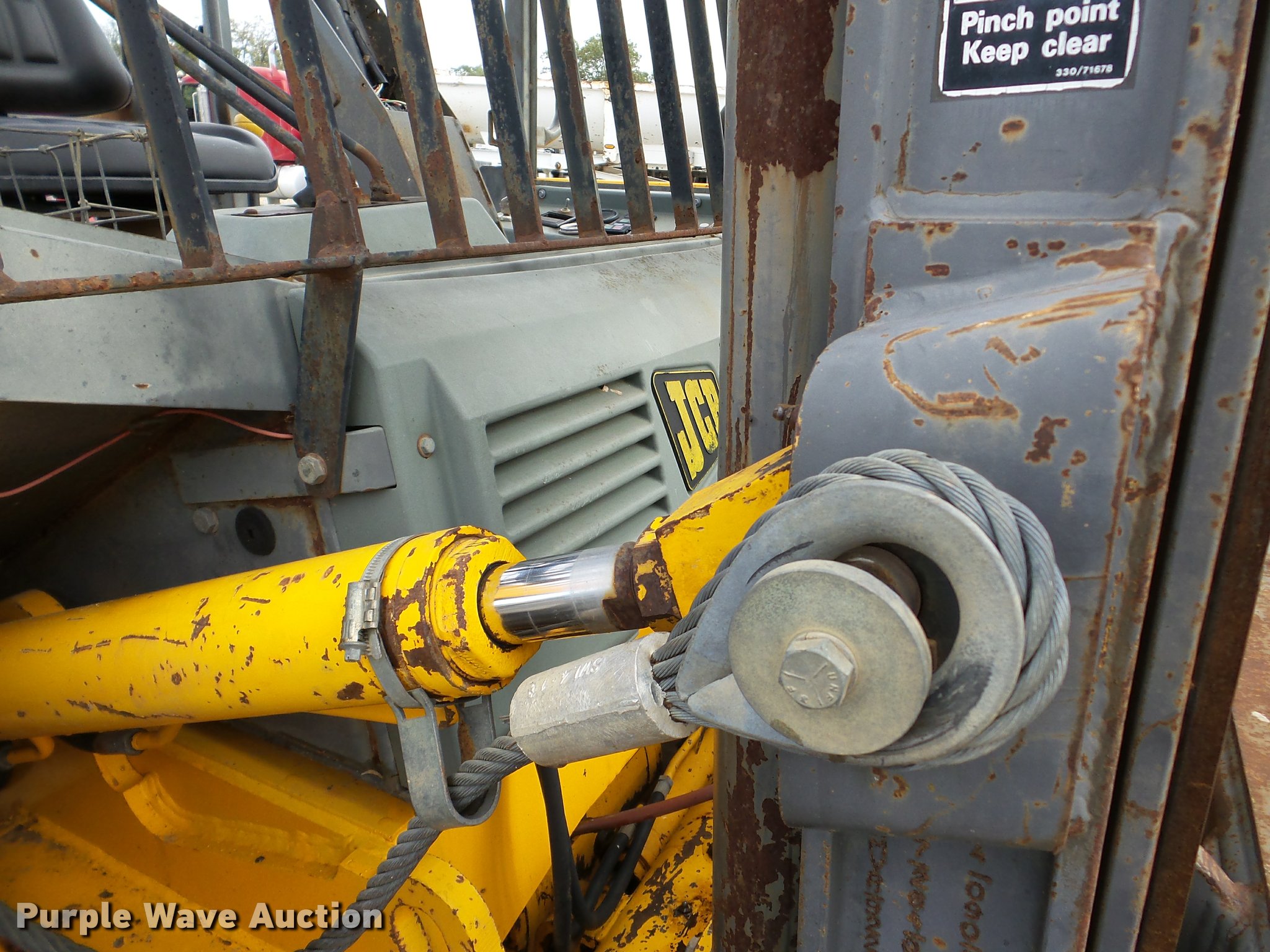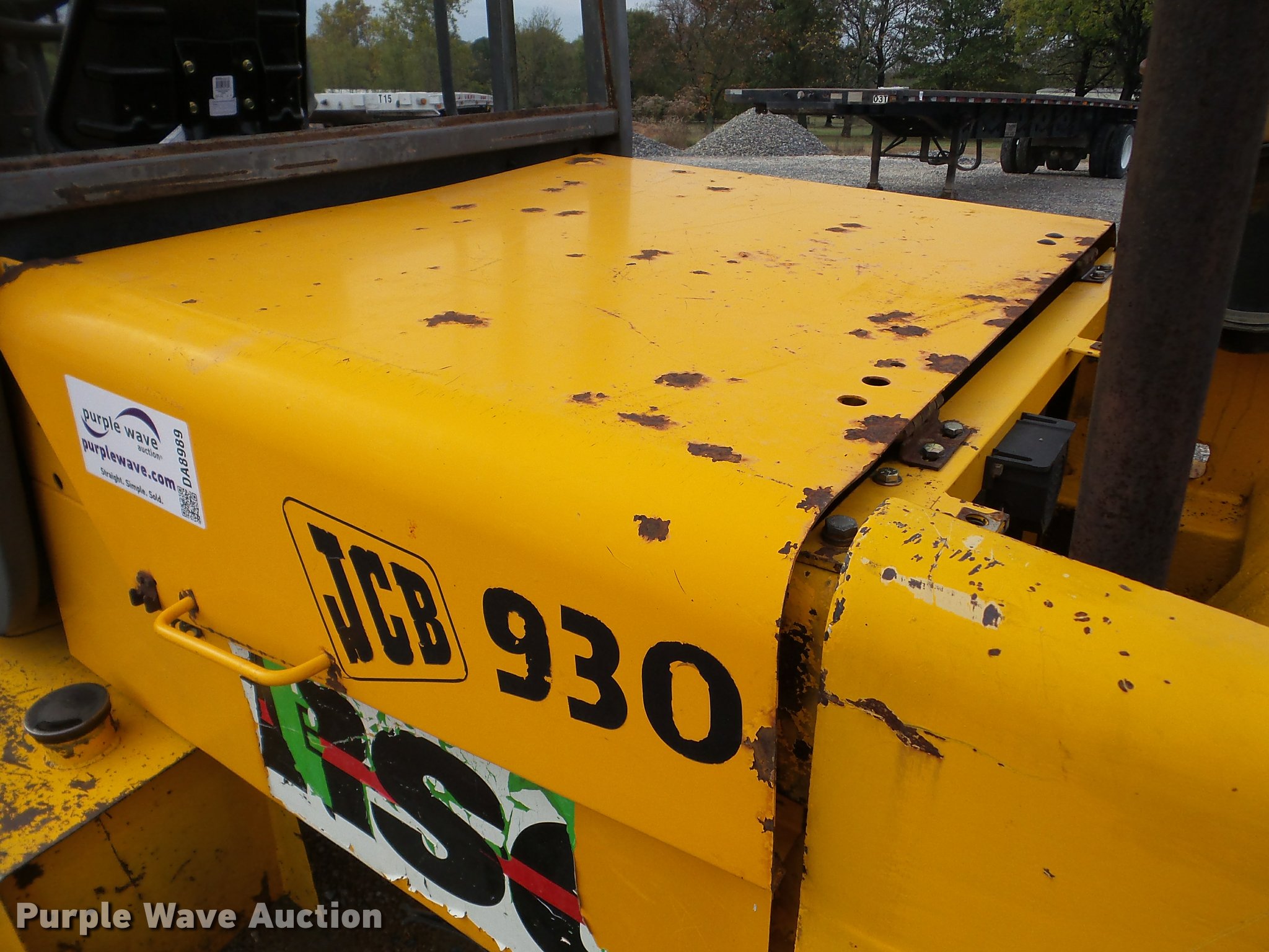 Purple Wave is selling a used Strt. Mast Rough Terr. Forklift in Oklahoma. This item is a 1994 JCB 930 forklift with the following: Four cylinder diesel engine, Shuttle shift transmission, 4F-4R gears, OROPS, Work lights, 15' maximum lift height, Two mast stages, Side shift, Mast tilt, 4' fork length, 15.5-25 front tires, 14.5/75-16.1 rear tires, Serial 609142