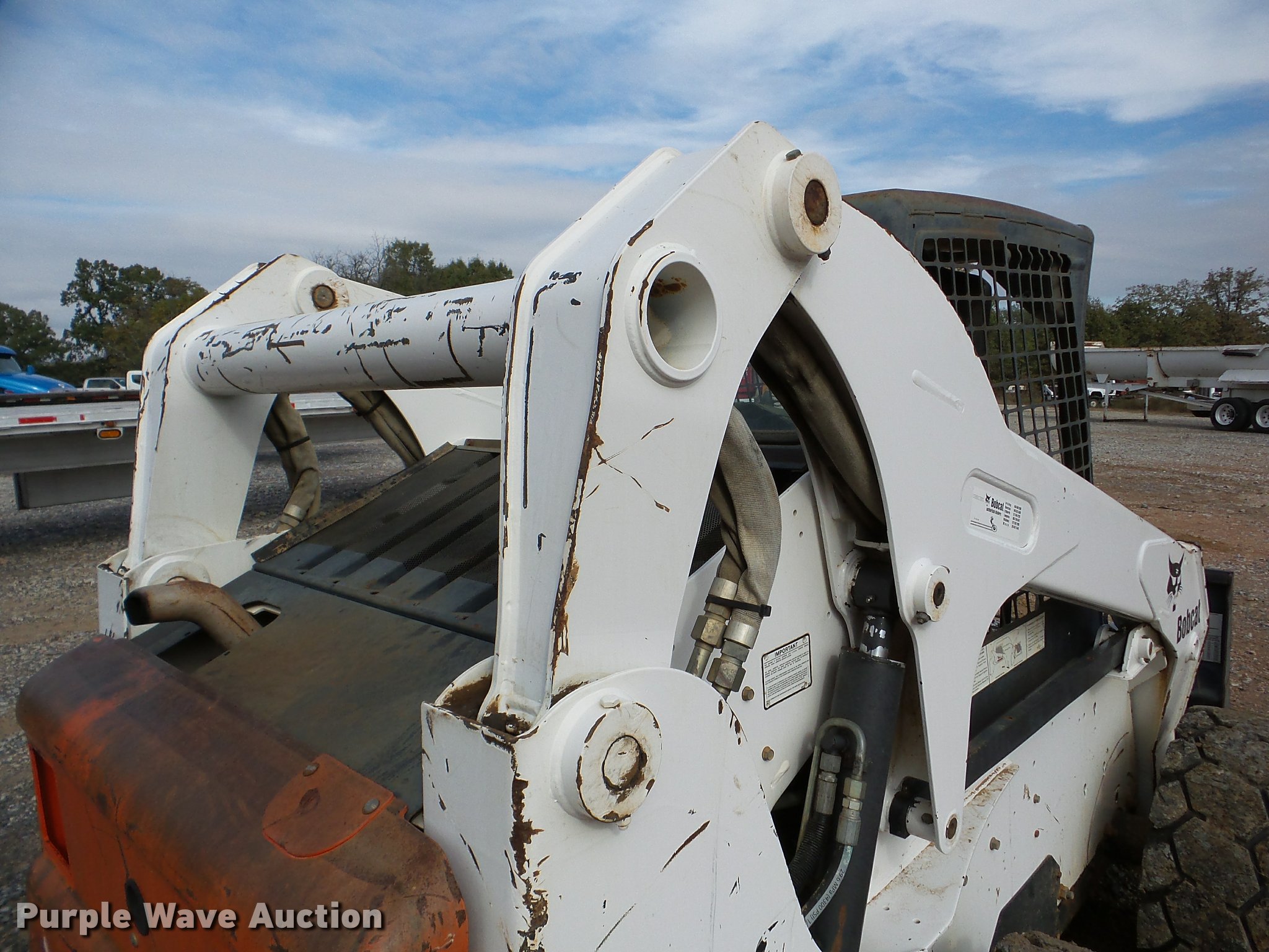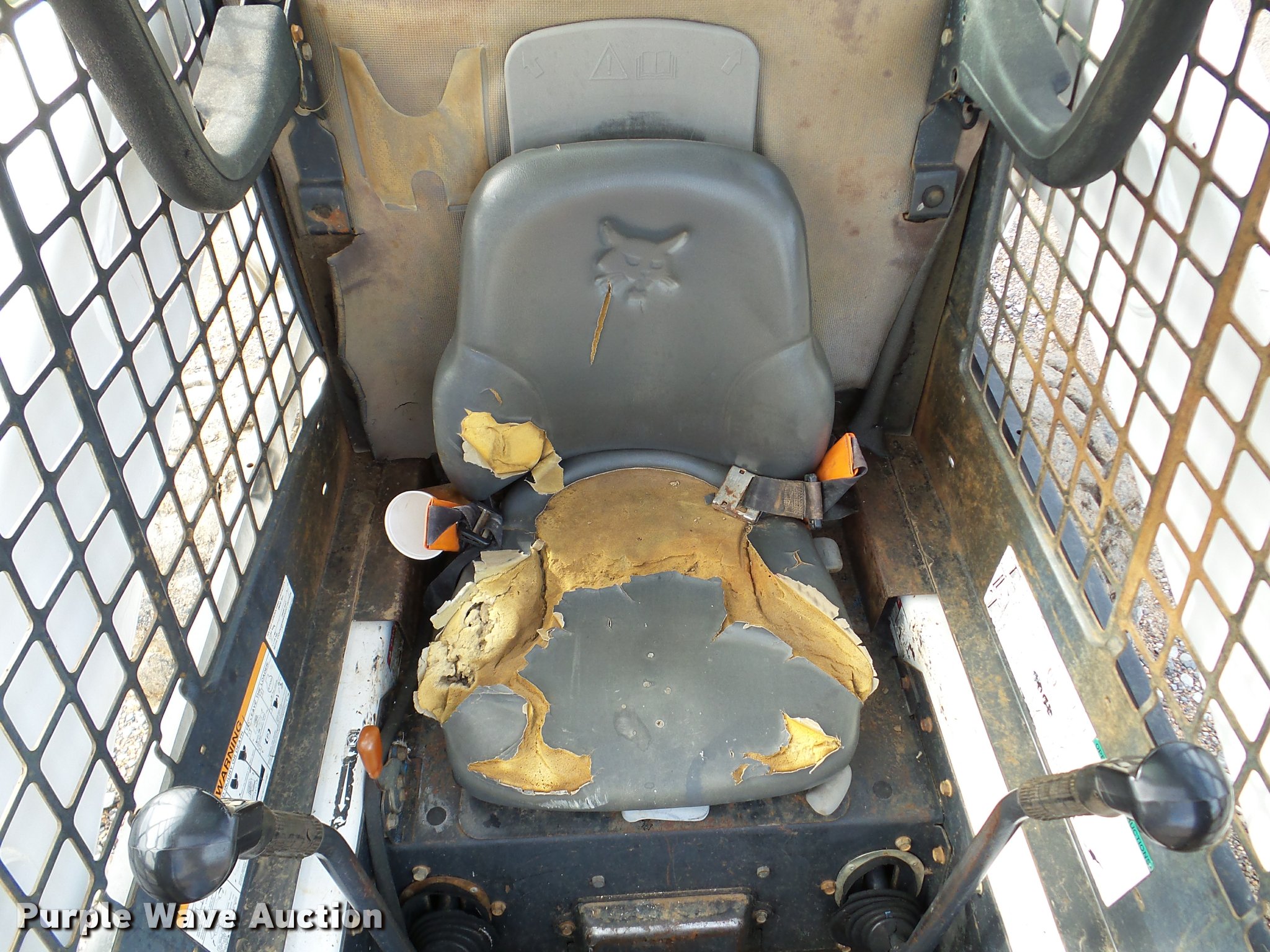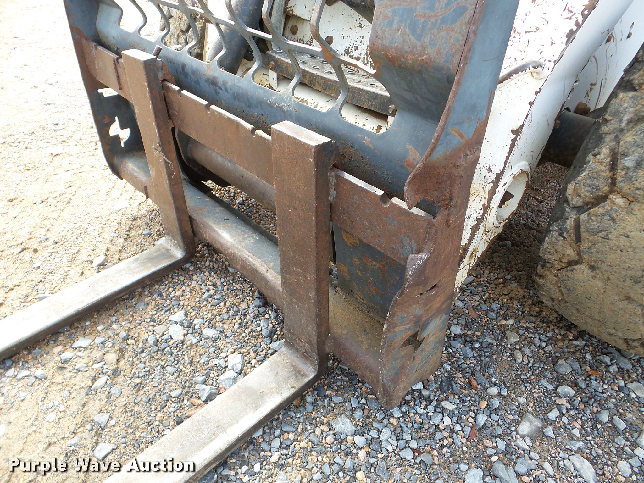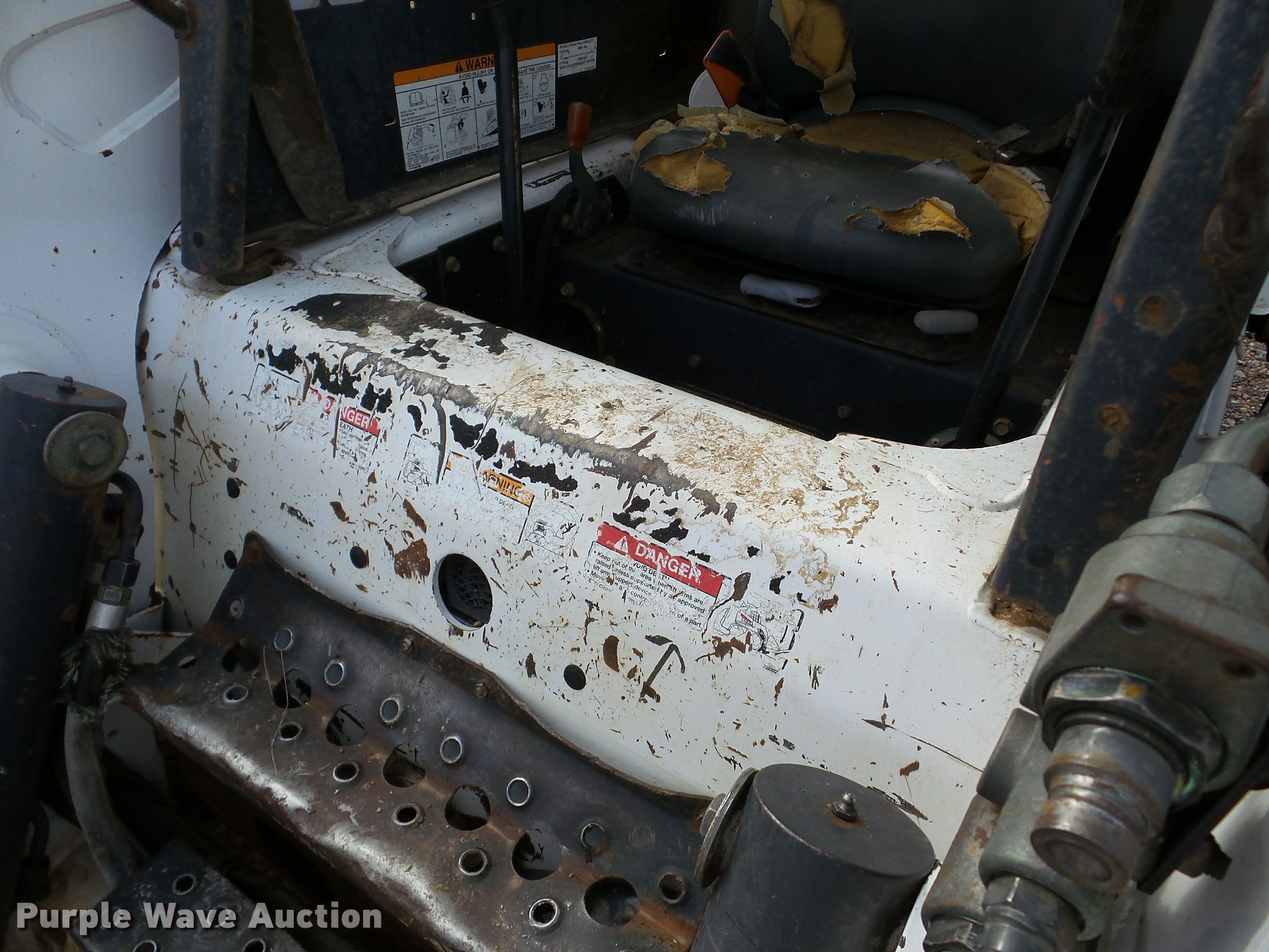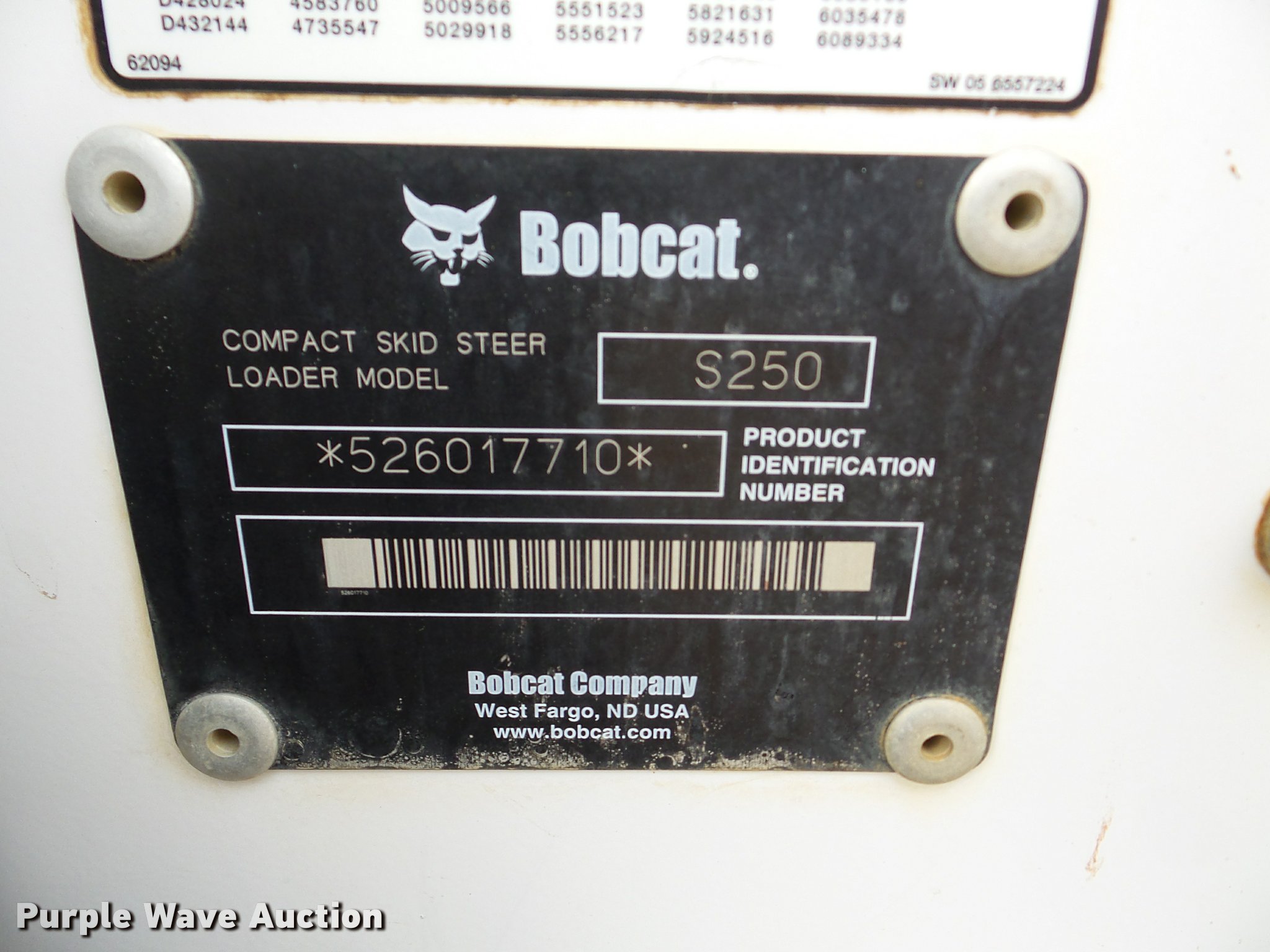 Purple Wave is selling a used Skid Steer Loader in Oklahoma. This item is a 2005 Bobcat S250 skid steer with the following: 7,865 hours on meter, Kubota V3300-T four cylinder turbo diesel engine, Hydrostatic transmission, Hand and foot controls, Front work lights, 34"L pallet forks, Manual quick coupler, Auxiliary hydraulics, 12-16.5 tires, Serial 526017710