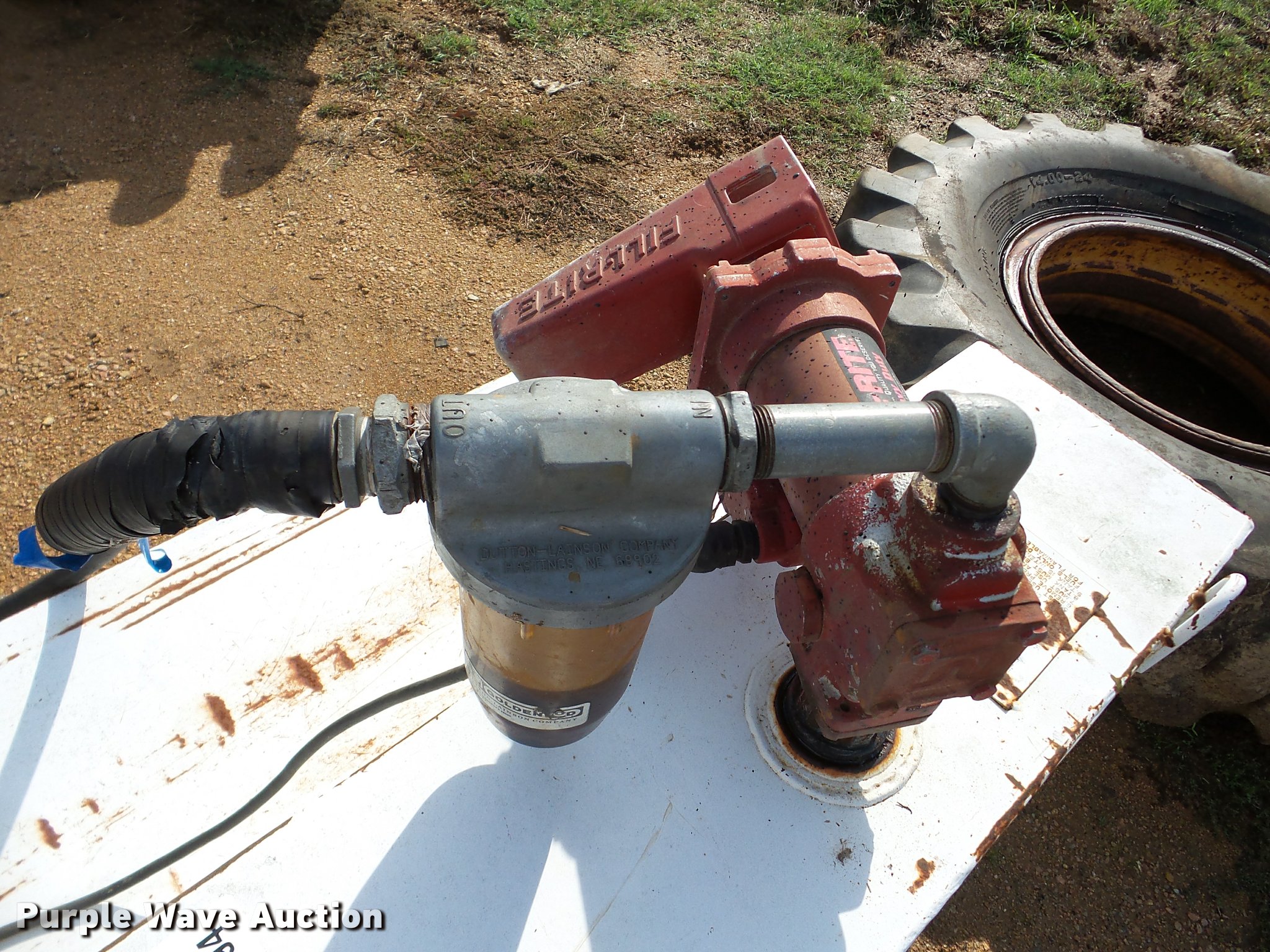 Purple Wave is selling a used Fuel and Lube in Oklahoma. This item is a Fuel tank with the following: 5'W, 105 gallon capacity, Fill-rite 15 gallon per minute pump