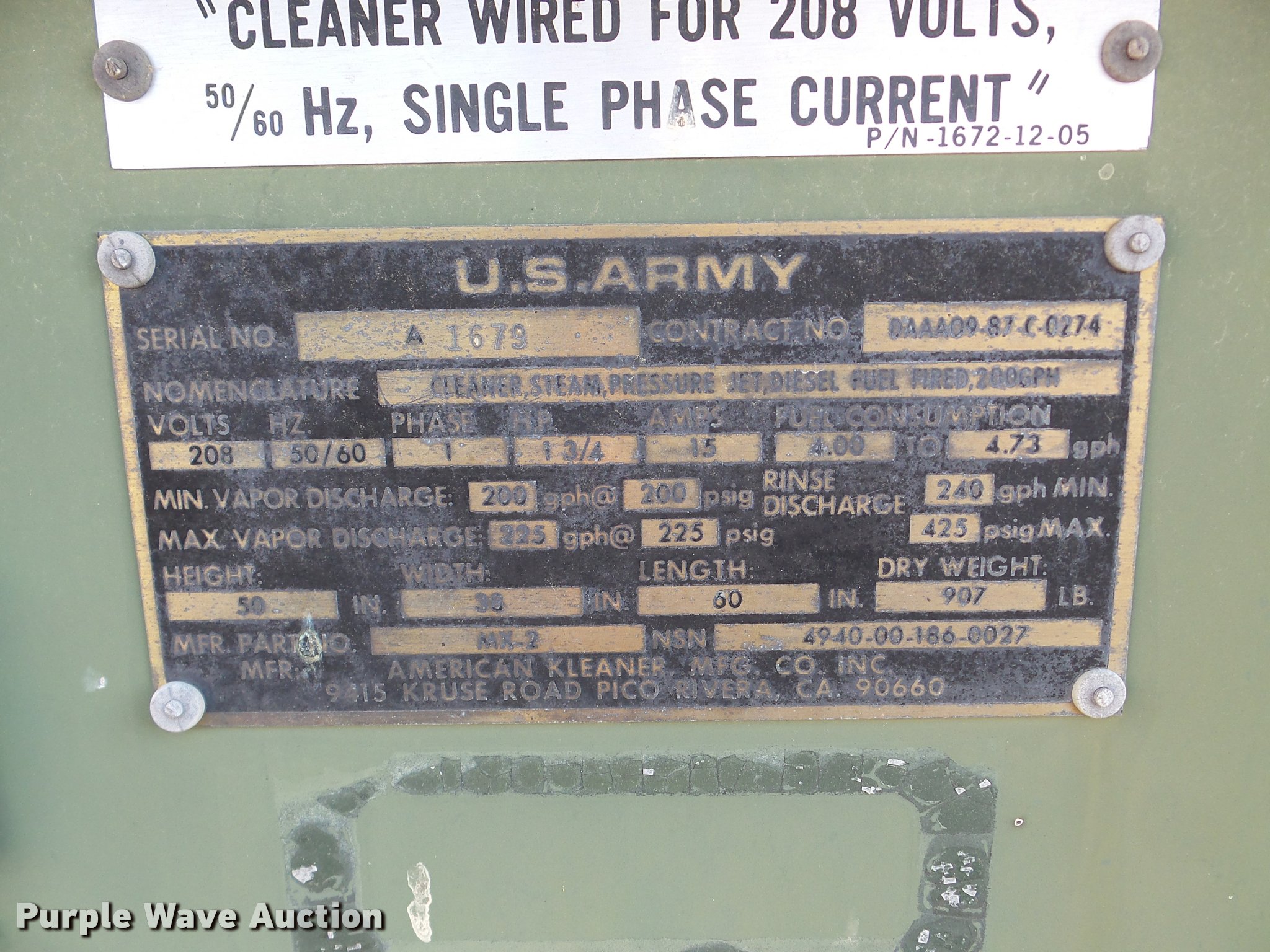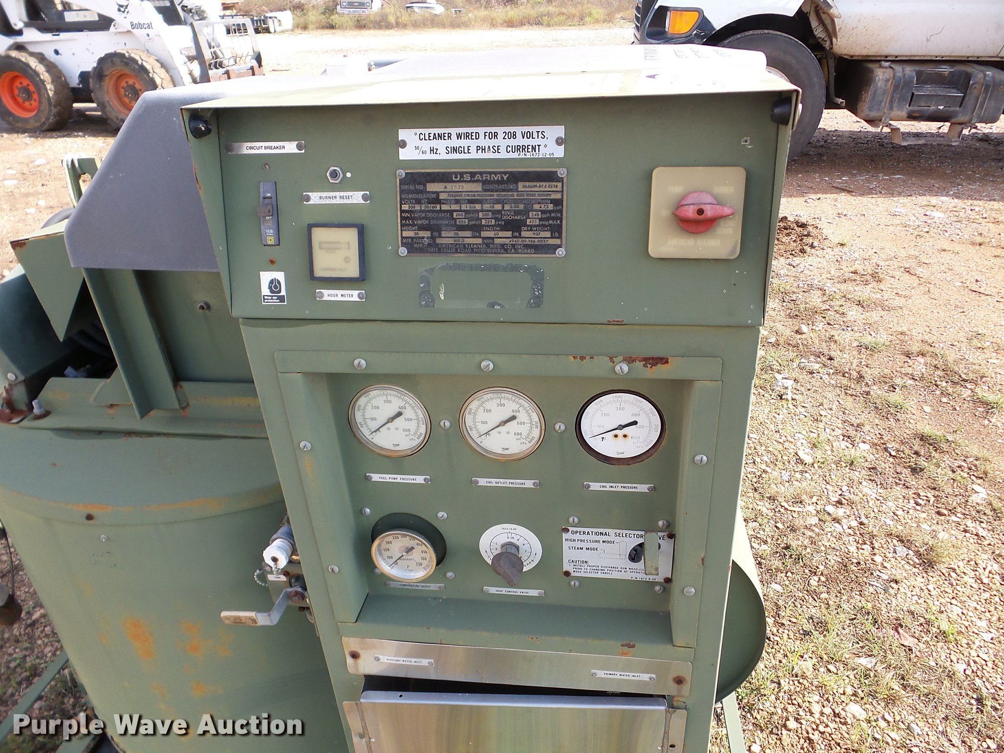 Purple Wave is selling a used Tools in Oklahoma. This item is a U.S. Army steamer with the following: Diesel fuel fired, 208V, Single phase, Serial 1679