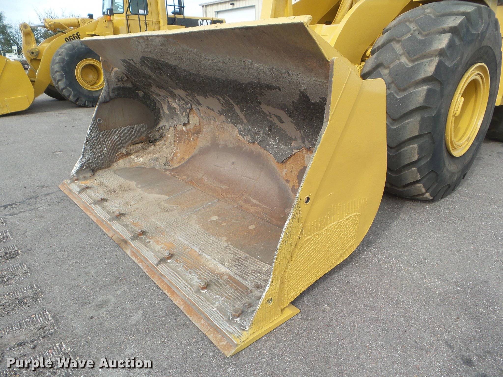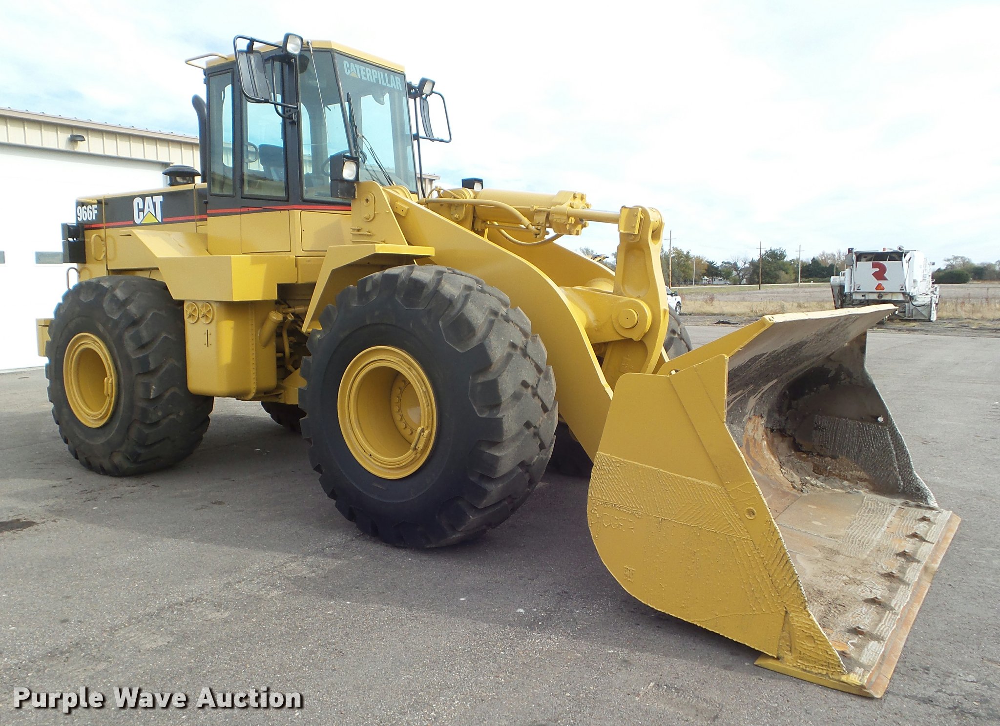 Purple Wave is selling a used Wheel Loader in Kansas. This item is a 1993 Caterpillar 966F Series II wheel loader with the following: 28,329 hours on meter, Caterpillar 3306B six cylinder turbo diesel engine, Serial 08Z74954, Powershift transmission, 4F-4R gears, EROPS, AC and heat, Tilt steering wheel, Air suspension seat, Two-lever bucket controls, Wipers, Front and rear work lights, Block heater, Caterpillar 120"W general purpose bucket, Bolt-on cutting edge, Self-leveling, Counterweights, Firestone 26.5-25 tires, Service records available upon request, Serial 1SL00620