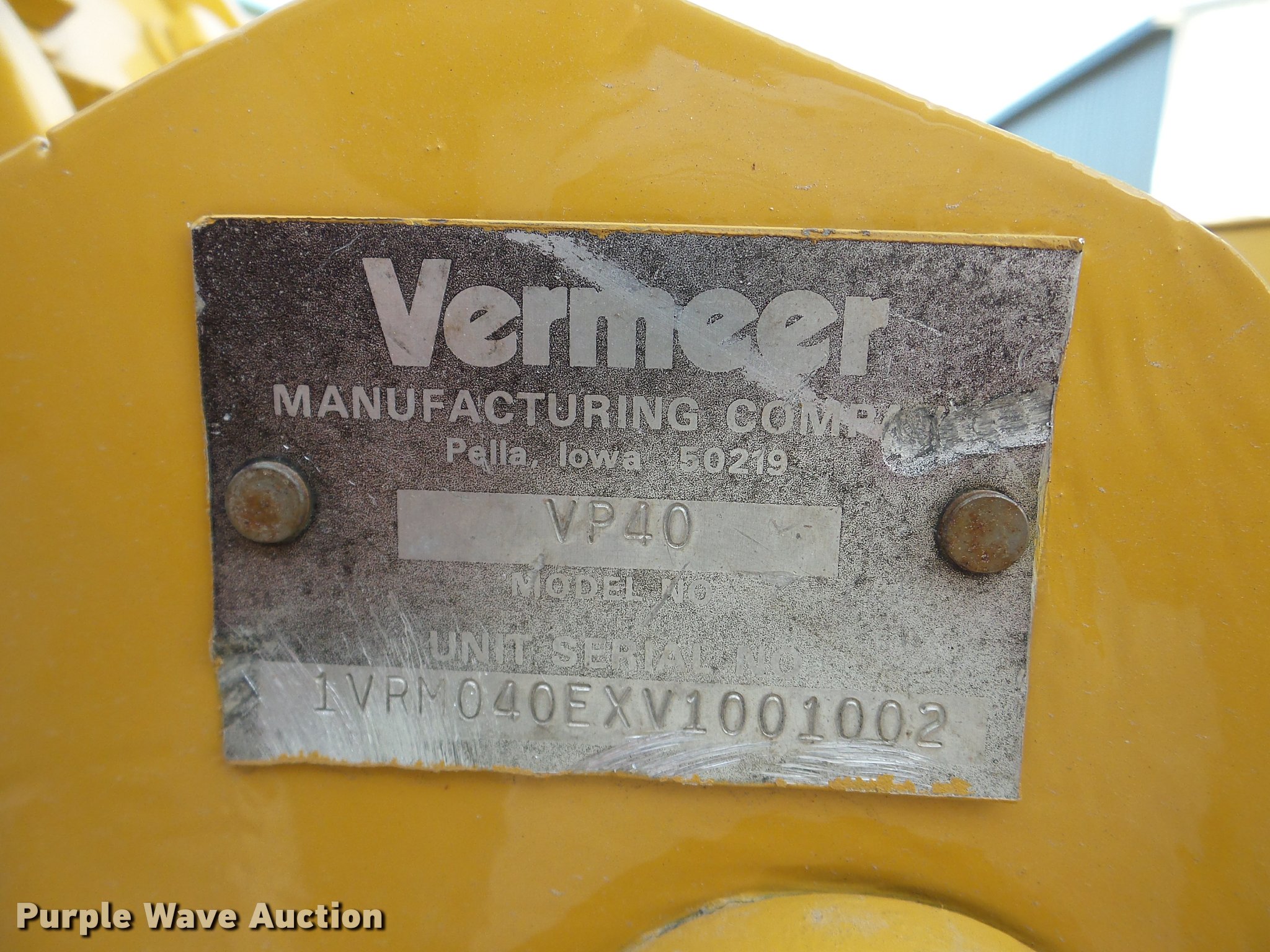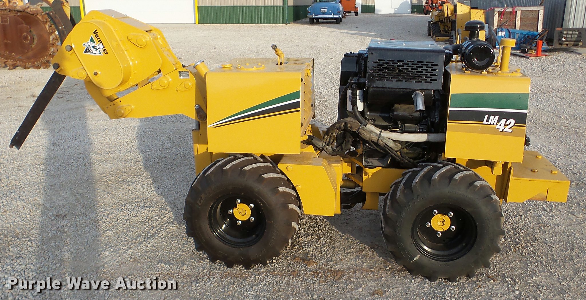 Purple Wave is selling a used Cable Plow in Illinois. This item is a Vermeer LM42 cable plow with the following: 500 hours on meter, Three cylinder diesel engine, Hydrostatic transmission, VP40 plow, Hydraulic lift, Serial 1VRM040EXV1001002, (6) weights, 26 x 12.00-12 tires, Serial 1VRM112L3R1000111