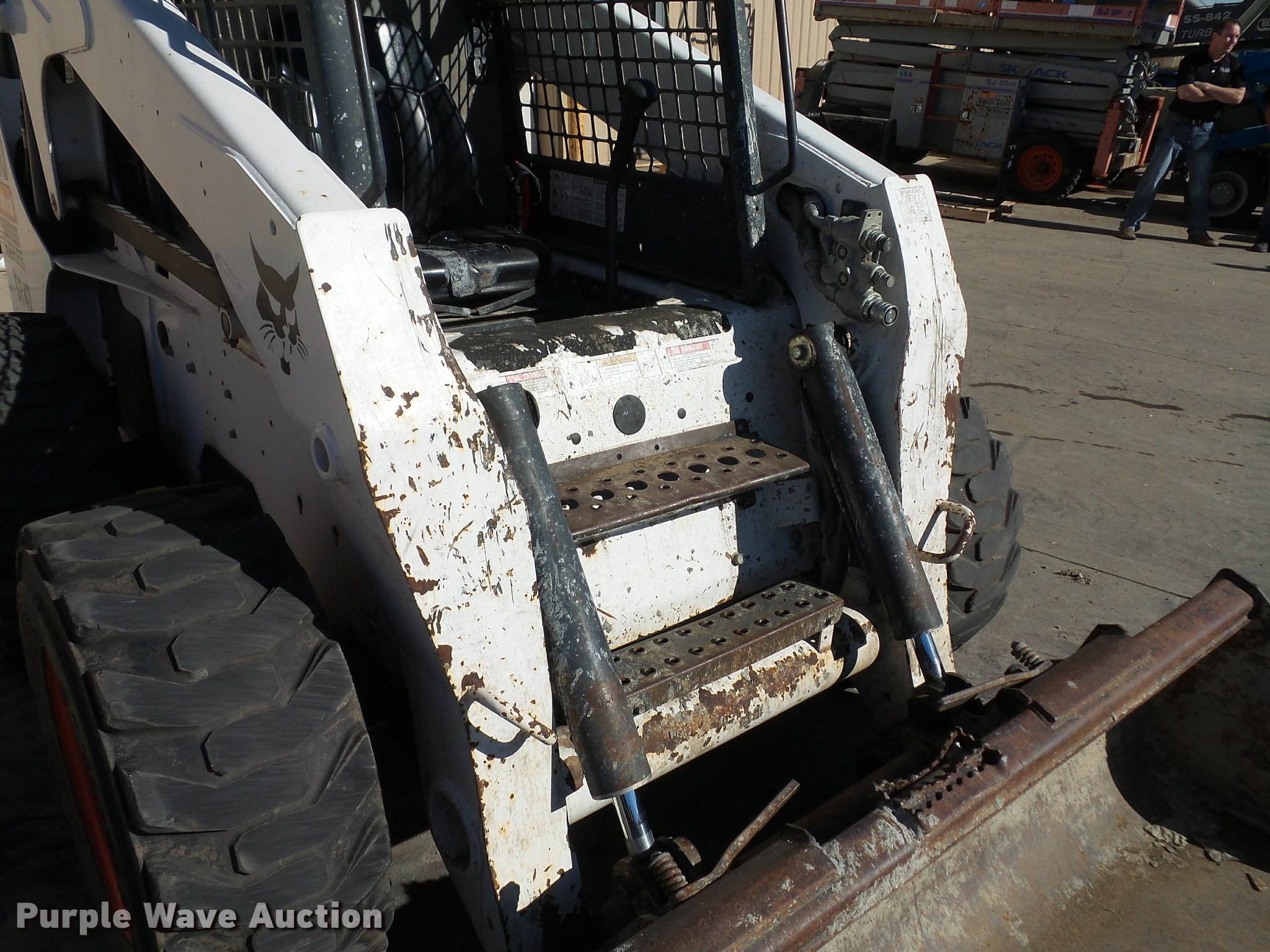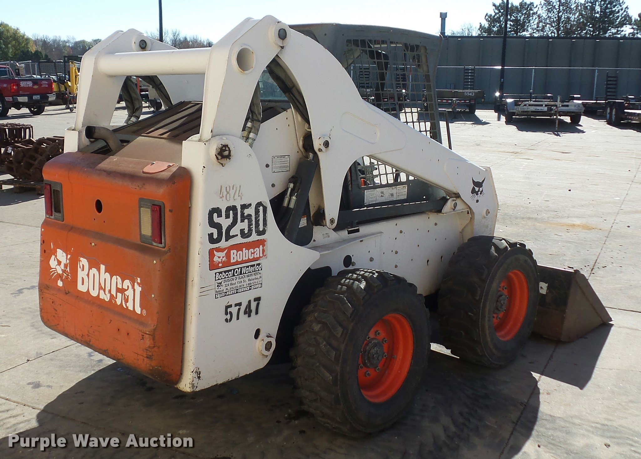 Purple Wave is selling a used Skid Steer Loader in Iowa. This item is a 2008 Bobcat S250 skid steer with the following: 2,384 hours on meter, Four cylinder diesel engine, Hydrostatic transmission, OROPS, Hand and foot controls, 78"W bucket, Auxiliary hydraulics, Manual quick coupler, 12-16.5 tires, Serial A5GM20586