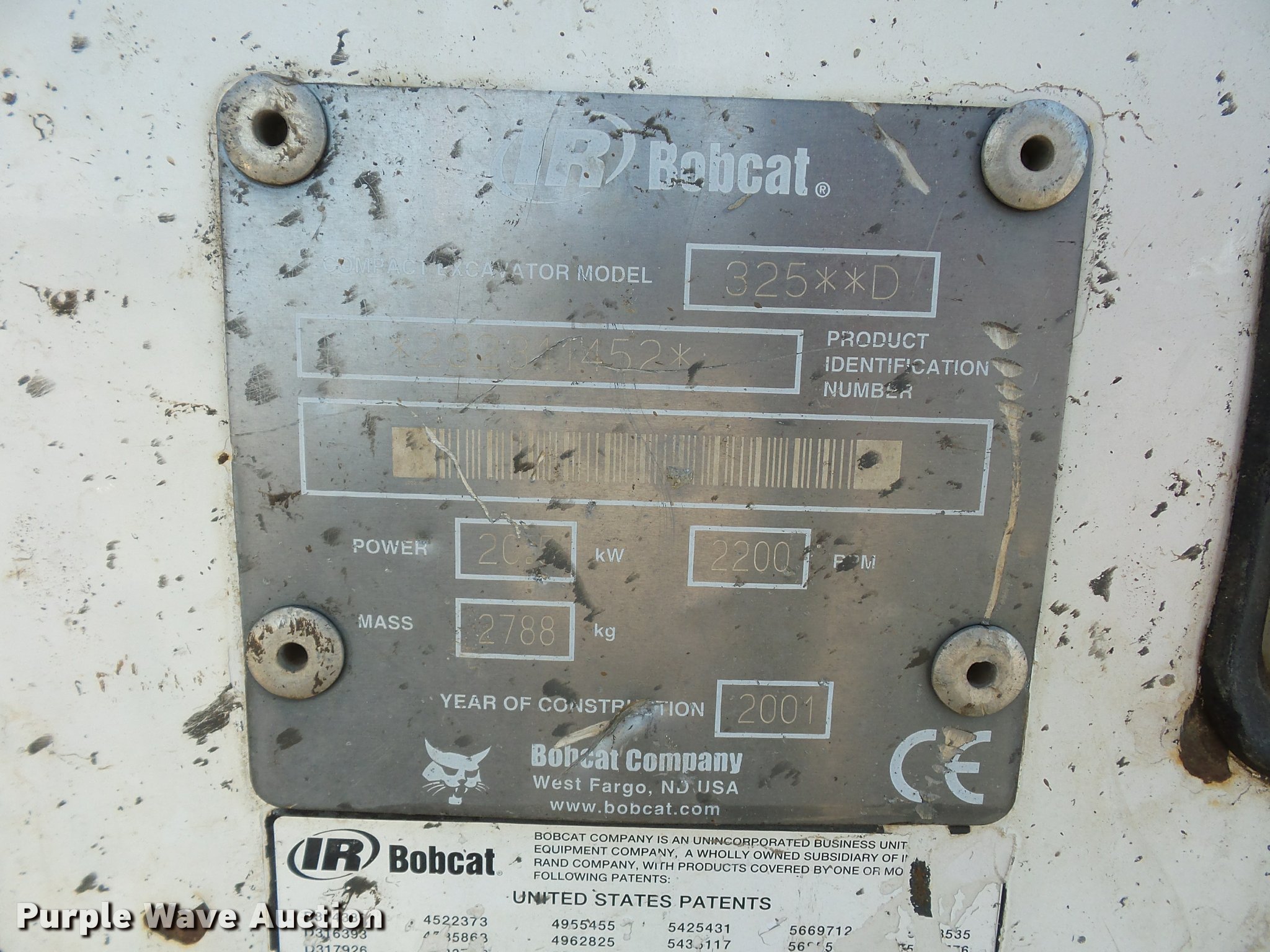 2001 Bobcat 325 compact excavator has sold in Cedar Falls, Iowa for $12100. Item J1602 sold on December 15th, 2016.