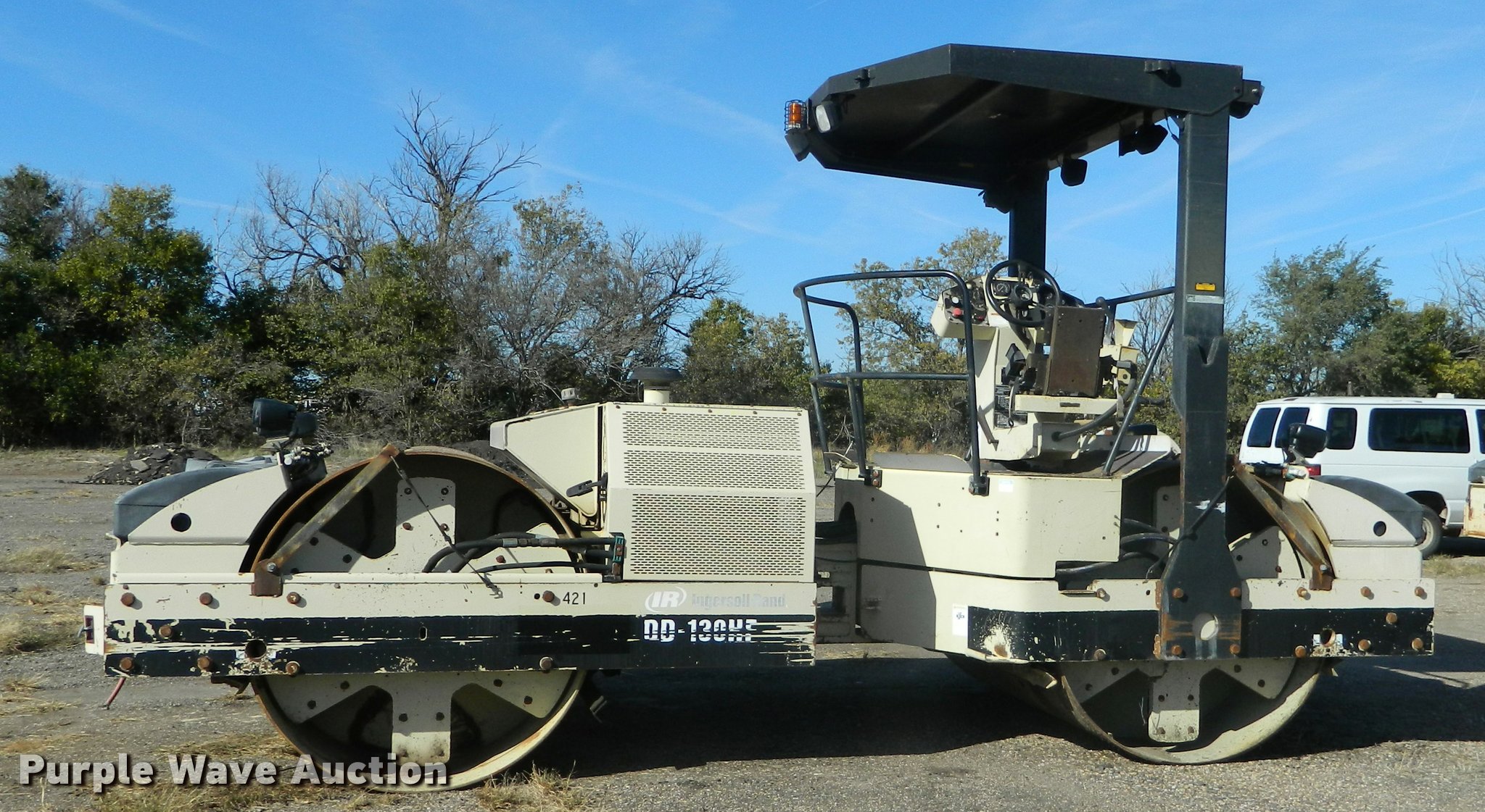 Purple Wave is selling a used Double Drum Roller Compactor in Kansas. This item is a 2002 Ingersoll Rand DD130HF double drum vibratory roller with the following: 11,036 hours on meter, Cummins DD130HT six cylinder diesel engine, Hydrostatic transmission, OROPS, Work lights, 84"W x 52" diameter smooth steel drums, Dual two speed vibratory system, Front and rear drum scrapers, Front and rear water application, Dual propel system, Oil leak, Serial 170232, Unit# 421