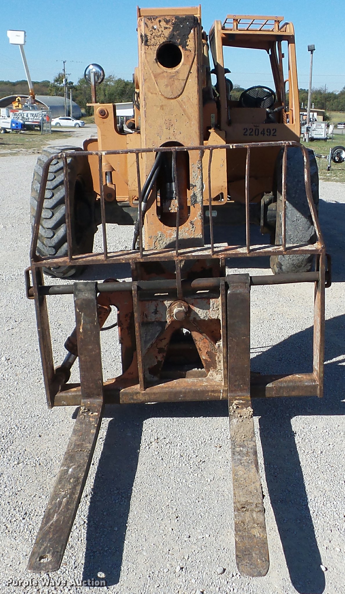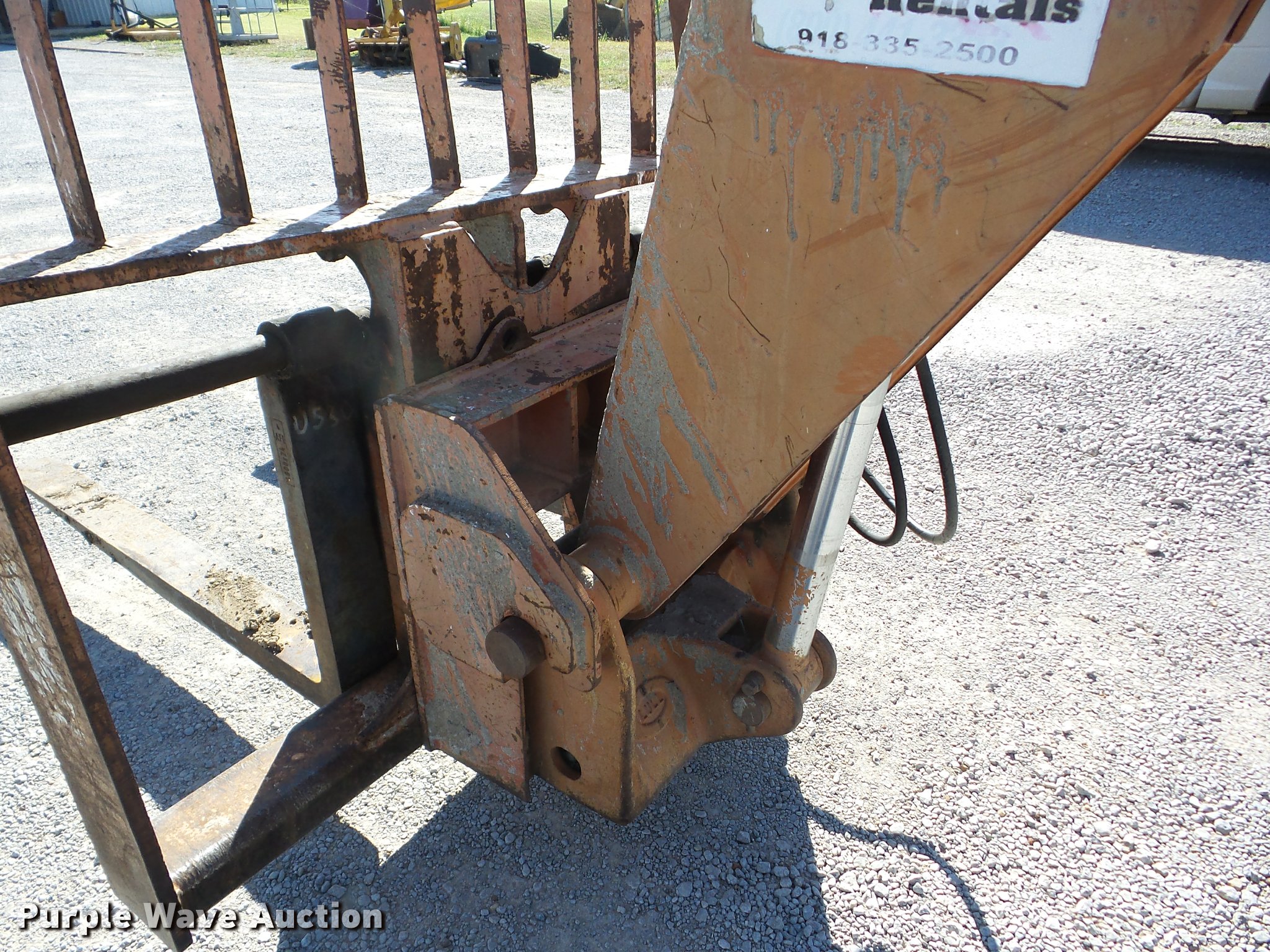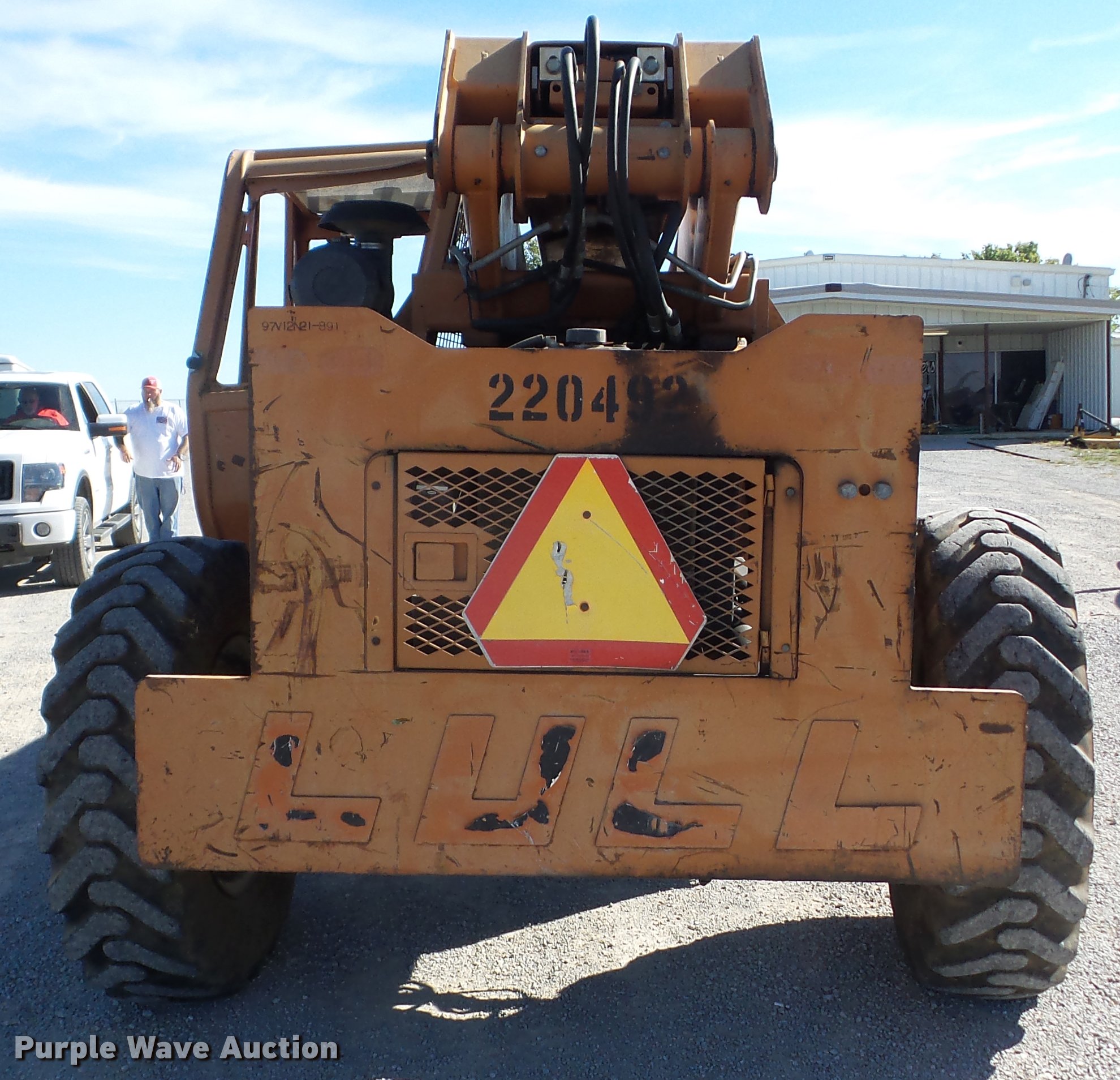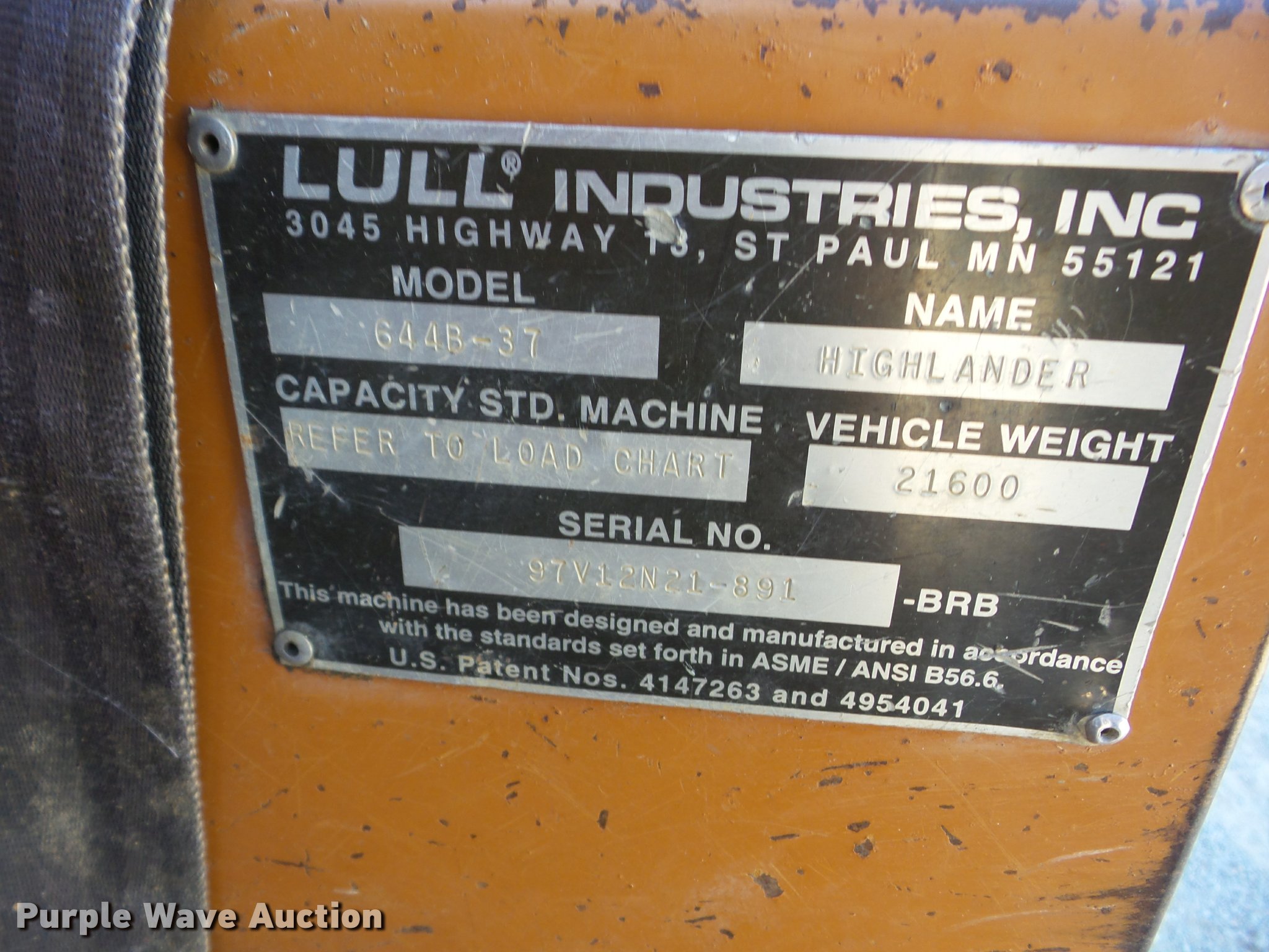 Purple Wave is selling a used Telehandler in Oklahoma. This item is a Lull 644B-37 telehandler with the following: 5,403 hours on meter, John Deere four cylinder diesel engine, Shuttle shift transmission, 4F-4R gears, Four wheel drive, Crab steer, Four sheel steer, OROPS, Tilt cab, 6,000 lbs maximum lift capacity, 37' maximum lift heights, 25' maximum reach, 48" fork length, Auxiliary hydraulics, Tilt carriage, Hydraulic leveling, 13.00-24 tires, Non-operational boom slide, Serial 97V12N21-891, Unit# 7A17