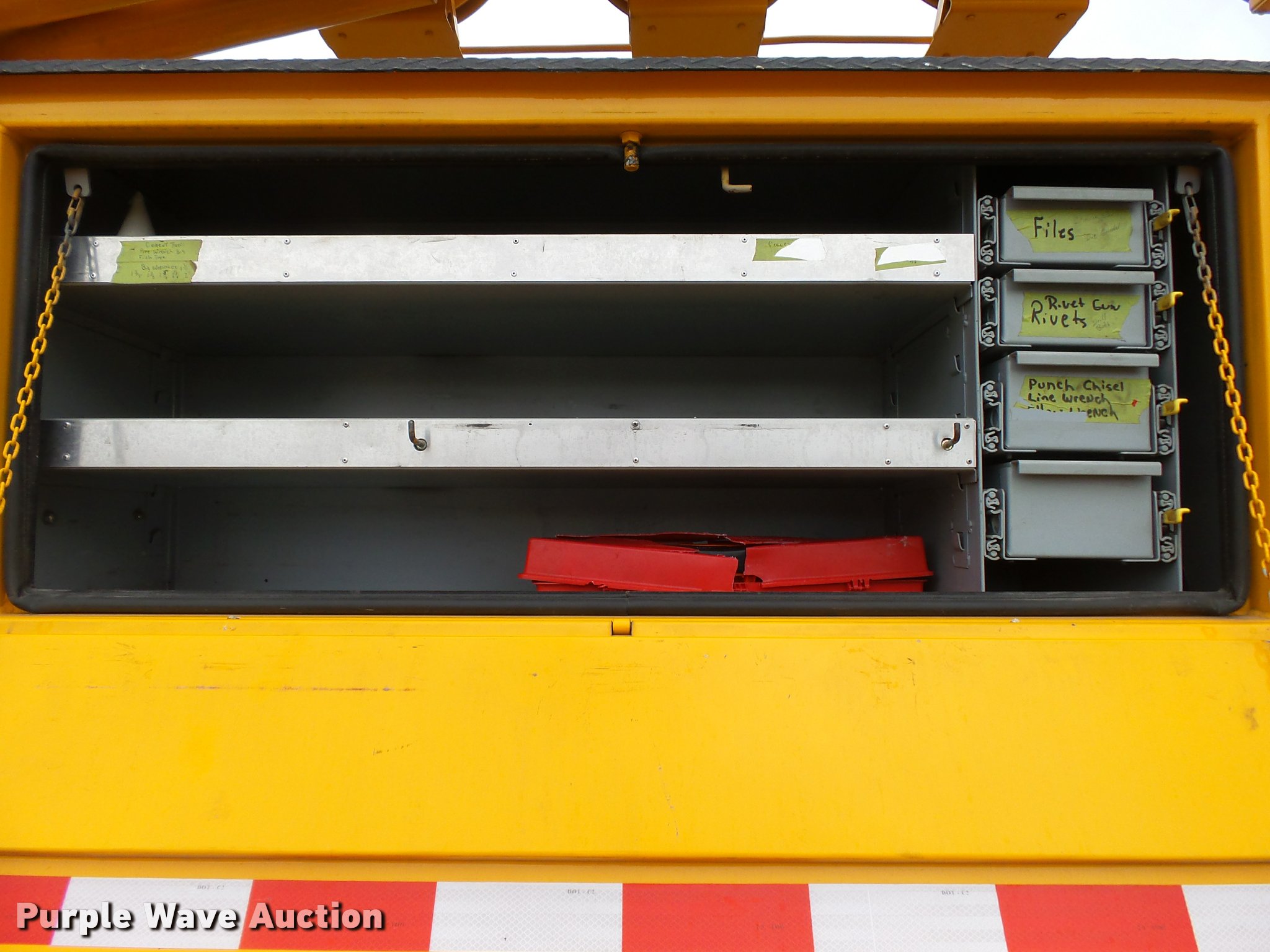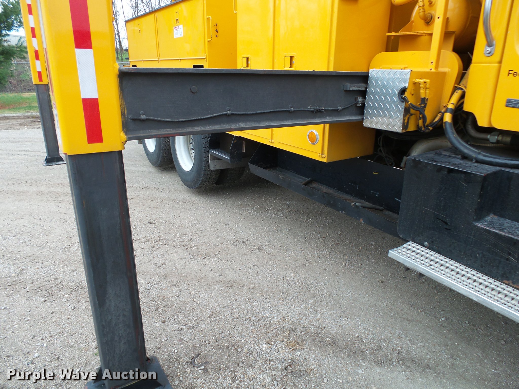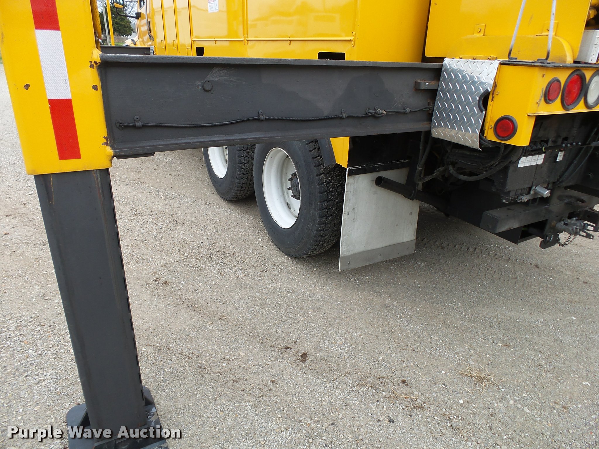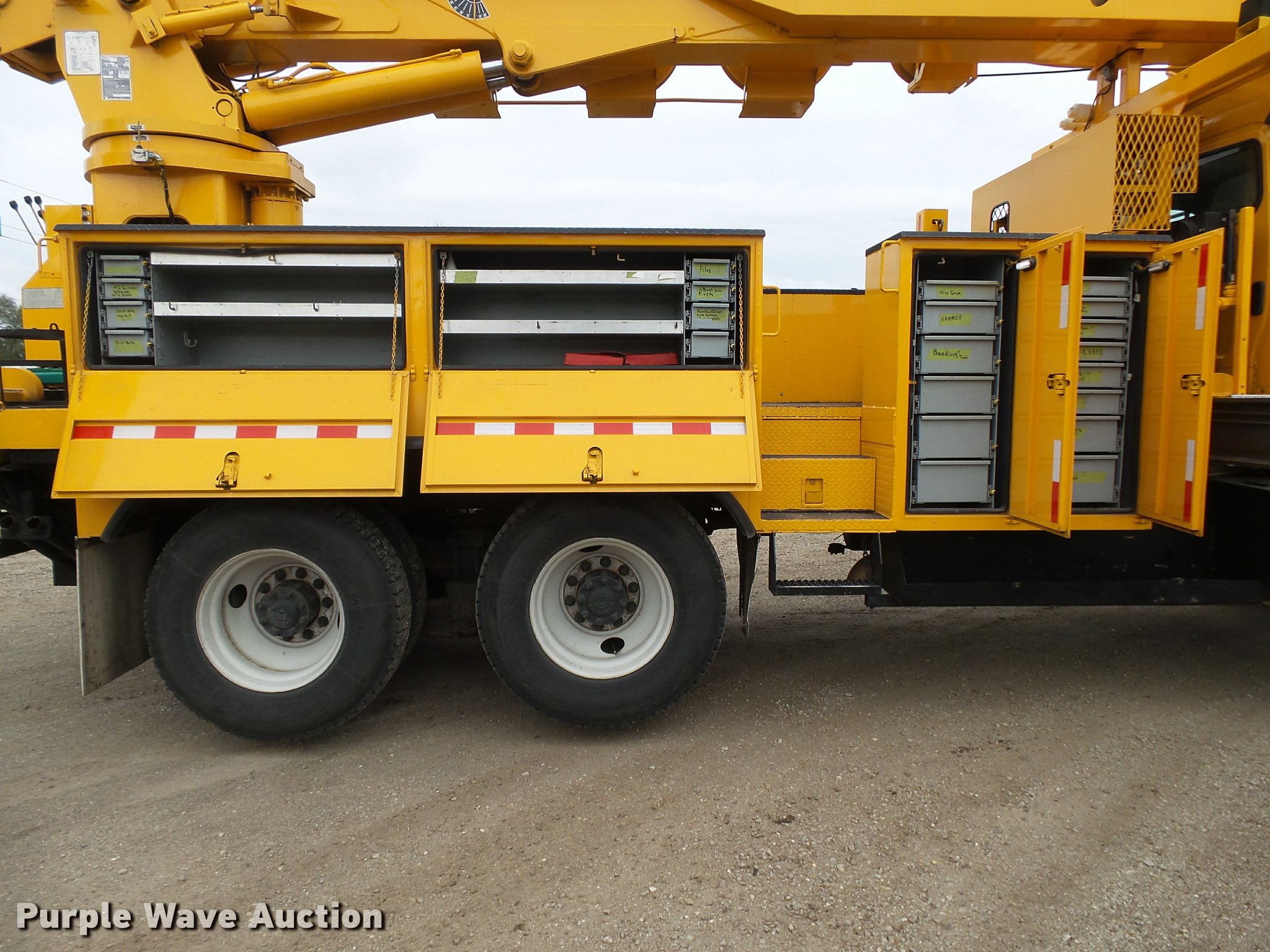 Purple Wave is selling a used Bucket Truck in Missouri. This item is a 2007 Freightliner Business Class M2 digger derrick truck with the following: 36,166 actual miles, 2,523 hours on meter, Caterpillar C13 12.5L L6 turbo diesel engine, Eaton Fuller 8LL nine speed manual transmission, Tandem axle, AC and heat, AM/FM, Power windows and locks, Power and heated mirrors, Air suspension seat, Backup alarm, Air ride cab, PTO, Terex 1N11747 service bed, Serial 1N1747, 18'L, Shelving, Slideout drawers, Utility rack, Catwalk, Work lights, Pintle hitch, Trailer wiring, Terex General boom, Serial 2060831667, 70' boom length, Man basket, Folding platform, 1,000 lbs capacity, Ground and platform controls, Remote control, Articulating, telescopic boom, 16" auger diameter, (4) outriggers, Single exhaust stack, Single fuel tank, Hendrickson walking beam suspension, Air brakes, 425/65R22.5 front tires, 11R22.5 rear tires, GVWR 66,000 lbs, Curb side outrigger control valve leaking, Hose fitting to rear street side outrigger leaking, Boom leaked off 50 percent of load, View Inspection report