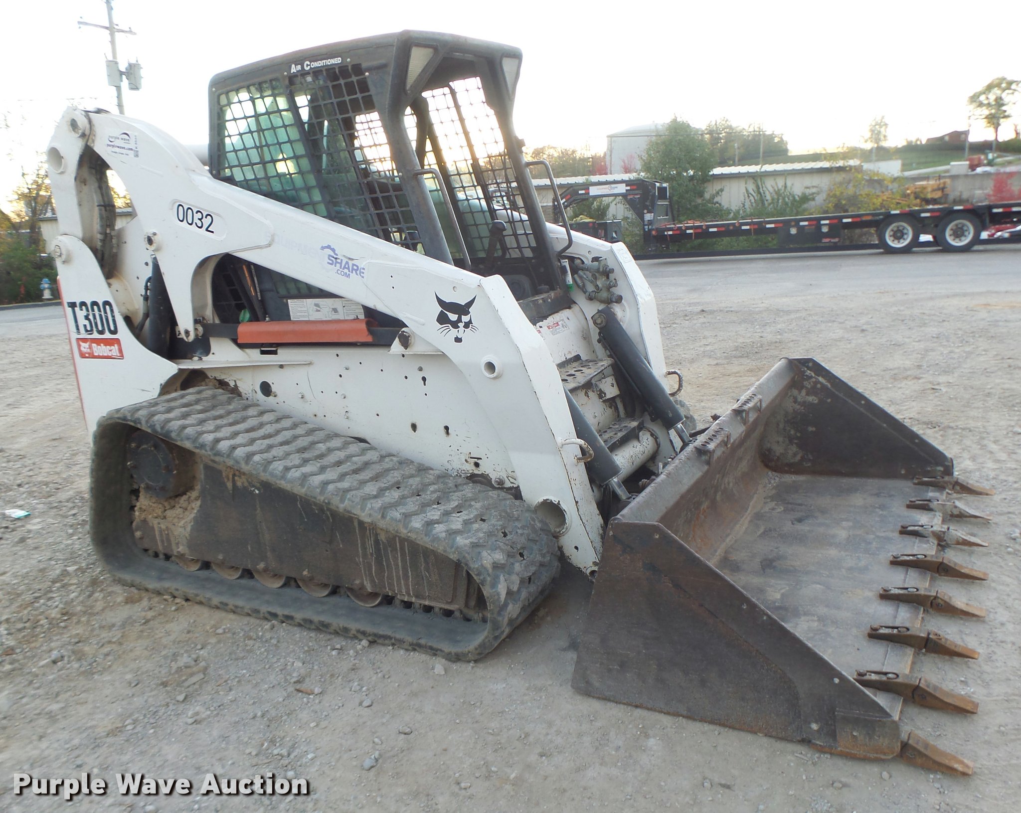 Purple Wave is selling a used Tracked Skid Steer Loader in Missouri. This item is a 2006 Bobcat T300 skid steer with the following: 3,292 hours on meter, Four cylinder turbo diesel engine, Hydrostatic transmission, Enclosed cab, AC and heat, Spring suspension seat, Wipers, Front and rear work lights, 80"W bucket, Bolt-on teeth, High Flow auxiliary hydraulics, 18"W tracks, Non-operational AC, Serial 532013527