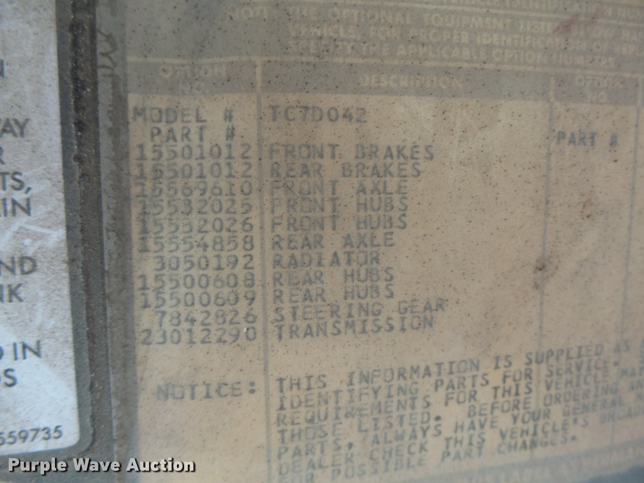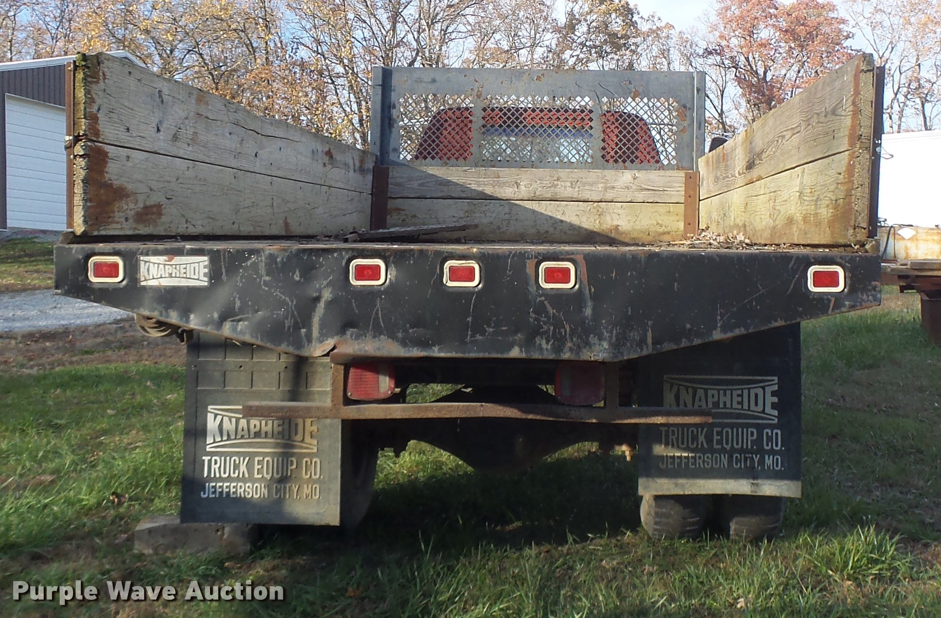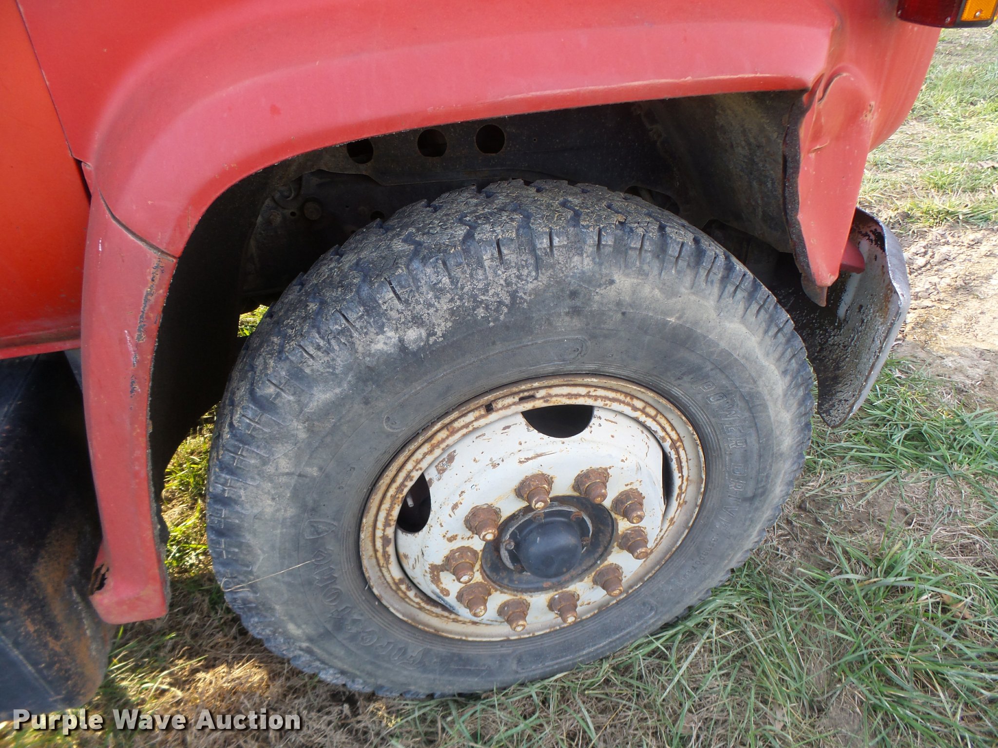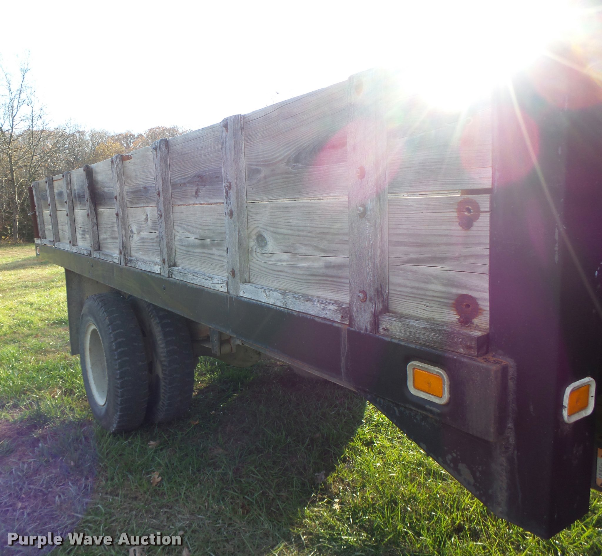Purple Wave is selling a used Flat Bed Truck in Missouri. This item is a 1987 GMC C7D042 dump flatbed truck with the following: 180,459 miles on odometer, 6.0L V8 gas engine, Automatic transmission, Single axle, Heat, Spring suspension seat, PTO, Knapheide dump flatbed, 16'L x 8'W, Wood floor, Stake side pockets, Removeable sides, Single fuel tank, Spring suspension, Hydraulic brakes, 9.00-20 tires, GVWR 27,080 lbs