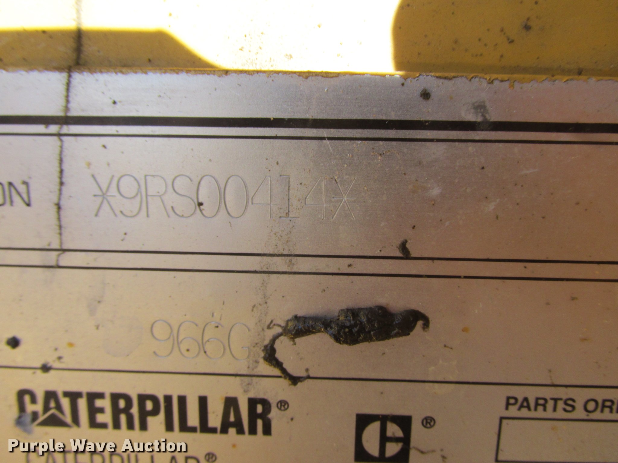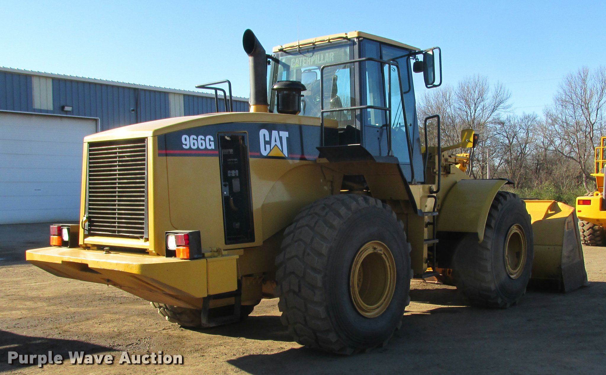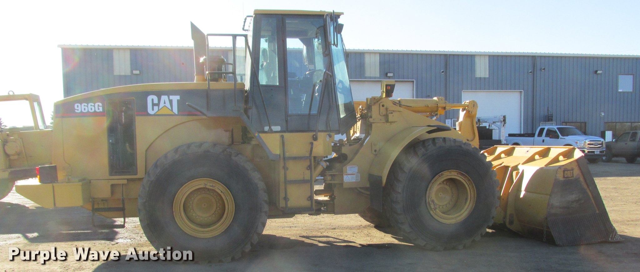 Purple Wave is selling a used Wheel Loader in Minnesota. This item is a 1999 Caterpillar 966G wheel loader with the following: 11,120 hours on meter, Caterpillar 3306 six cylinder turbo diesel engine, 270 HP, Powershift transmission, 4F-3R gears, EROPS, AC and heat, AM/FM/cassette, Tilt steering wheel, Air suspension seat, Two-lever bucket controls, Wipers, Backup alarm, Command steering, Caterpillar 125"W general purpose bucket, Bolt-on cutting edge, Self-leveling, Counterweights, Bridgestone 26.5-25 tires, Serial 9RS00414