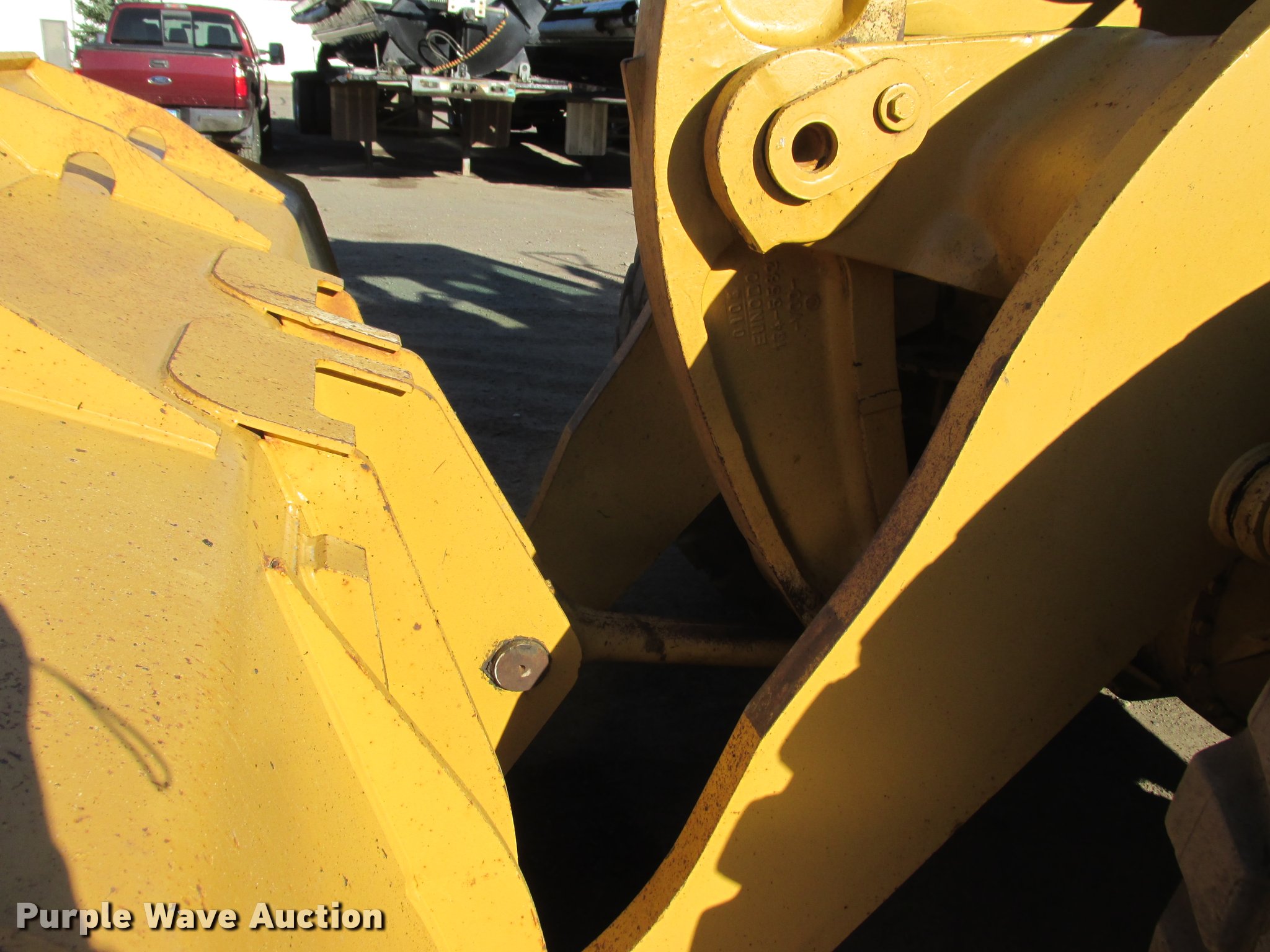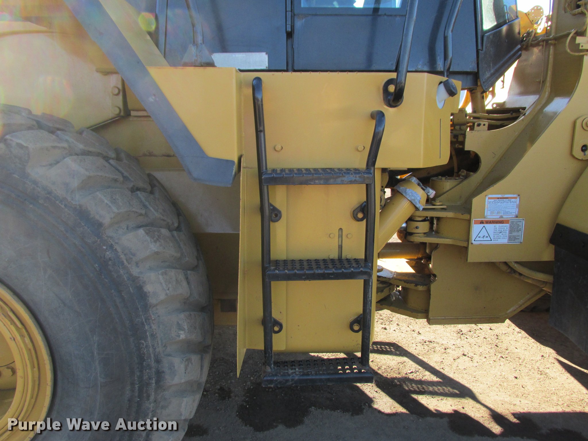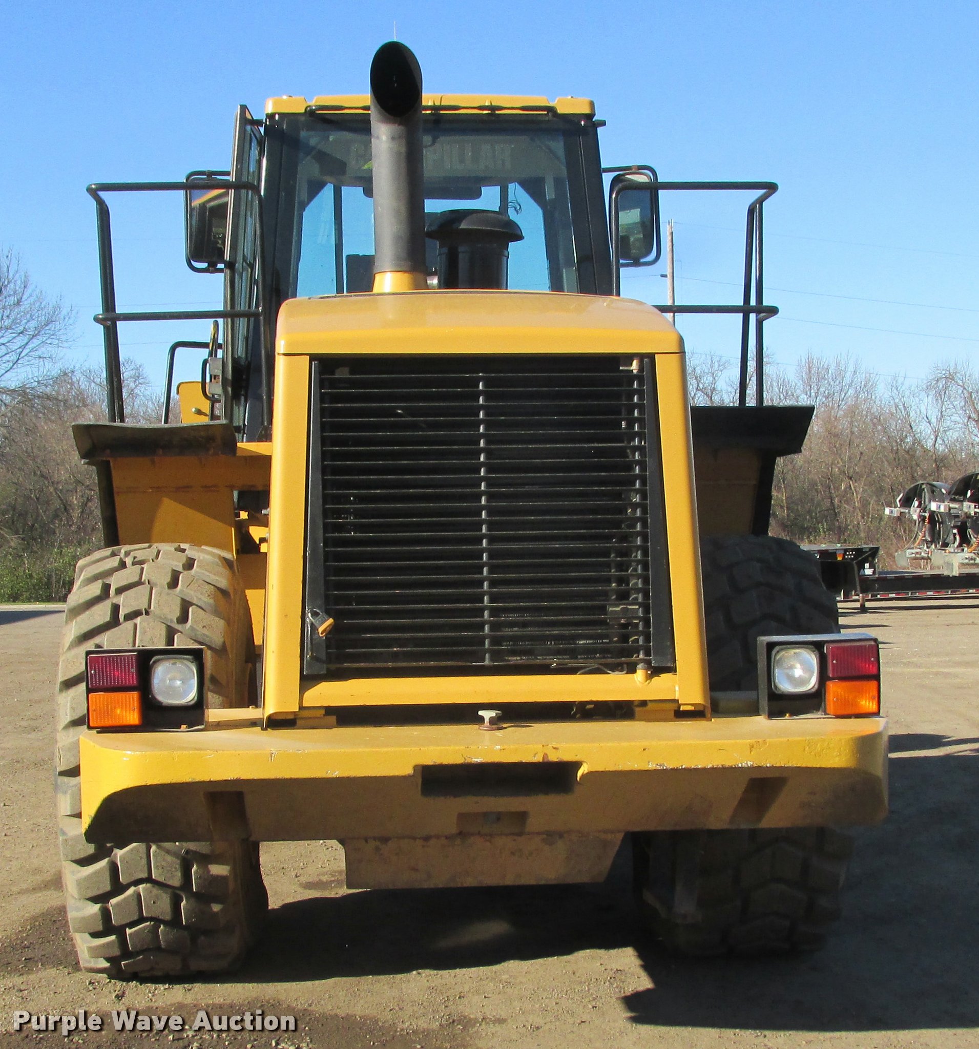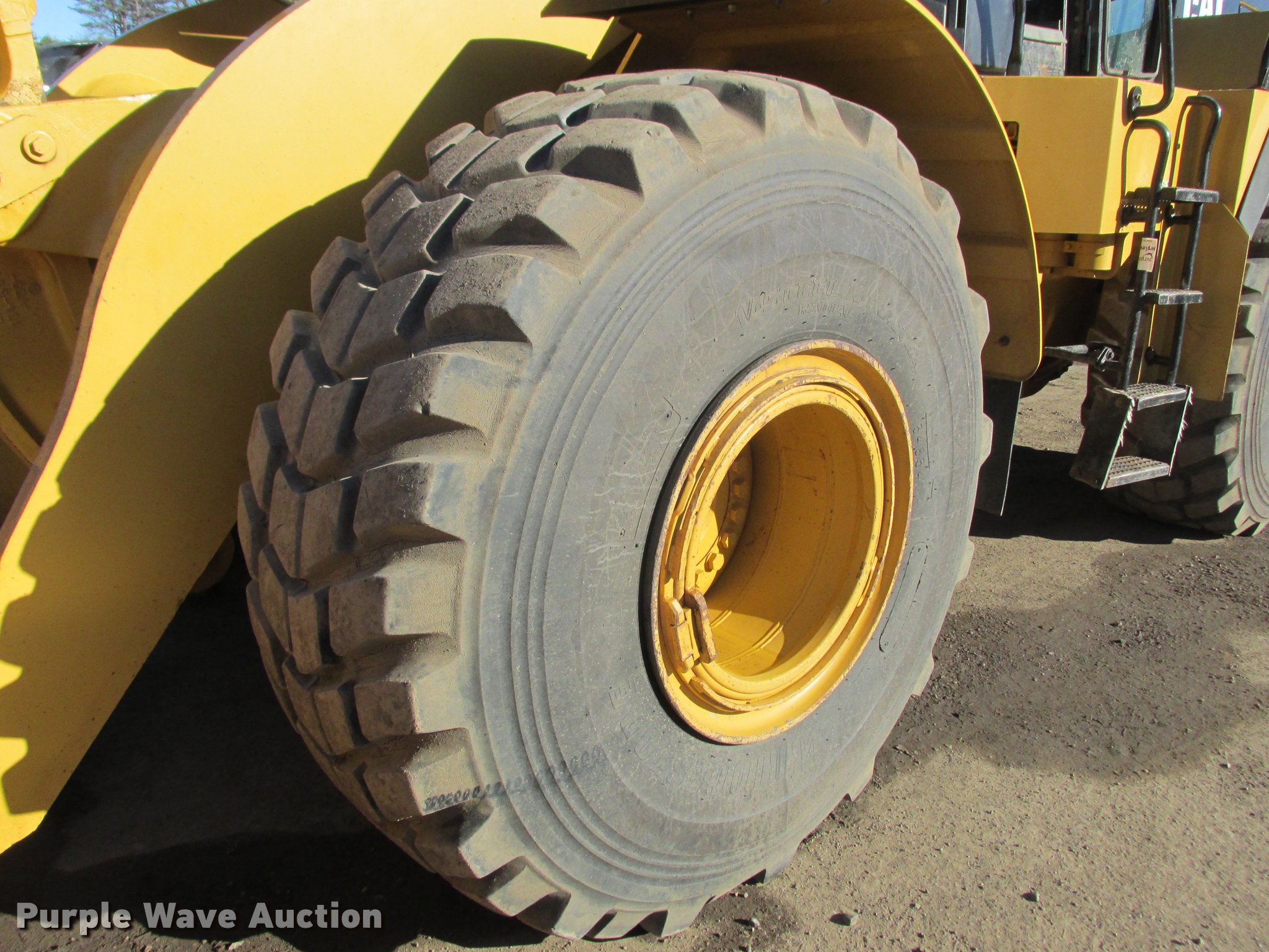 Purple Wave is selling a used Wheel Loader in Minnesota. This item is a 1999 Caterpillar 966G wheel loader with the following: 11,120 hours on meter, Caterpillar 3306 six cylinder turbo diesel engine, 270 HP, Powershift transmission, 4F-3R gears, EROPS, AC and heat, AM/FM/cassette, Tilt steering wheel, Air suspension seat, Two-lever bucket controls, Wipers, Backup alarm, Command steering, Caterpillar 125"W general purpose bucket, Bolt-on cutting edge, Self-leveling, Counterweights, Bridgestone 26.5-25 tires, Serial 9RS00414