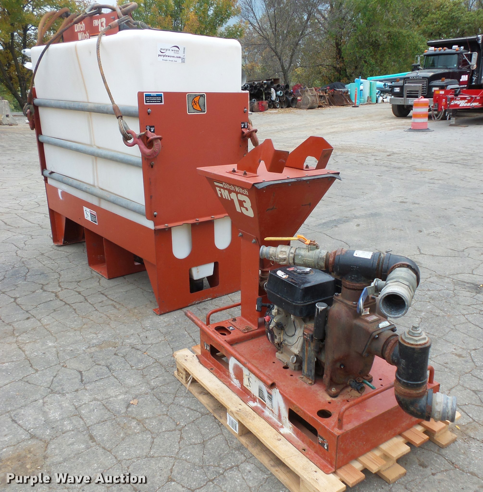 Purple Wave is selling a used Trencher Attach. in Missouri. This item is a 2006 Ditch Witch FM13 mixer and pump with the following: 275 gallon tank, Skid mounted, Lifting cables are not included, Serial CMWFM13XA60000281
