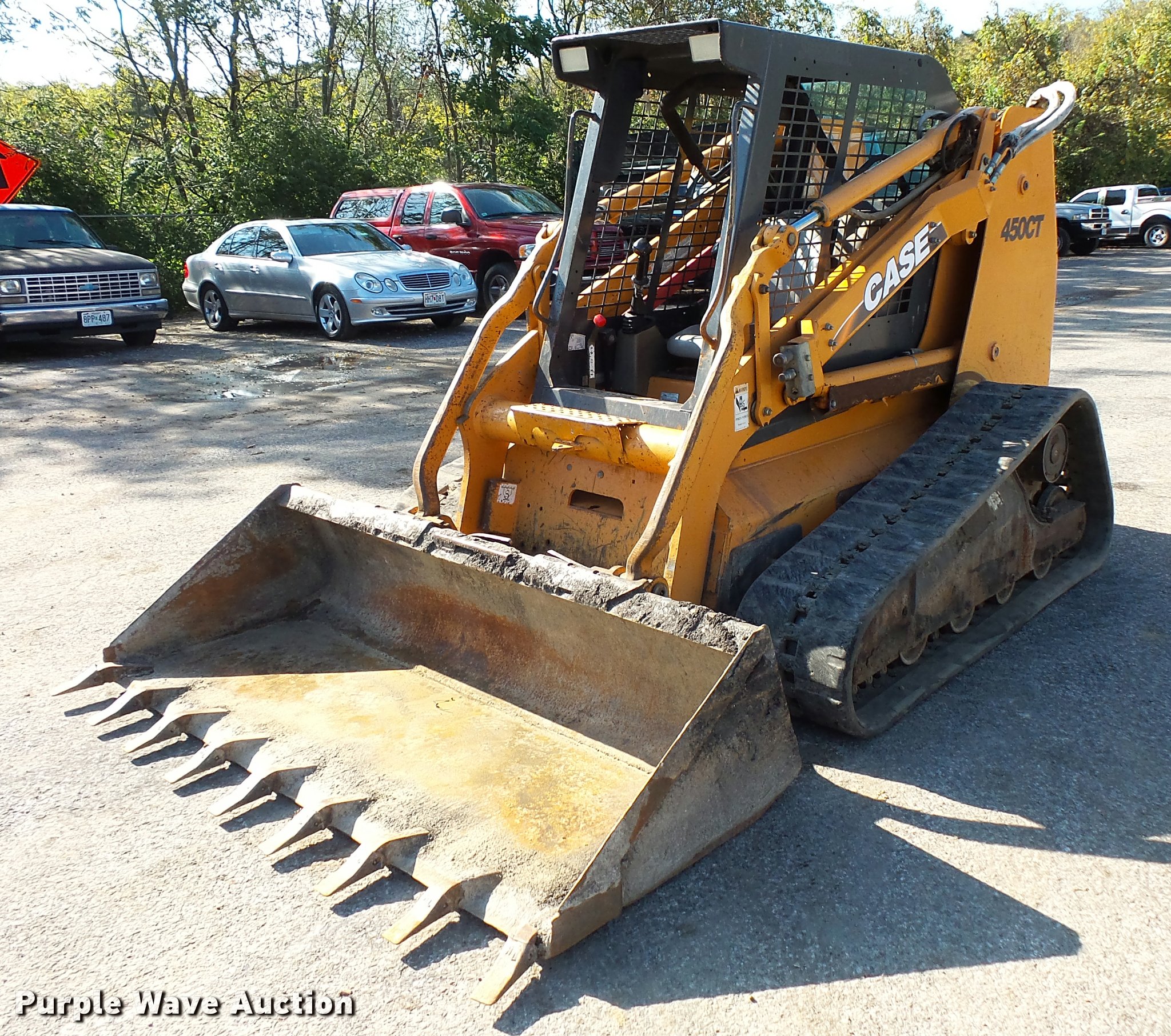 Purple Wave is selling a used Tracked Skid Steer Loader in Missouri. This item is a 2006 Case 450CT skid steer with the following: 3,509 hours on meter, Case four cylinder diesel engine, Hydrostatic transmission, Open station/canopy, Joystick controls, Spring suspension seat, 7'W bucket, Weld-on teeth, 17.5"W tracks, Serial N6M431587